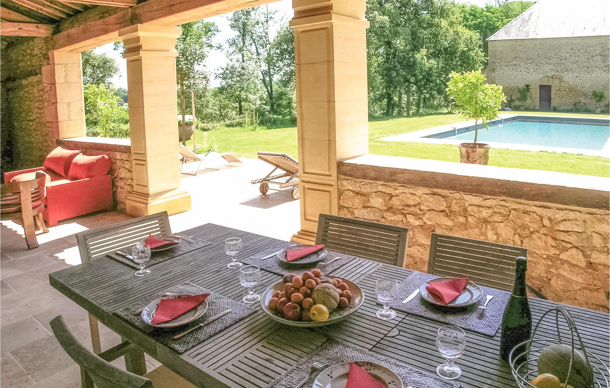 Verbringen Sie Ihren Urlaub in diesem herrlichen Ferienhaus mit Swimmingpool und großzügigem Garten, eingebettet in die prachtvolle Umgebung eines historischen Schlosses. Am Ende einer langen Allee gelegen, empfängt Sie dieses liebevoll renovierte Haus mit einer charmanten Atmosphäre und einladenden Außenbereichen, ideal für Mahlzeiten im Freien. Im Inneren bieten einige der Schlafzimmer auf der oberen Etage den Luxus eines eigenen Badezimmers. Der Weg durch einen Gartenbogen führt Sie direkt zum Pool, während der Flussstrand nur wenige Minuten entfernt ist.