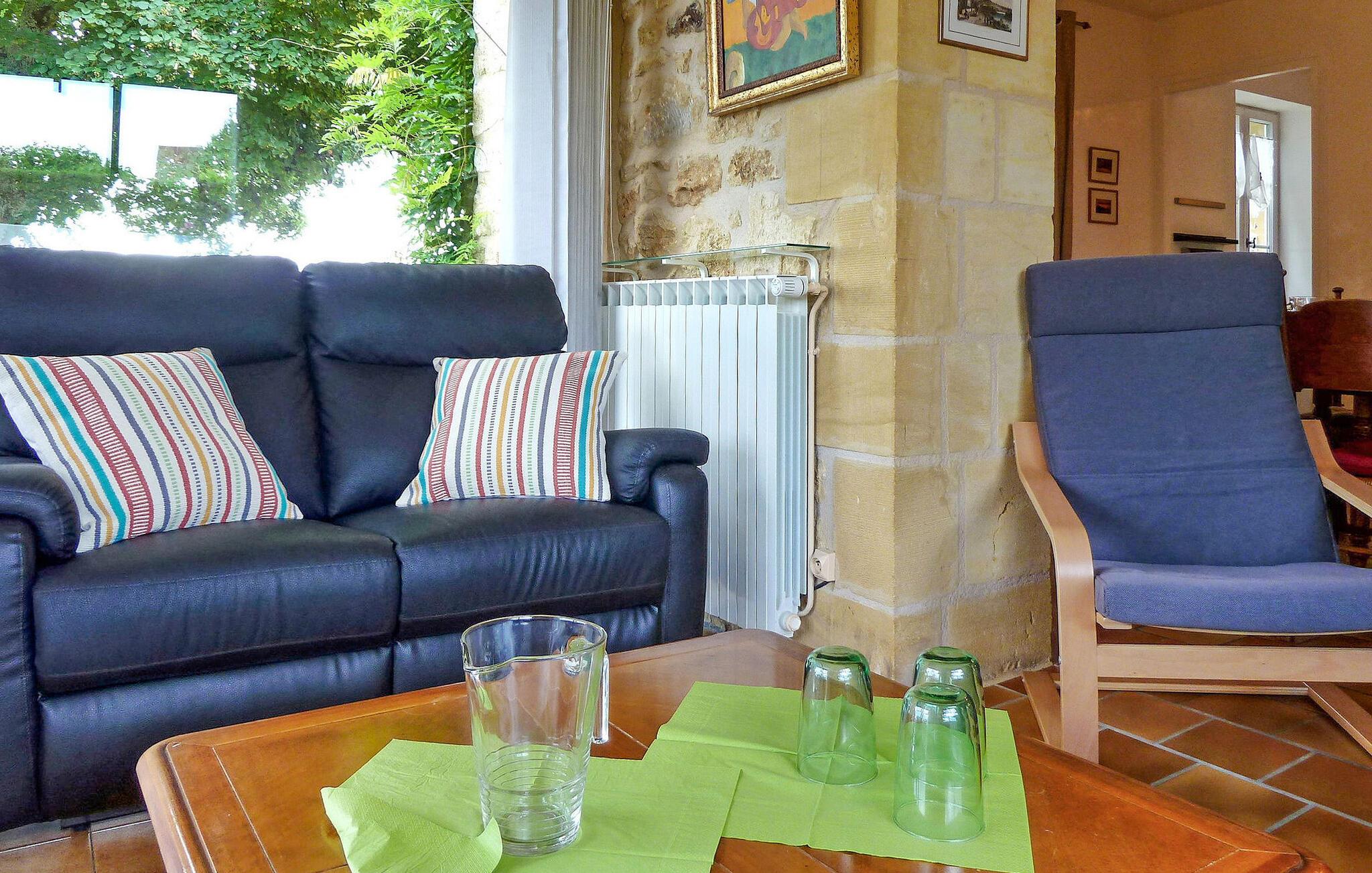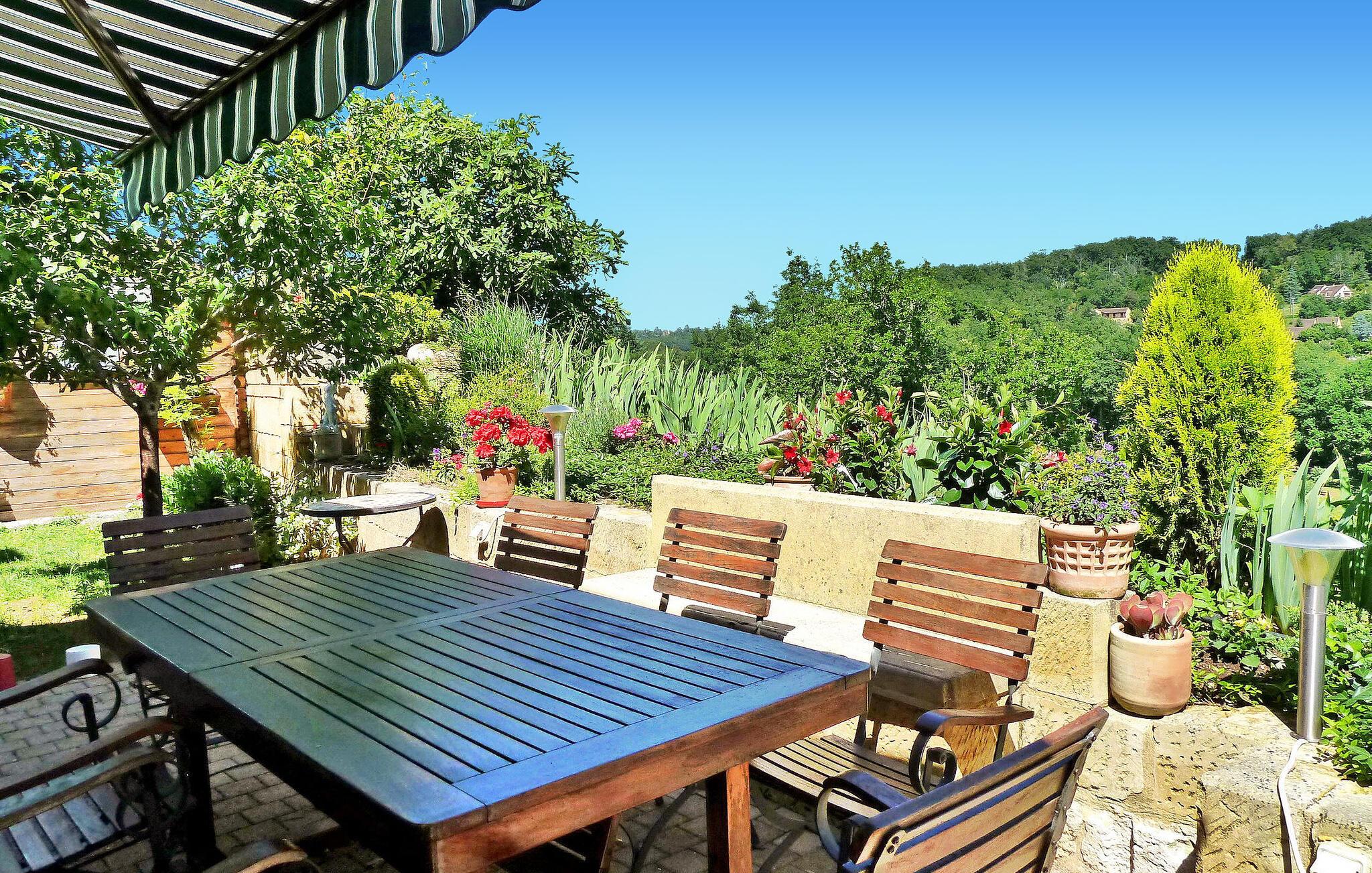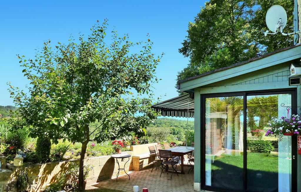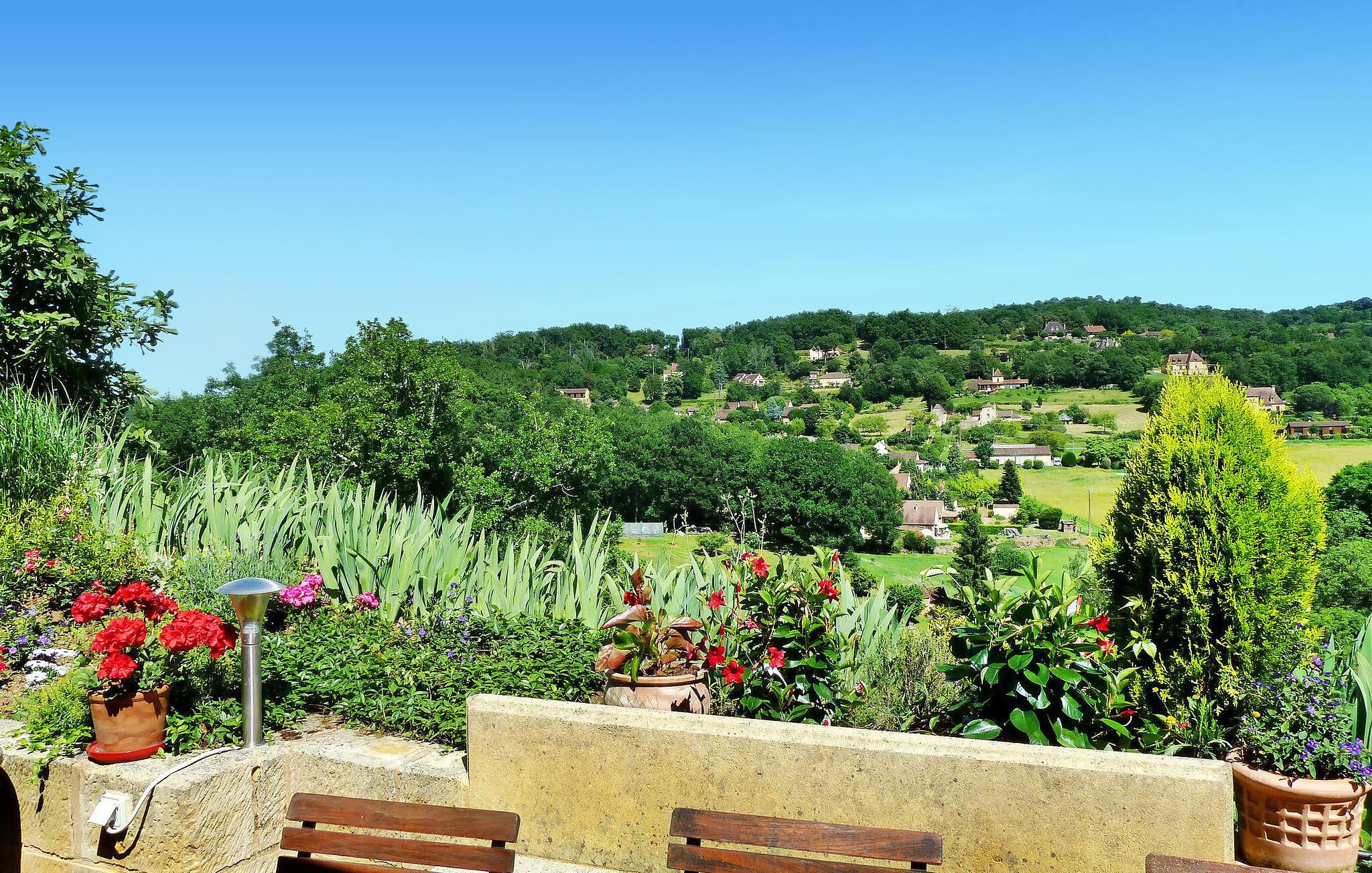 Dieses Steinhaus liegt in Domme, einer mittelalterlichen Stadt gleich außerhalb des lebhaften Touristenzentrums. Das Haus ist klimatisiert und verfügt über eine Terrasse mit atemberaubender Aussicht. Der nahe gelegene Fluss Dordogne eignet sich ideal zum Kanufahren und Schwimmen. Im Erdgeschoss der Immobilie befinden sich eine gut ausgestattete Küche und ein einladender Wohn-/Essbereich mit Eckkamin, eine gemütliche Sitzecke mit Flachbildfernseher und ein Schlafzimmer mit eigenem Bad. Erkerfenster führen zur Außenterrasse und bieten eine faszinierende Aussicht. Im ersten Stock befinden sich die restlichen Schlafzimmer. Draußen bietet das Anwesen einen bezaubernden Garten mit Bäumen, Blumen und einem gepflegten Rasen sowie Liegestühlen zum Entspannen. Die gepflasterte Terrasse verfügt über Gartenmöbel und Panoramablick. Das Haus liegt in der mittelalterlichen Stadt Domme, nicht weit vom Dorfzentrum entfernt. Geschäfte, Boutiquen und Restaurants sind fußläufig erreichbar. Domme: Königliche Bastide aus dem 13. Jahrhundert mit den berühmtesten Ausblicken auf das Périgord und mit Blick auf das Tal der Dordogne. Der Fluss Dordogne mit seinen Kanus ist etwa 3/4 km entfernt. Bitte beachten Sie, dass Parkplätze auf der Straße, jedoch nicht innerhalb der Unterkunft zur Verfügung stehen. Für zusätzlichen Komfort sind alle Schlafzimmer und das Wohnzimmer klimatisiert.