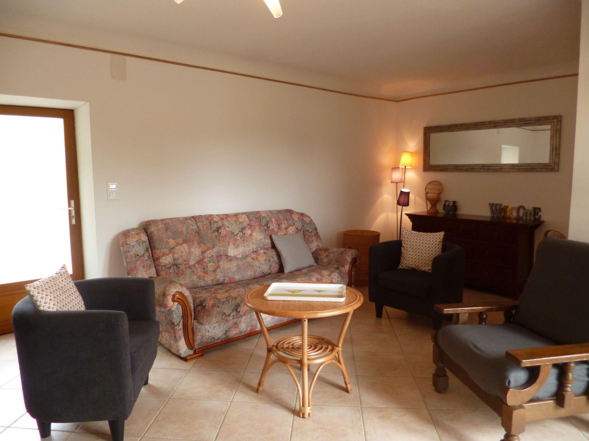 Inside, the house offers all the comforts you need for a carefree stay. It has a full kitchen (fridge-freezer, hob, mini-oven, microwave, dishwasher and washing machine), 2 bedrooms and an additional sleeping area to comfortably accommodate up to 6 people. For your convenience, there's a shower room with toilet and washbasin on the ground floor, and a full bathroom with shower on the first floor. The living room has a TV and DVD player, and Wi-Fi is available throughout the house. Baby equipment is available on request.