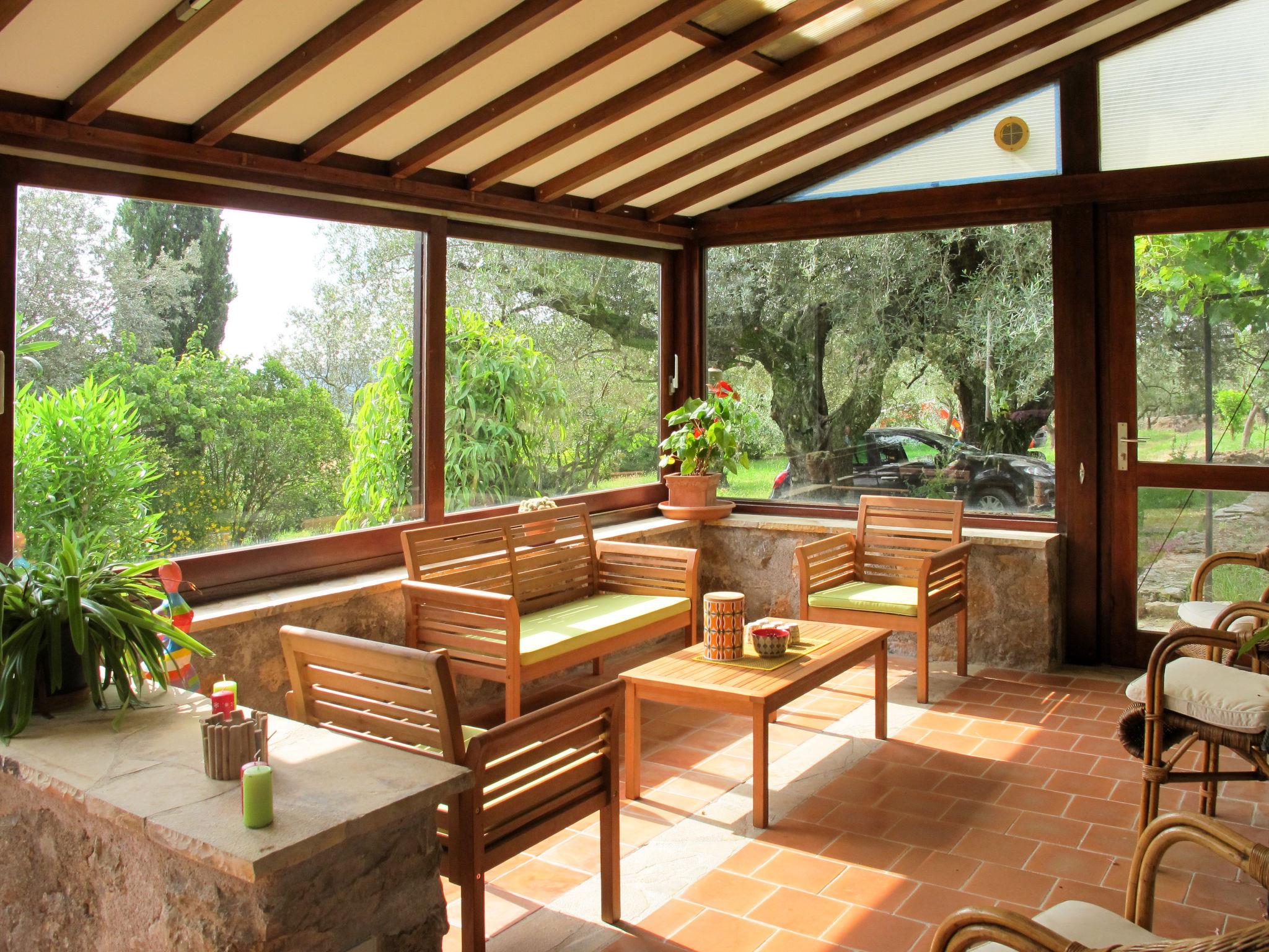 "Mas de l'Adrech", 6-room house 200 m2 on 3 levels. Rustic and tasteful furnishings: living room with satellite TV, hi-fi system, electric heating and air conditioning. Exit to the veranda. Living room with veranda, panoramic window. Exit to the garden. Dining room with dining table, electric heating, wood-burning stove and air conditioning. Exit to the garden. Kitchen (oven, dishwasher, 5 gas rings, toaster, kettle, microwave, freezer, electric coffee machine) with small dining table. Exit to the garden. Shower, sep. WC. Upper floor: 2 rooms, each room with 1 bed. 1 room with 1 french bed. Bathroom, sep. WC. Top floor: (steep stair), 1 room with sloping ceilings, without wardrobe with 1 french bed (160 cm), air conditioning. Terrace, porch. Terrace furniture, electric barbecue, deck chairs (4), box-room. View of the garden. Facilities: washing machine, iron, mosquito net. Internet (WiFi, free). Please note: maximum 1 pet/ dog allowed. Smoke alarm.