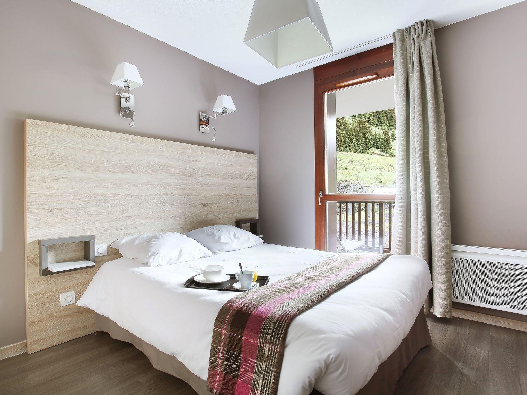"Résidence Odalys Référence Le Panoramic", 2-room apartment 42 m2, on the ground floor. Tasteful furnishings: living/sleeping room with 2 sleeping facilities, dining table and TV. Exit to the balcony. 1 room with 1 french bed. Alcove with 1 x 2 bunk beds. Small, open kitchen (dishwasher, 2 ceramic glass hob hotplates, toaster, kettle, microwave, electric coffee machine). Bath/WC. Electric heating. Balcony. Facilities: Internet (WiFi, free). Parking (roofed, 1 car). Maximum 1 pet/ dog allowed. Instead of an enclosed bedroom, some sleeping areas are located in an open-plan area (gallery, alcove, etc.).