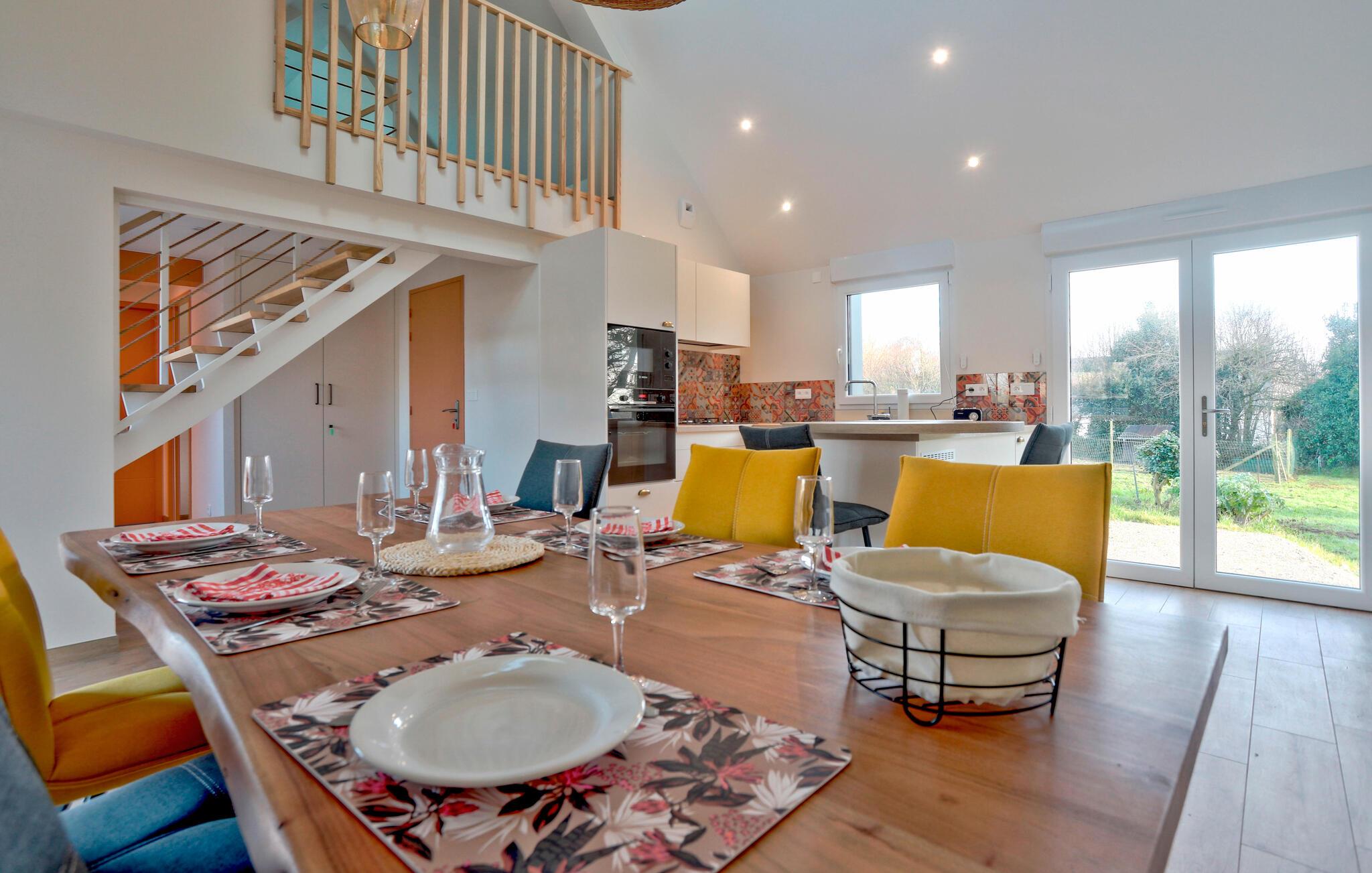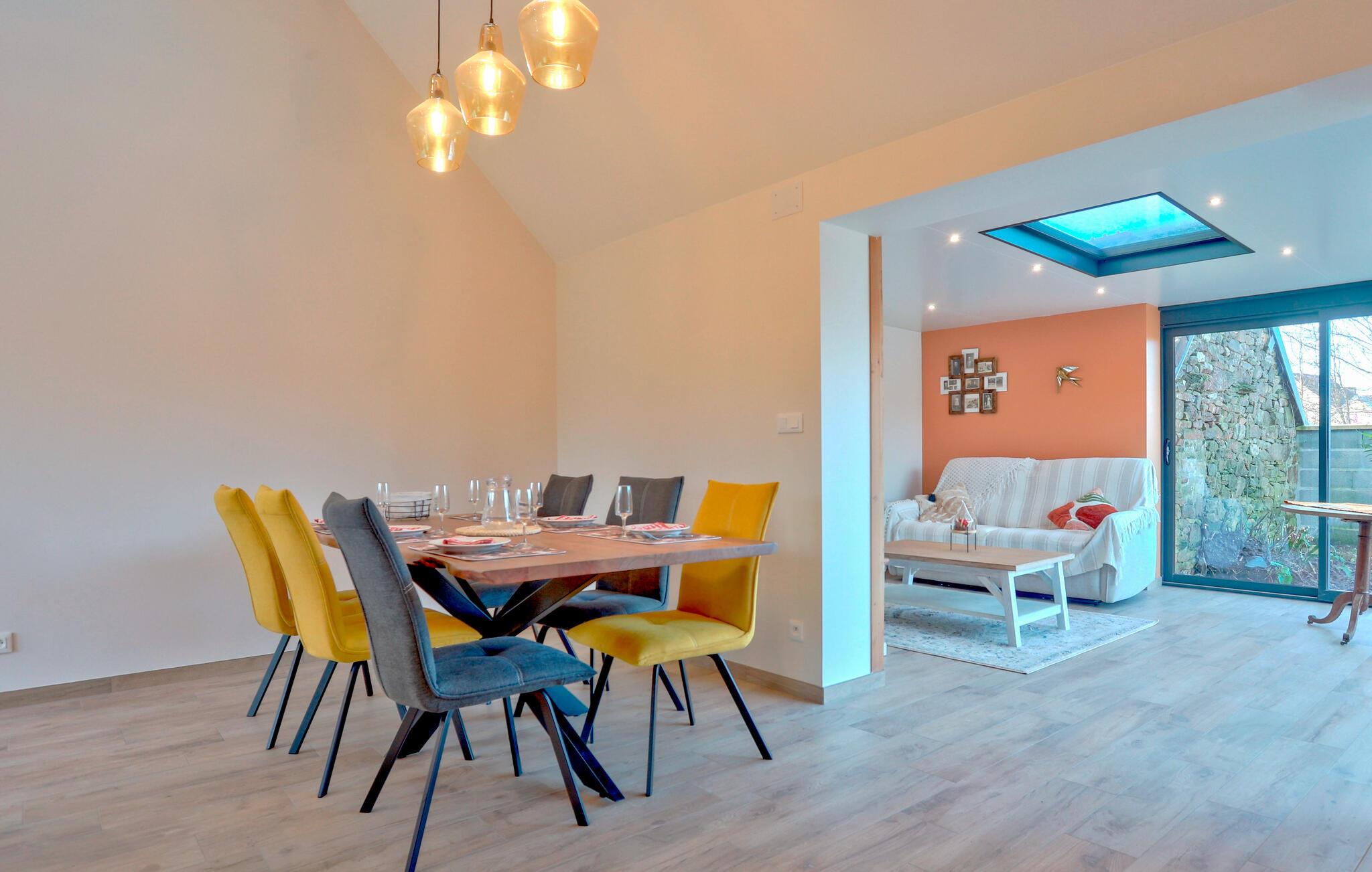 In diesem lichtdurchfluteten, modernen Ferienhaus erwartet Sie eine wahre Oase des Komforts und der Ruhe. Die großen Fensterfronten und Dachfenster lassen das Tageslicht in die großzügigen Wohnräume strömen, während das kathedralenförmige Esszimmer zu gemeinsamen Mahlzeiten in einem einzigartigen Ambiente einlädt. Die offene Bauweise verbindet die Wohnräume mit der umgebenden Natur – ideal für entspannte Stunden.