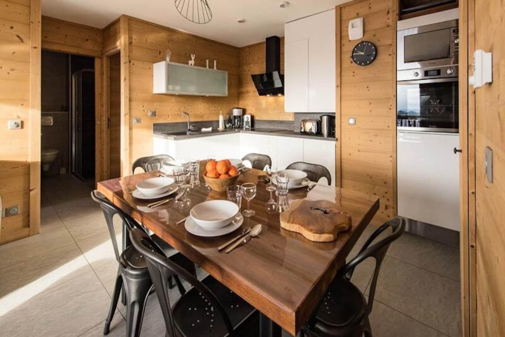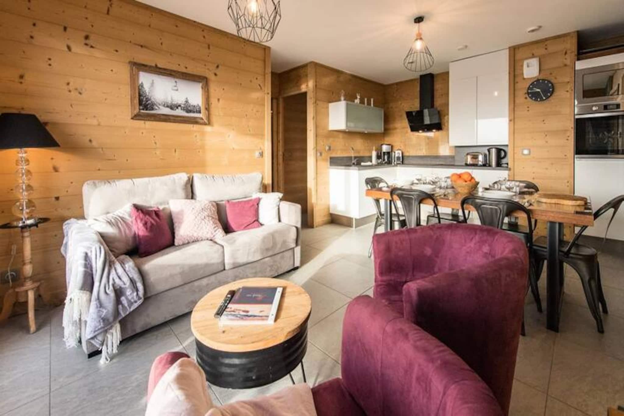Location: The Odyssée residence is located on the heights of the resort and on the "Les Retenues" slope, which provides access to the snow front and the main ski lifts in seconds. Ski in and ski out are located at the foot of the residence. Pedestrian access to the resort is also facilitated by a staircase. All apartments in this new residence face south and offer panoramic views of the Aiguilles d'Arves and La Meije. Car access to the residence and free "Skibus" shuttle nearby, stop "RJO l'Odyssée". Apartment amenities: This apartment offers warm decor and high-quality amenities. The south-facing orientation offers a breathtaking panorama. In the basement of the residence: a reserved indoor parking space. On the garden level, you have a ski locker with a boot dryer. The apartment features a living room opening onto an equipped balcony and a sublime view of the Aiguilles d'Arves. The living room offers a lounge/dining area and a fully equipped kitchen. A first bedroom with its own bathroom is furnished with a queen-size bed. The second bedroom has a double bed and shares a bathroom with toilet with the sleeping area and its 80x190 bunk bed (the upper bunk is not suitable for children under 6 years old). Finally, a separate toilet completes this property. The apartment is equipped with a washing machine. End-of-stay cleaning is included, as are bed linen and bathroom linen rentals. WIFI. NO PETS ALLOWED. NON-SMOKING APARTMENT. When booking with Altitude 1750, your ski lift passes and ski lesson cards, booked by the agency, will be delivered directly to your apartment on the day of your arrival. By booking 15 days in advance, you can also benefit from discounted rates with our partners (lift passes, ski equipment rental). The rate includes VAT, excluding administration fees and tourist tax. Vacation insurance is also available as an additional fee. Don't wait any longer to book this apartment, which will provide you with unforgettable moments with family or friends! Heating - 1
