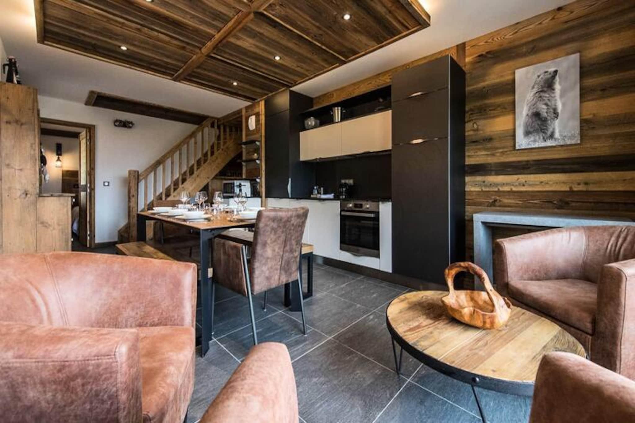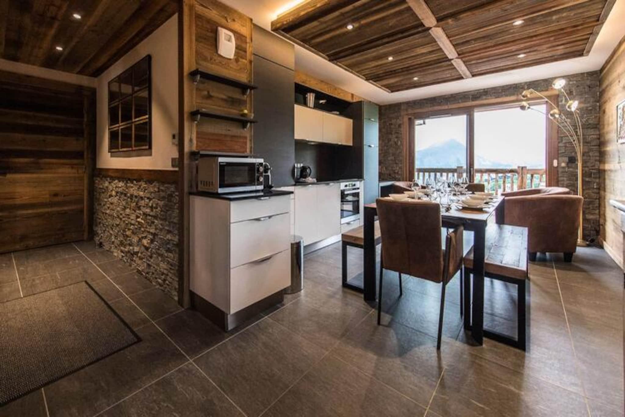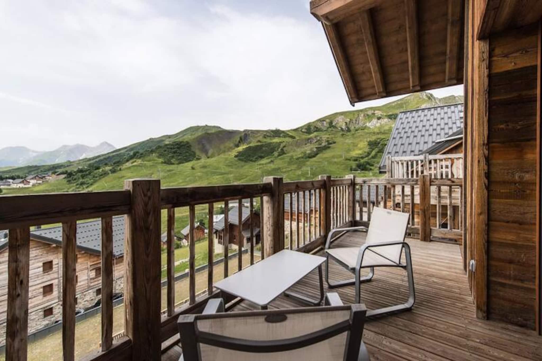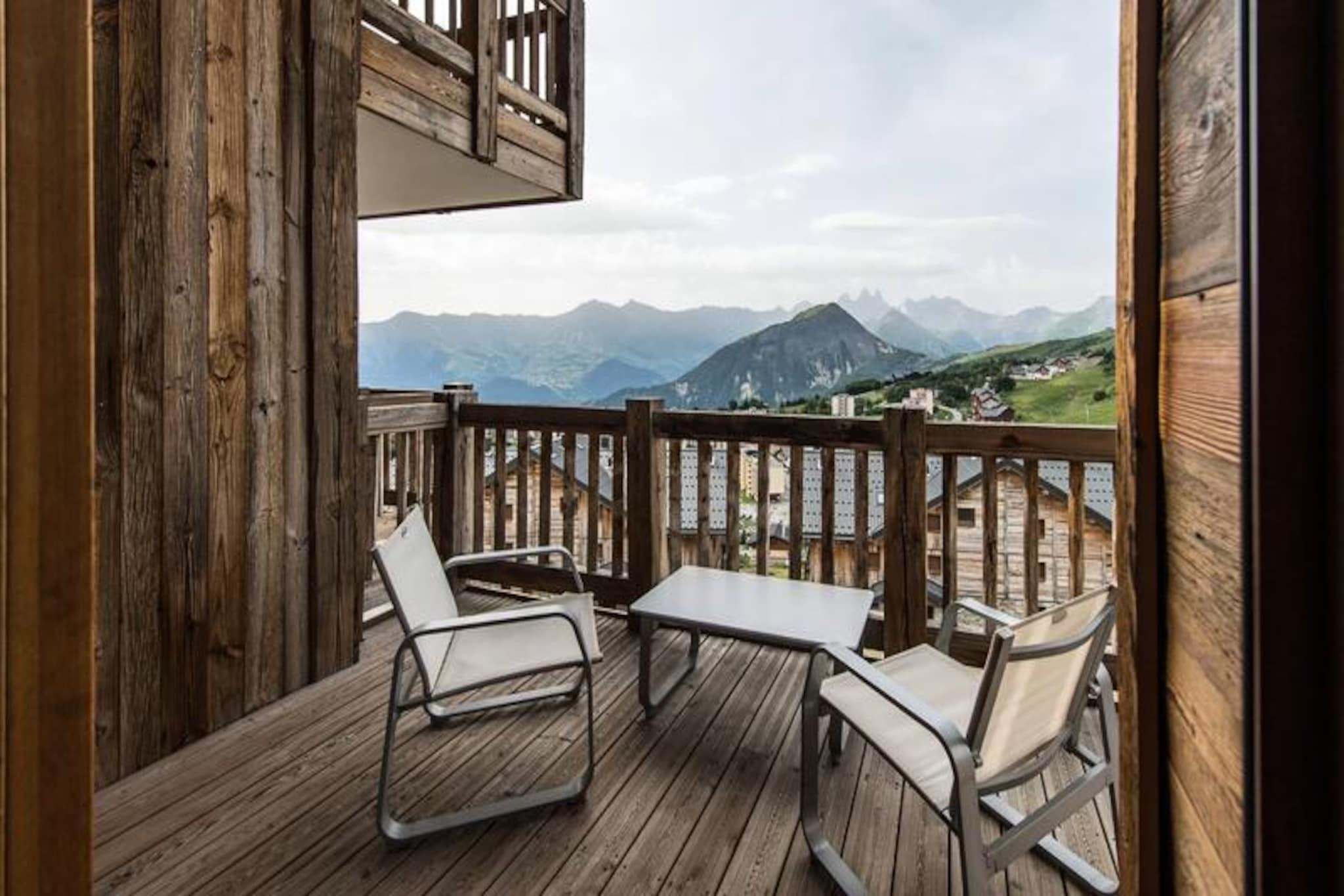 High above the lively resort, this stunning apartment in the Odyssée residence offers a truly unique alpine experience. Imagine waking up to panoramic views of the majestic Aiguilles d'Arves and La Meije, with sunlight streaming through the south-facing windows. Whether you're here for thrilling ski adventures or serene mountain escapes, this property promises unforgettable moments surrounded by breathtaking scenery. With ski-in/ski-out access directly from the residence, your journey to the slopes begins just steps away, ensuring every day starts with ease and excitement. A nearby staircase also provides convenient pedestrian access to the resort center, blending tranquility with accessibility. \n\nThis spacious 105m² apartment combines rustic charm with modern comfort. The reclaimed wood decor creates a warm and inviting atmosphere, while the open-plan living room leads to a balcony where you can savor the alpine vistas. The fully equipped kitchen is perfect for preparing hearty meals after a day on the slopes. With four bedrooms, including a mezzanine, and multiple bathrooms, the layout accommodates up to nine guests with ease. Additional amenities such as a ski locker with boot dryer, indoor parking spaces, and included linens ensure a hassle-free stay. The apartment is non-smoking and pet-free, offering a clean and peaceful environment for relaxation. \n\nThe location is ideal for exploring the resort’s offerings, with a free Skibus shuttle stop nearby for easy access to the main ski lifts and village attractions. Booking with Altitude 1750 adds extra convenience, as lift passes and ski lesson cards are delivered directly to your apartment upon arrival. Discounted rates for ski equipment and passes are available when booked in advance, making your holiday planning seamless. \n\nWhether you’re seeking exhilarating winter sports or tranquil summer hikes, this apartment is the perfect base for creating cherished memories in the heart of the French Alps. Don’t miss the chance to experience the magic of this exceptional property!