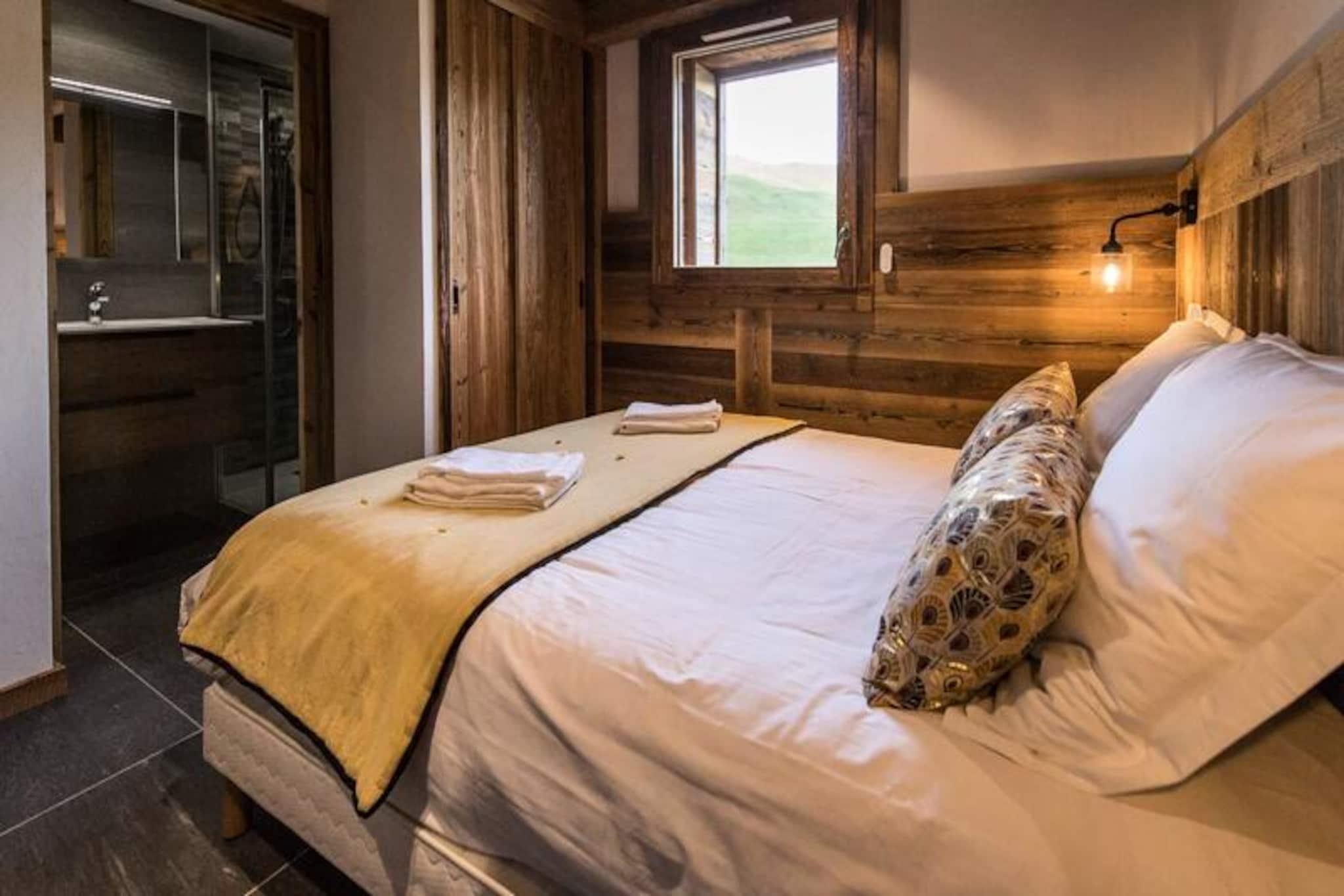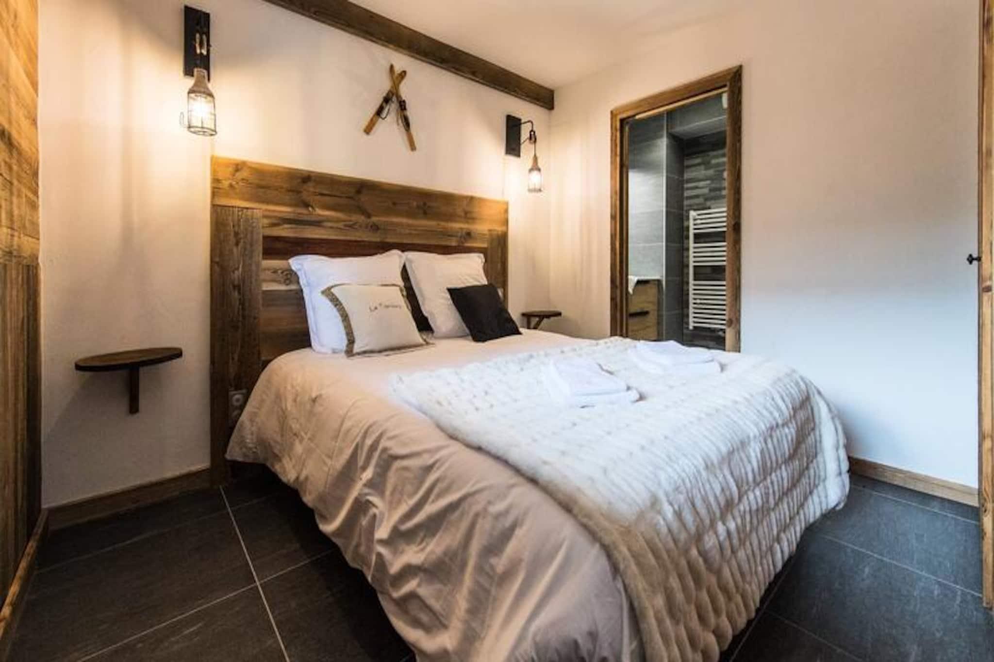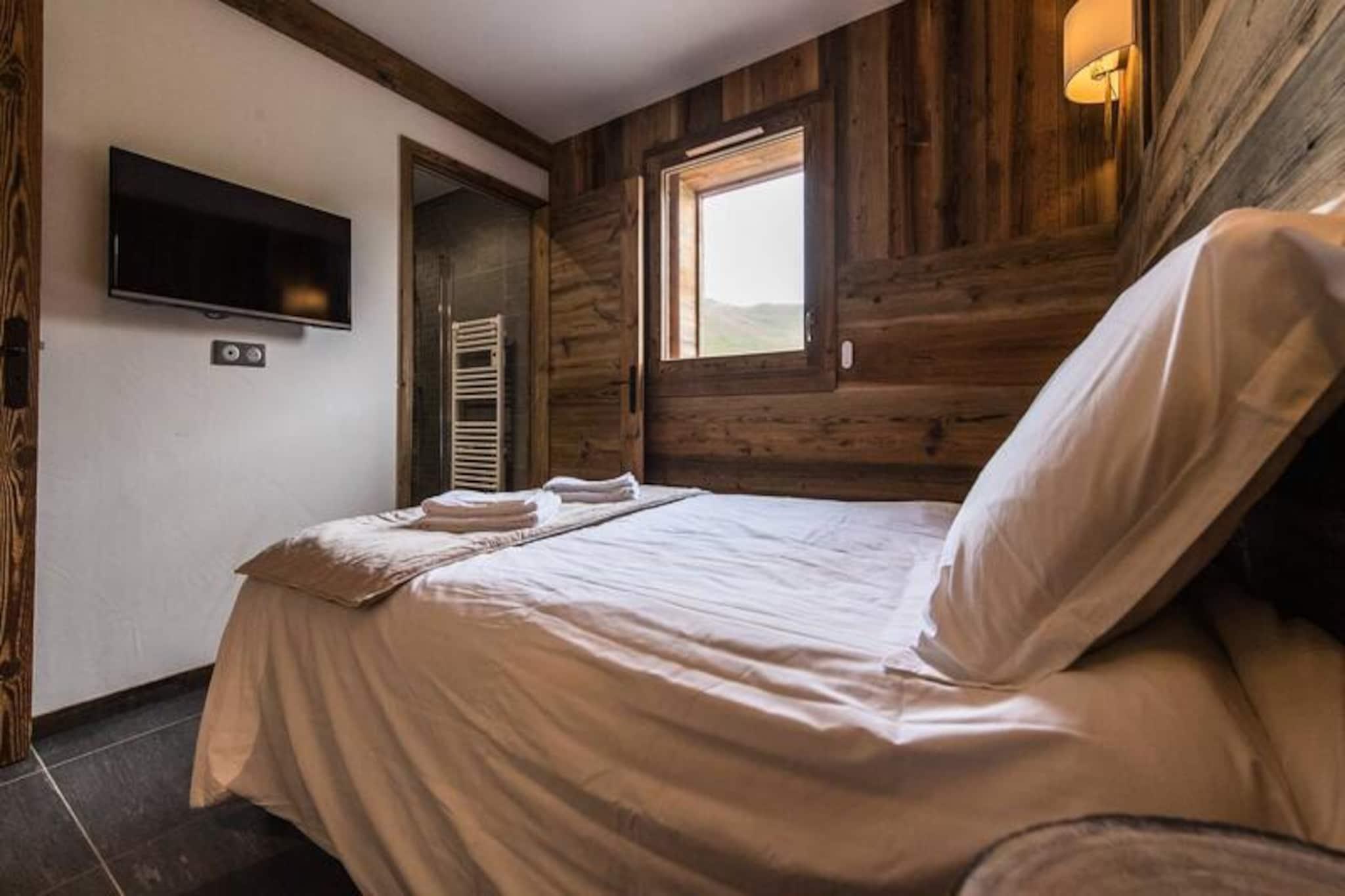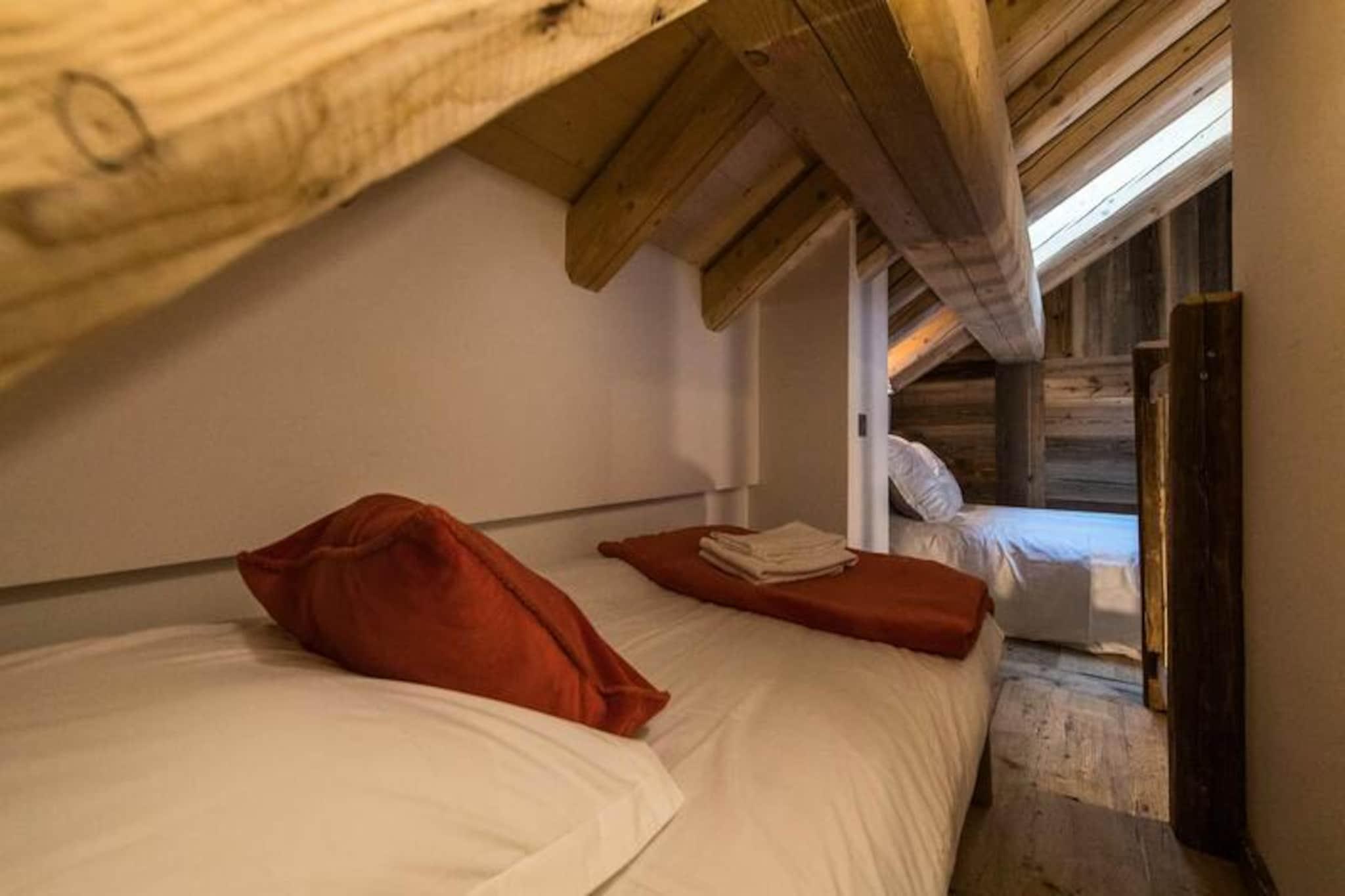 High above the lively resort, this stunning apartment in the Odyssée residence offers a truly unique alpine experience. Imagine waking up to panoramic views of the majestic Aiguilles d'Arves and La Meije, with sunlight streaming through the south-facing windows. Whether you're here for thrilling ski adventures or serene mountain escapes, this property promises unforgettable moments surrounded by breathtaking scenery. With ski-in/ski-out access directly from the residence, your journey to the slopes begins just steps away, ensuring every day starts with ease and excitement. A nearby staircase also provides convenient pedestrian access to the resort center, blending tranquility with accessibility. \n\nThis spacious 105m² apartment combines rustic charm with modern comfort. The reclaimed wood decor creates a warm and inviting atmosphere, while the open-plan living room leads to a balcony where you can savor the alpine vistas. The fully equipped kitchen is perfect for preparing hearty meals after a day on the slopes. With four bedrooms, including a mezzanine, and multiple bathrooms, the layout accommodates up to nine guests with ease. Additional amenities such as a ski locker with boot dryer, indoor parking spaces, and included linens ensure a hassle-free stay. The apartment is non-smoking and pet-free, offering a clean and peaceful environment for relaxation. \n\nThe location is ideal for exploring the resort’s offerings, with a free Skibus shuttle stop nearby for easy access to the main ski lifts and village attractions. Booking with Altitude 1750 adds extra convenience, as lift passes and ski lesson cards are delivered directly to your apartment upon arrival. Discounted rates for ski equipment and passes are available when booked in advance, making your holiday planning seamless. \n\nWhether you’re seeking exhilarating winter sports or tranquil summer hikes, this apartment is the perfect base for creating cherished memories in the heart of the French Alps. Don’t miss the chance to experience the magic of this exceptional property!