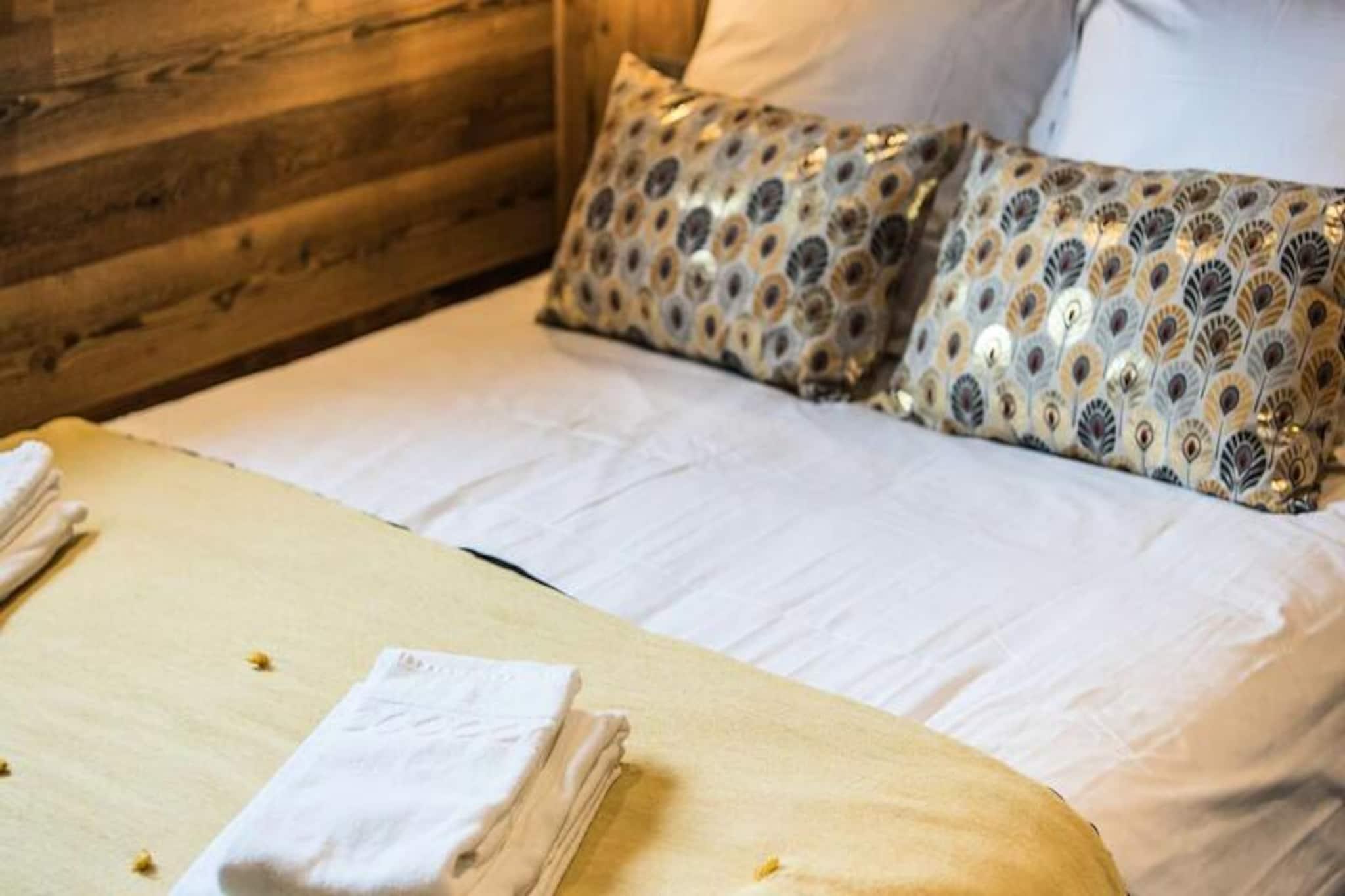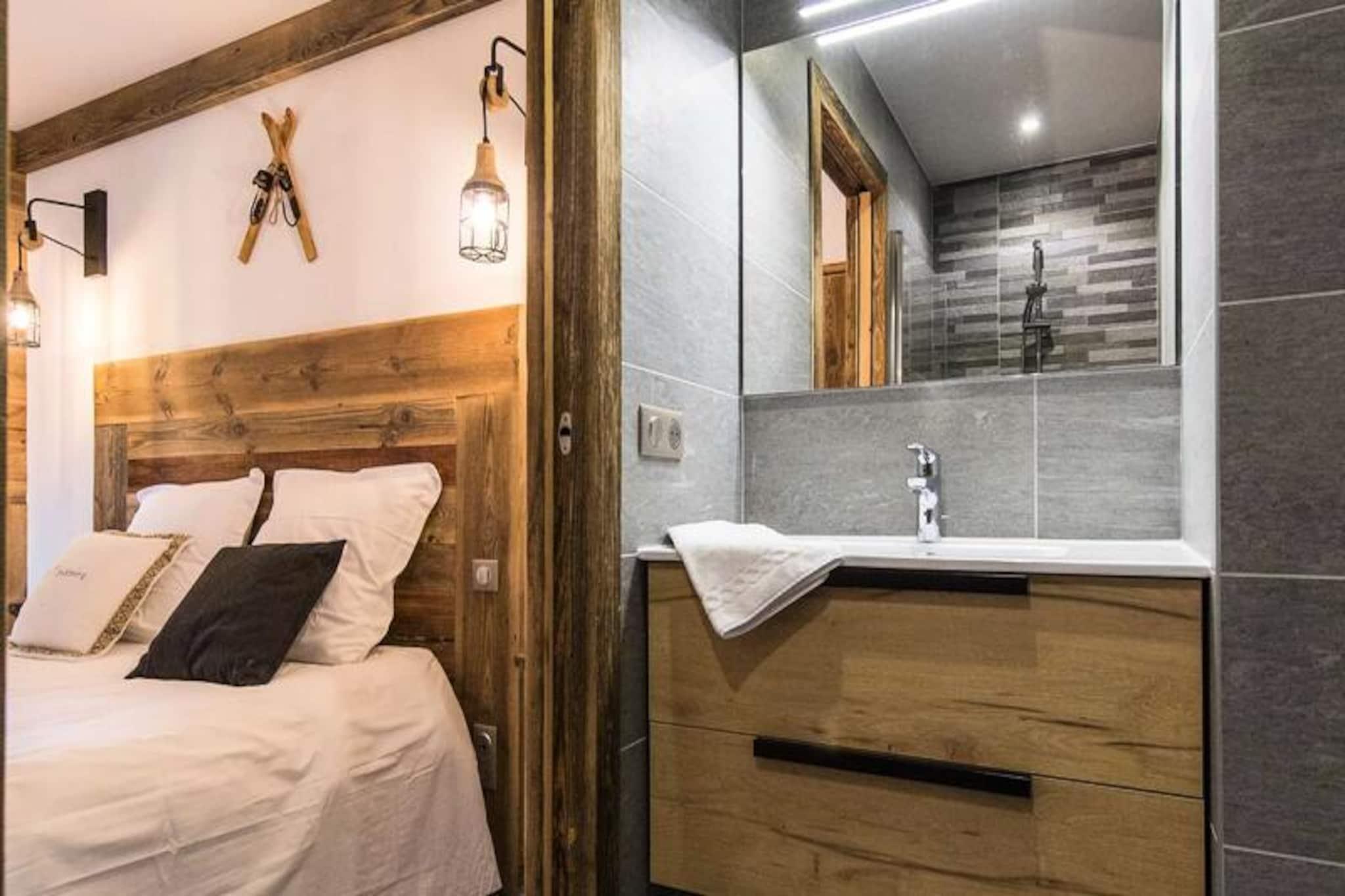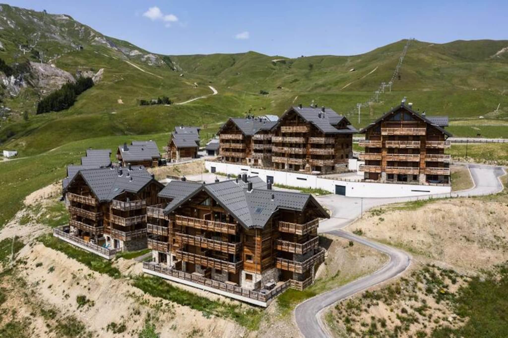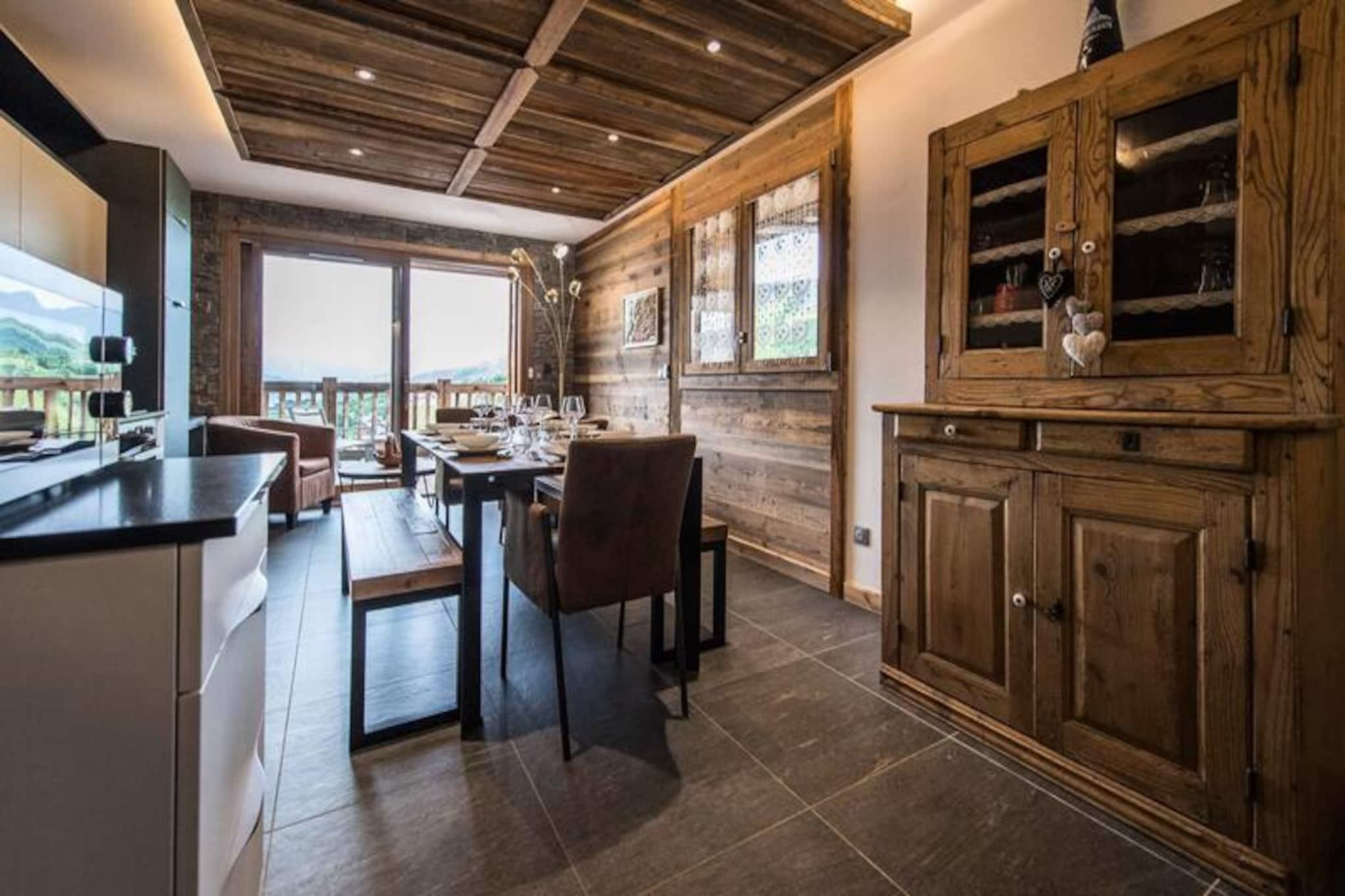 High above the lively resort, this stunning apartment in the Odyssée residence offers a truly unique alpine experience. Imagine waking up to panoramic views of the majestic Aiguilles d'Arves and La Meije, with sunlight streaming through the south-facing windows. Whether you're here for thrilling ski adventures or serene mountain escapes, this property promises unforgettable moments surrounded by breathtaking scenery. With ski-in/ski-out access directly from the residence, your journey to the slopes begins just steps away, ensuring every day starts with ease and excitement. A nearby staircase also provides convenient pedestrian access to the resort center, blending tranquility with accessibility. \n\nThis spacious 105m² apartment combines rustic charm with modern comfort. The reclaimed wood decor creates a warm and inviting atmosphere, while the open-plan living room leads to a balcony where you can savor the alpine vistas. The fully equipped kitchen is perfect for preparing hearty meals after a day on the slopes. With four bedrooms, including a mezzanine, and multiple bathrooms, the layout accommodates up to nine guests with ease. Additional amenities such as a ski locker with boot dryer, indoor parking spaces, and included linens ensure a hassle-free stay. The apartment is non-smoking and pet-free, offering a clean and peaceful environment for relaxation. \n\nThe location is ideal for exploring the resort’s offerings, with a free Skibus shuttle stop nearby for easy access to the main ski lifts and village attractions. Booking with Altitude 1750 adds extra convenience, as lift passes and ski lesson cards are delivered directly to your apartment upon arrival. Discounted rates for ski equipment and passes are available when booked in advance, making your holiday planning seamless. \n\nWhether you’re seeking exhilarating winter sports or tranquil summer hikes, this apartment is the perfect base for creating cherished memories in the heart of the French Alps. Don’t miss the chance to experience the magic of this exceptional property!