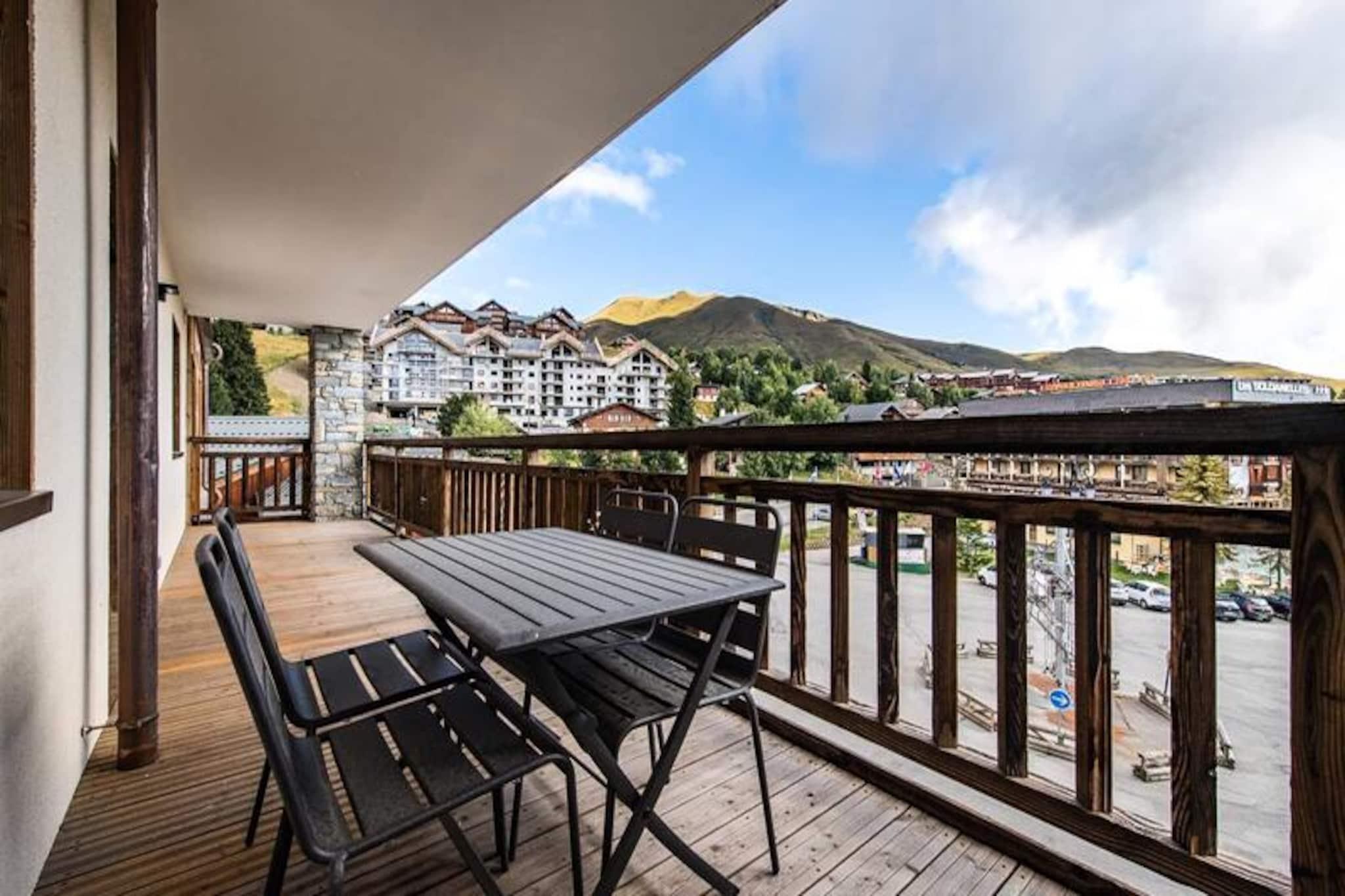 In the heart of La Toussuire’s snow-covered paradise, this newly built apartment offers a modern alpine retreat for those seeking the ultimate ski-in, ski-out experience. Imagine waking up to the crisp mountain air, stepping onto your spacious east-facing balcony, and gazing at the serene slopes just steps away. With its completion set for summer 2024, this residence combines contemporary design with the timeless charm of the French Alps, ensuring a stay that is both luxurious and unforgettable. \n\nSpanning 51m², the apartment boasts a warm and inviting interior crafted with high-quality materials. The living room, complete with a fully equipped kitchen, dining area, and cozy sitting space, opens onto an 18m² balcony perfect for morning coffee or après-ski relaxation. Two elegant bedrooms, each featuring a double bed, provide restful retreats, while a sleeping alcove with bunk beds accommodates additional guests. Two modern bathrooms, one en-suite, ensure comfort and convenience for all. A ski locker with a boot dryer adds practicality, making your ski days seamless and enjoyable. \n\nSituated right on the snow front, the residence is just steps from the slopes and the resort’s vibrant center, where shops, restaurants, and après-ski activities await. For added ease, ski lift passes and lesson cards booked through Altitude 1750 are delivered directly to your apartment upon arrival. Public parking is available nearby, and with WiFi, included linens, and end-of-stay cleaning, every detail has been thoughtfully arranged. \n\nWhether you’re carving through pristine snow or exploring the summer trails of the Maurienne Valley, this apartment offers a gateway to unforgettable alpine adventures. Book now and create lasting memories in the enchanting surroundings of La Toussuire.