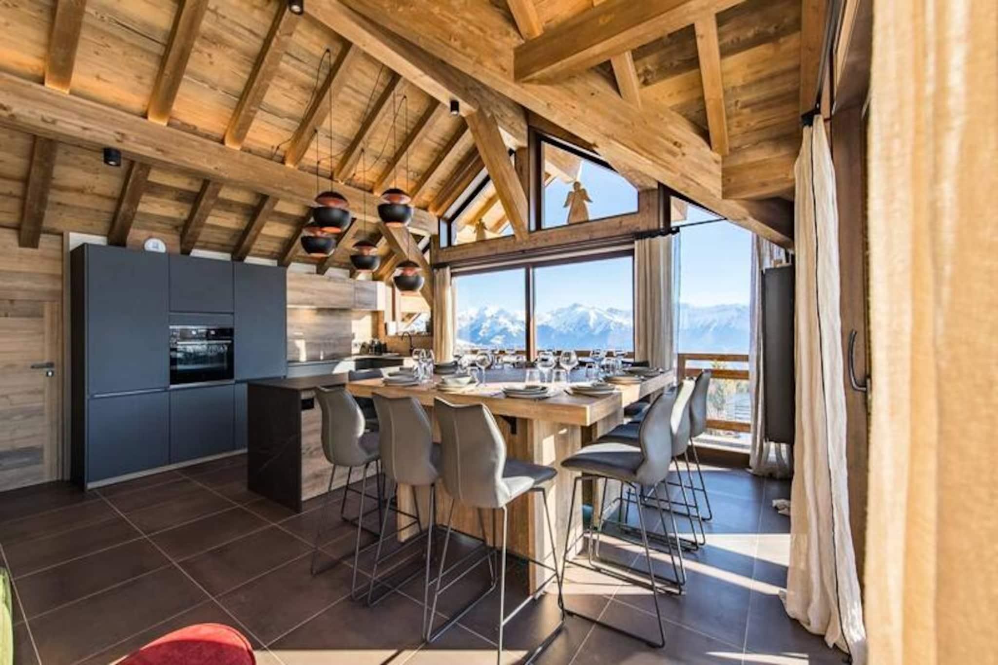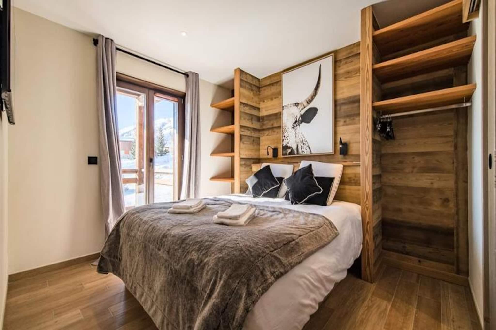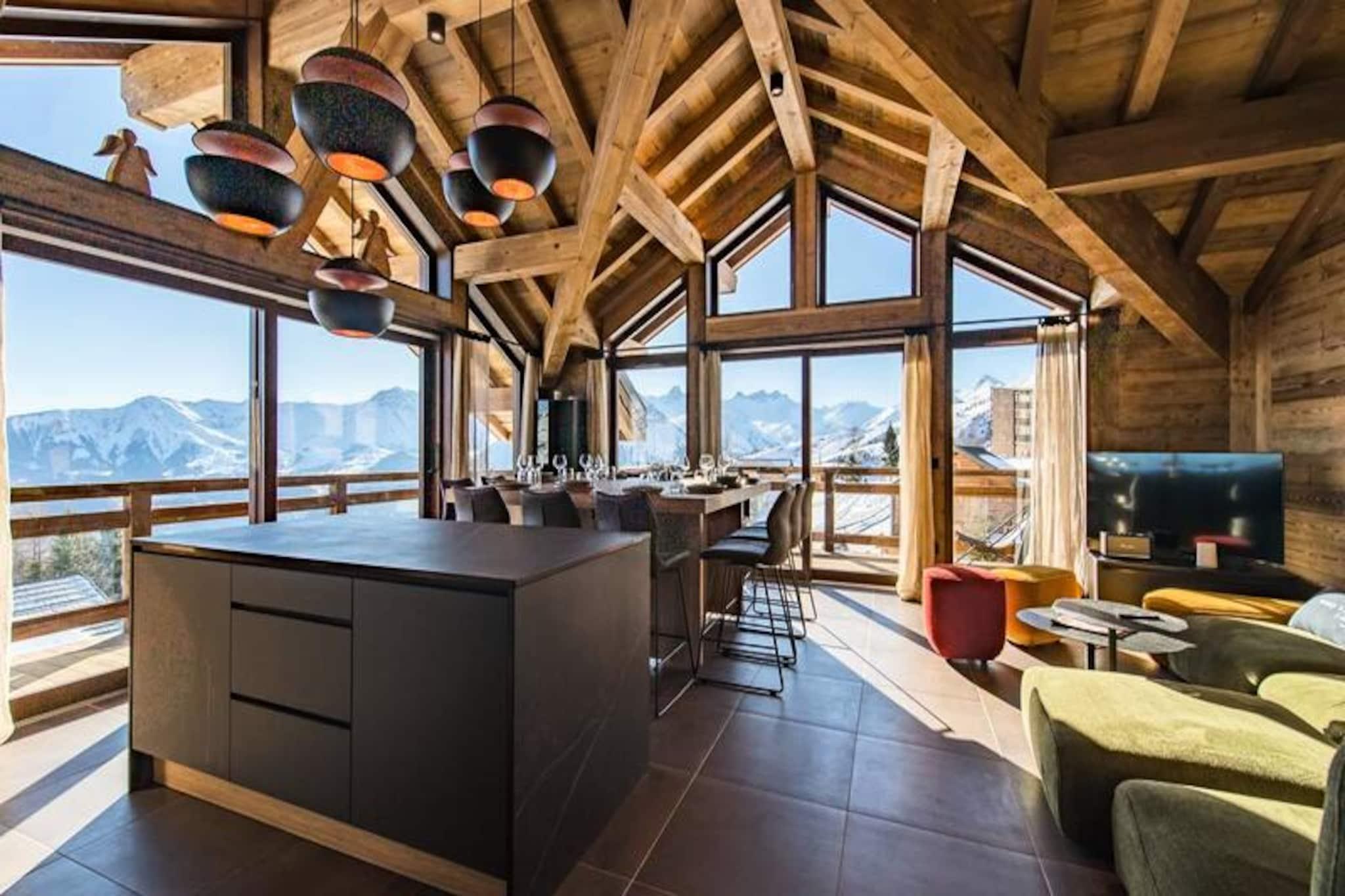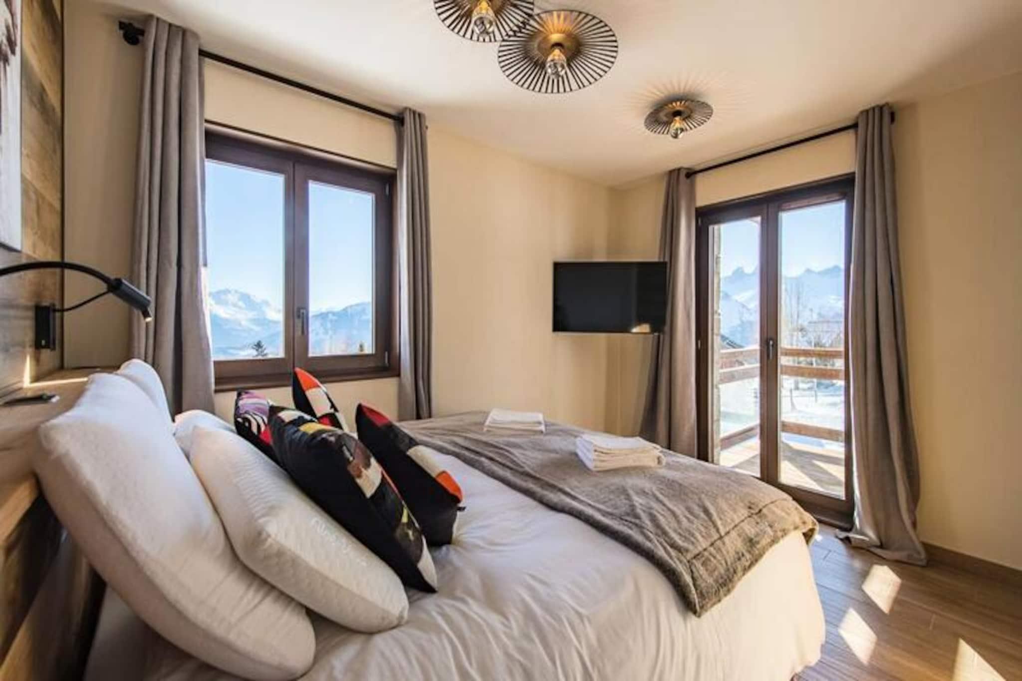 High above the picturesque slopes of the French Alps, this luxurious chalet invites you to experience an unforgettable mountain escape. Bathed in natural light from its south-facing design, the property offers breathtaking views that stretch across the serene alpine landscape. Whether you're seeking adventure or relaxation, this chalet provides the perfect setting for cherished moments with family and friends. From the moment you arrive, you'll feel the warmth and sophistication of its thoughtfully curated decor, blending modern comfort with timeless alpine charm. \n\nThe chalet spans three floors, each designed to cater to your every need. On the garden level, you'll find a convenient ski room for secure storage, alongside a laundry room equipped with a washer and dryer. The ground floor features a master suite with a queen-size bed and private shower room, a dormitory with three bunk beds accommodating up to six guests, a second shower room, and two separate toilets. The first floor boasts two elegant master suites, one with a king-size bed and the other with a queen-size bed, each with its own shower room and separate toilet. A sauna and pantry complete this level, offering relaxation and practicality. The crowning glory is the attic living area on the top floor, where a cozy lounge, a spacious dining room, and a fully equipped kitchen await. The kitchen is outfitted with premium appliances, including two dishwashers, a 90cm induction hob, oven, and microwave, ensuring effortless meal preparation. \n\nLocated in the heart of the Alps, the chalet is perfectly positioned for ski enthusiasts, with lift passes and ski lesson cards conveniently delivered to your door upon arrival. Guests who book in advance can enjoy exclusive discounts on ski equipment rentals and lift passes through trusted partners. Beyond skiing, the region offers a wealth of activities, from scenic hiking trails to vibrant local markets showcasing Savoyard specialties. \n\nWith end-of-stay cleaning, bed linen, and bathroom linen included, this chalet ensures a seamless and stress-free holiday experience. Whether you're unwinding in the sauna after a day on the slopes or sharing a meal in the inviting dining area, every moment here is designed to create lasting memories. Book now and let the magic of the French Alps envelop you in a world of beauty and tranquility.