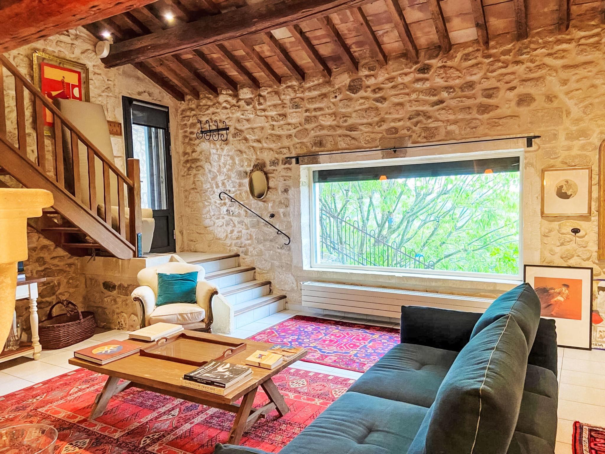 "Mas du Castelet", 4-room house 180 m2 on 2 levels, south-west facing position. Spacious, stylish and romantic furnishings: large living room. 1 large double bedroom with 1 french bed (200 cm, length 200 cm), shower/WC. 1 double bedroom with 1 french bed (180 cm, length 190 cm). Large, open kitchen (1 hot plate, oven, dishwasher, 5 gas rings, toaster, kettle, microwave, freezer, electric coffee machine). Bathroom, sep. WC, double hand-basin. Upper floor: 1 room with sloping ceilings with 1 french bed (160 cm, length 200 cm). Air-conditioning, forced-air heating. Natural stone floors. Large terrace, south-east facing position, large garden 120 m2, lawn. Terrace furniture, electric barbecue, deck chairs (6). Very beautiful panoramic view of the valley. Facilities: washing machine, dryer, mosquito net, children's high chair, baby cot (extra), hair dryer. Internet (WiFi, free). Parking (3 cars). Please note: non-smokers only. Smoke alarm. Offer by a commercial proprietor according to Art. 155, IV, CGI