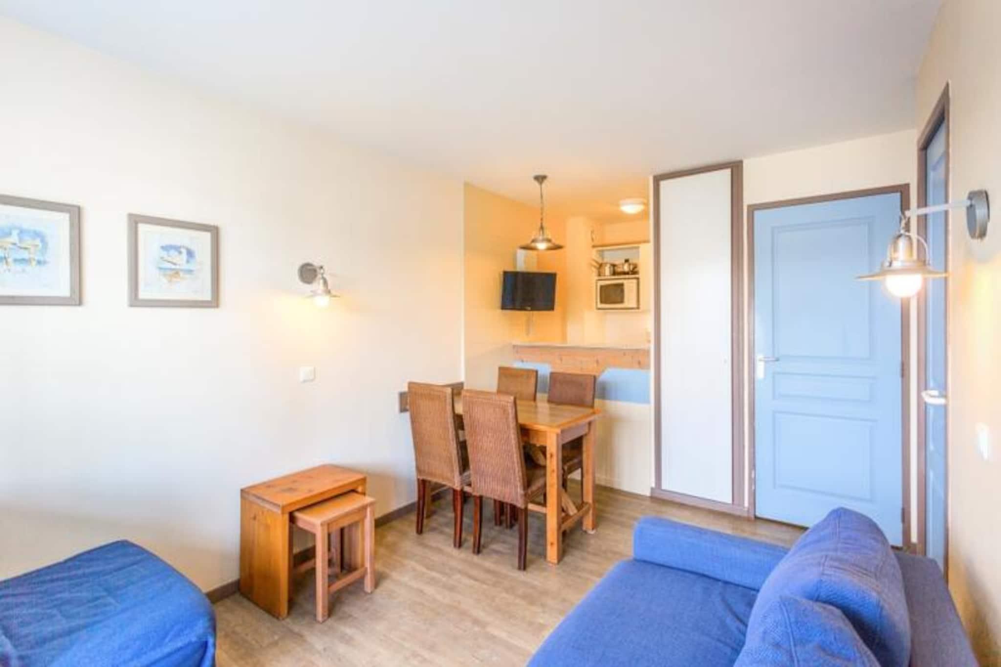 This charming holiday home is nestled in an eco-friendly village, offering comfortable accommodations for various group sizes. The space includes a living room with a convertible sofa, a cabin area with bunk beds, and a fully equipped kitchen. The bedroom features new bedding, and a bathroom with a bathtub and toilet is also included. Additional amenities such as a digital code, safe, TV, and children's equipment are available. The property is pet-friendly (subject to confirmation) and offers free parking in the village's different districts. The village is ideally located near the beach, just a short walk from the coastline, and is bordered by an 18-hole golf course. Guests can enjoy the surrounding nature, including the picturesque dunes, lakes, and maritime pines. Nearby, the town of Fort-Mahon-Plage offers shops, restaurants, and a variety of recreational activities. The residence is in close proximity to the natural parks of Somme and Authie, perfect for outdoor exploration and admiring local flora and fauna. For added comfort, the apartment is equipped with all necessary amenities for a pleasant stay, including a kitchen area and a cozy living space. Guests can enjoy a balcony view of the Aquaclub, which is available with additional charges. The property also offers a convenient location with easy access to hiking trails and scenic vistas.