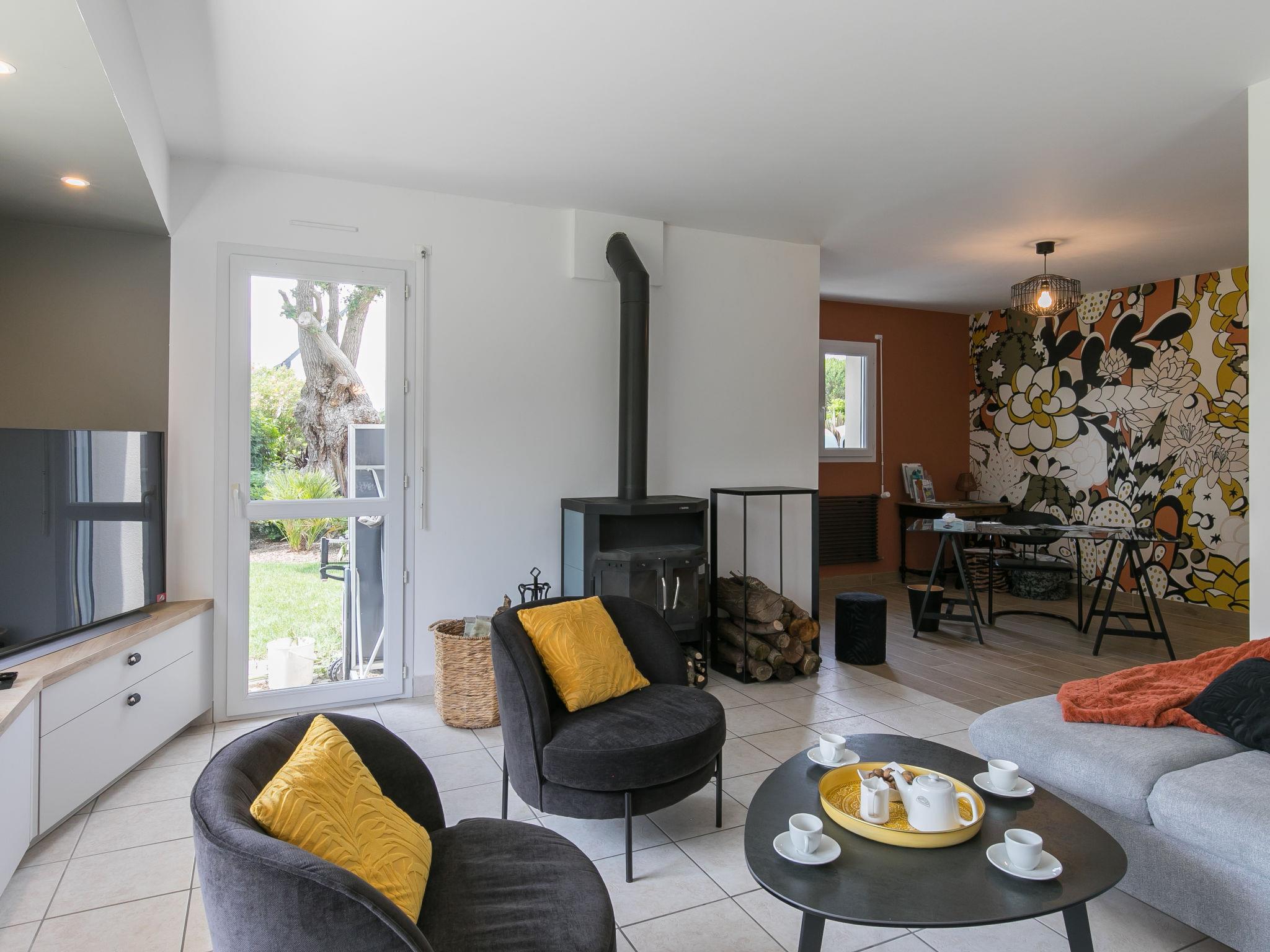 "L'échappée", 4-room house 160 m2. Comfortable and tasteful furnishings: large living/dining room 60 m2 with Scandinavian wood stove and TV. Exit to the garden, to the terrace. Open office. Large, open kitchen (oven, dishwasher, 3 gas rings, toaster, kettle, microwave, freezer, electric coffee machine). Exit to the terrace. Sep. WC. Upper floor: 1 large room with 1 french bed (160 cm, length 200 cm), shower and TV. Open gallery. 2 rooms, each room with 1 french bed (160 cm, length 200 cm). Shower, sep. WC. Electric heating. Terrace furniture, barbecue (portable), deck chairs (6). Of the garden. Facilities: washing machine, dryer, iron. Internet (WiFi, free). Please note: non-smoking house. Smoke alarm. Instead of an enclosed bedroom, some sleeping areas are located in an open-plan area (gallery, alcove, etc.).