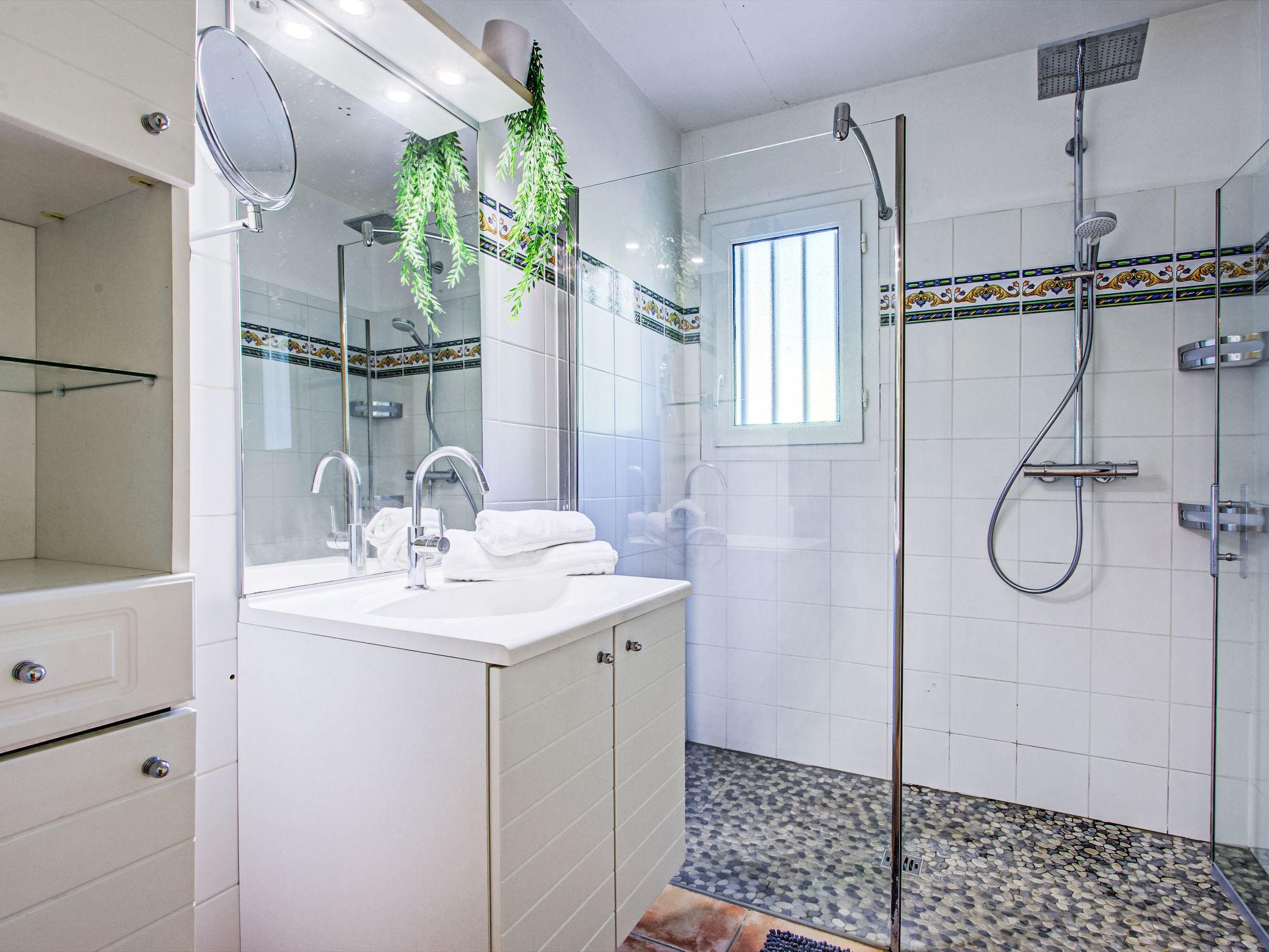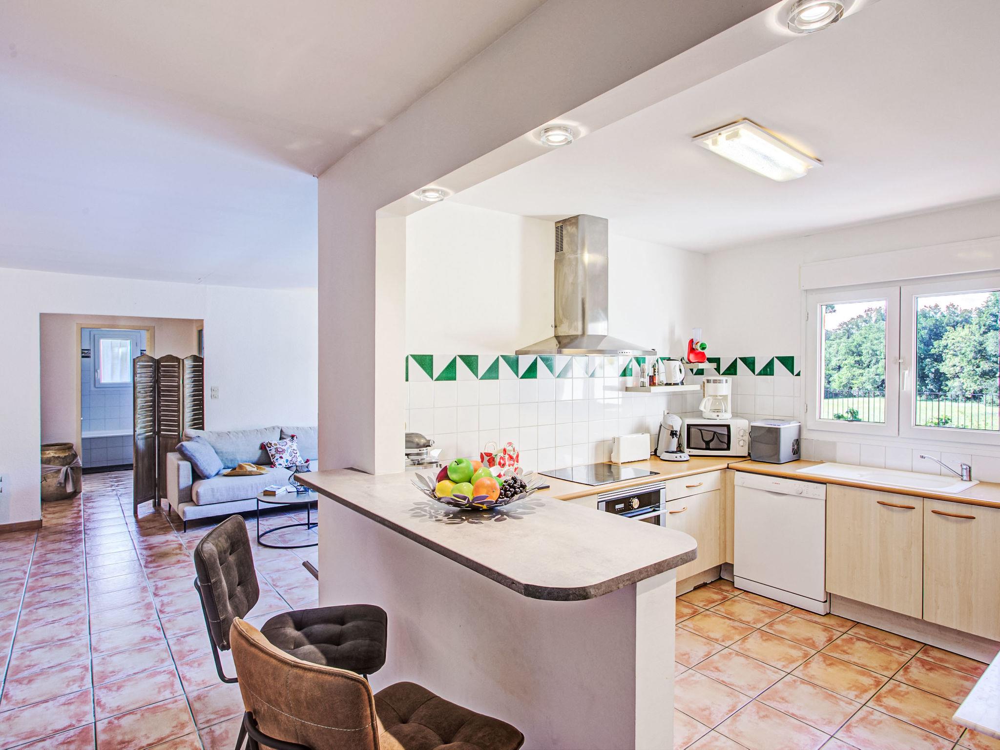 Fourques 8 km from Thuir: Single-family house "Côté Sud". In the resort 50 m from the centre of Fourques, in a quiet position in the residential district, 23 km from the sea, 23 km from the beach. Private: property 5'000 m2 (fenced), well-kept garden (fenced), swimming pool angular, heated, with privacy (9 x 4 m, depth 120 - 200 cm, seasonal availability: 01.Apr. - 15.Oct.) with shutter cover. Outdoor shower, pool house with cooking stove, table tennis, boules, terrace, garden furniture, barbecue house, pool maintenance by the owner/gardener. Parking (for 5 cars) on the premises. Grocery 50 m, restaurant 100 m, bakery 50 m, bus stop 100 m, railway station "Perpignan" 20 km, sandy beach "Saint Cyprien" 23 km. Sports harbour 23 km, golf course (18 hole) 23 km. Nearby attractions: le Monastir del Camp 4 km, Collioure 33 km, Thuir, cité du Byrrh et ses caves 8 km, Castelnou, village médiéval & château 9 km, Carcassonne 132 km, Espagne 24 km. Well-known lakes can easily be reached: Lac de Villeneuve de la Raho 14 km, Lac de St Jean Pla de Corts 5 km. Hiking paths: St Martin du Canigou 54 km, Pic du Canigou 64 km, Lac des Bouillouses 89 km. Please note: car recommended.
