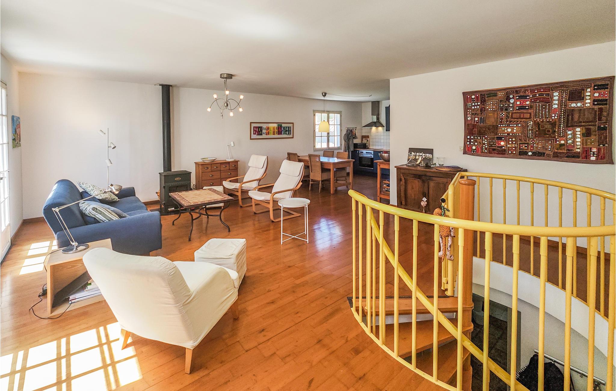 Freuen Sie sich, gemeinsam mit Ihrer Familie, auf erholsame Ferien in diesem schönen Ferienhaus in Fouzilhon. Auf zwei Etagen finden Sie alles vor, was Sie sich für Ihren Aufenthalt in Südfrankreich wünschen. Ein großer und gemütlicher Wohnraum bietet Ihnen die Möglichkeit, dass Sie zusammen kochen, essen und entspannen können. Sie können zudem entscheiden, ob Sie sich auf dem Balkon sonnen oder es sich auf der sonnengeschützten Terrasse gemütlich machen wollen. Hier finden Sie auch eine kleine Außenküche und Esstisch vor, wo Sie gemeinsam Ihre Lieblingsgerichte zaubern können.