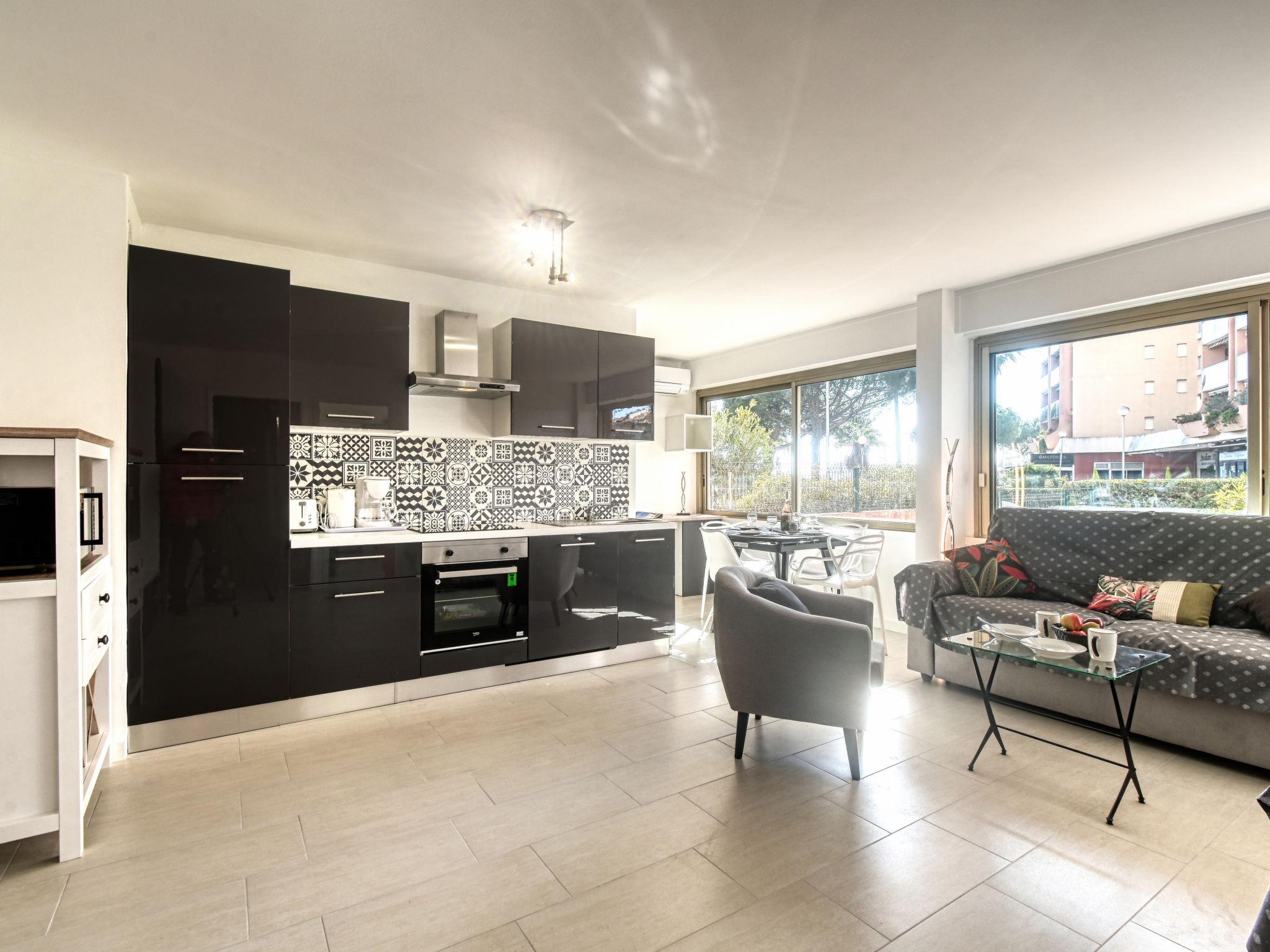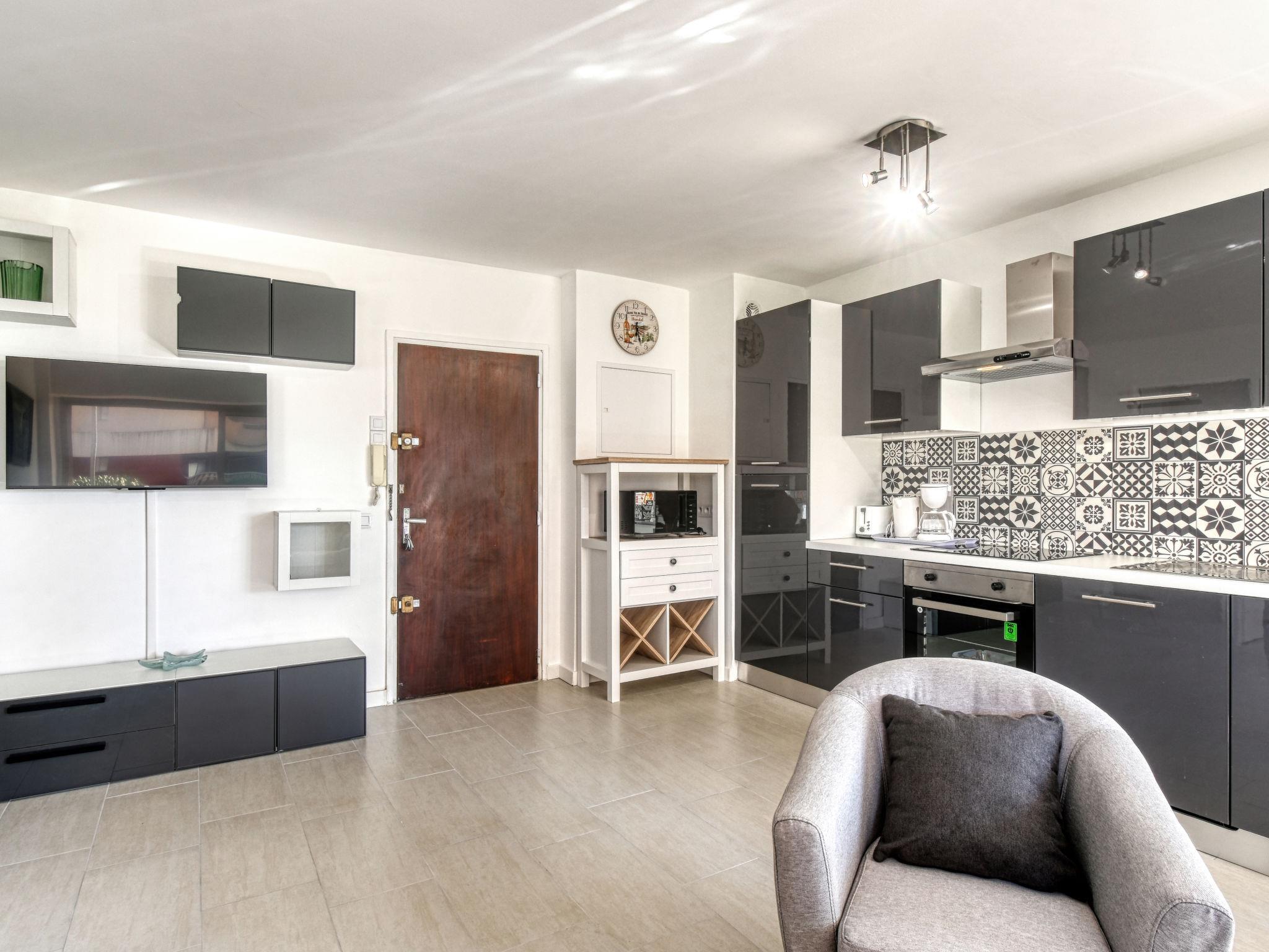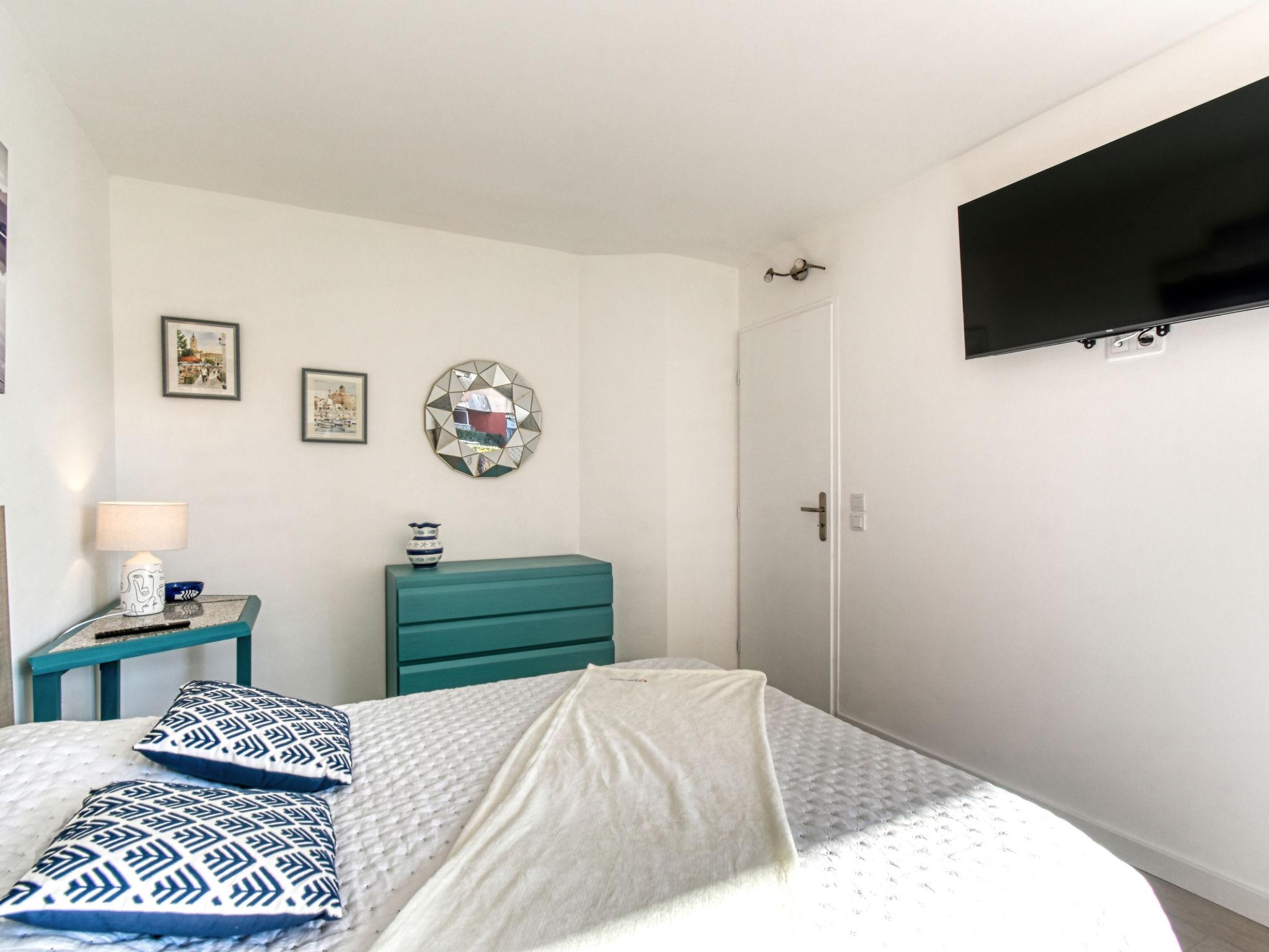 2-room apartment 46 m2, on the ground floor. Fully renovated in 2023: living/dining room with 1 double sofabed (1 x 140 cm, length 190 cm), TV and air conditioning. 1 room with 1 french bed (1 x 140 cm, length 190 cm), TV. Open kitchen (oven, dishwasher, 4 induction hot plates, toaster, kettle, microwave, freezer, electric coffee machine). Shower/WC. Electric heating. Side view of the sea. Facilities: washing machine, iron, hair dryer. Internet (WiFi, extra). Please note: non-smokers only. Maximum 1 small pet/ dog allowed. TV only FR. Smoke alarm. Offer by a private individual according to Art. 155, IV of CGI.