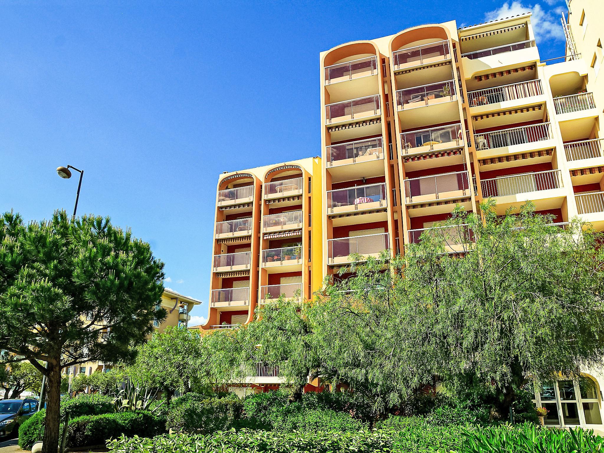 Port Fréjus: Residence "Le Capitole", 7 storeys. 20 m from the sea, 20 m from the beach. In the complex: lift. Public parking on the road. Shop 20 m, supermarket 2 km, restaurant, bakery 20 m, bus stop "Oasis" 300 m, railway station "Saint-Raphaël Valescure" 2 km, sandy beach "Fréjus", diving center 50 m. Sports harbour 50 m, golf course (18 hole) 6 km, minigolf 3 km. Nearby attractions: Cannes 40 km, Saint-Tropez 40 km, Nice 70 km, Gorges du Verdon 90 km. Well-known lakes can easily be reached: Sainte-Croix 90 km, St Cassien 25 km. Hiking paths: Estérel 8 km. The keys‘ handover takes place by the agency -------- in Port Fréjus.