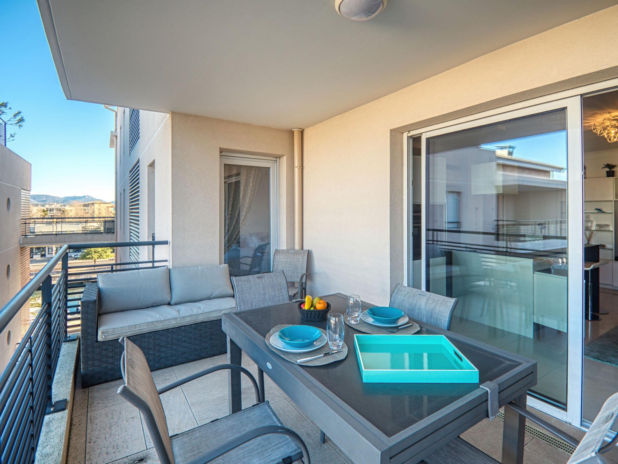 Port Fréjus II 3 km from Saint Raphaël: Beautiful residence "Le 4 Mats", 5 storeys, built in 2015. In a quiet position, 1 km from the sea, 1 km from the beach, 10 m from the canal. Supermarket 1.5 km, restaurant 1 km, bar 1 km, bakery 1.5 km, bus stop "Fougasses" 400 m, railway station "Saint-Raphaël Valescure" 3 km, sandy beach "Fréjus" 1 km, diving center 600 m. Sports harbour 50 m, golf course (18 hole) 8 km. Nearby attractions: Cannes 40 km, Saint-Tropez 40 km, Nice 70 km, Gorges du Verdon 90 km. Well-known lakes can easily be reached: Saint Cassien 30 km, Sainte Croix 90 km. Hiking paths: Estérel 10 km. The keys‘ handover takes place by the agency -------- in Port Fréjus, 2 km.