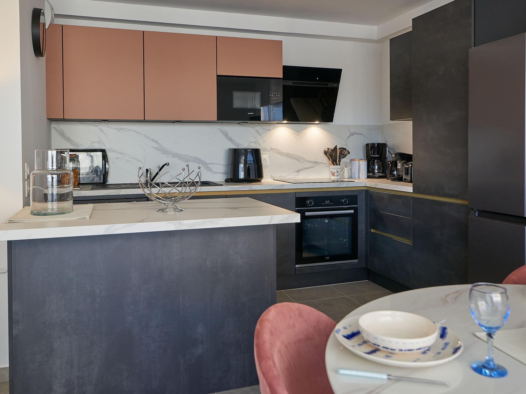 2-room apartment 49 m2 on 4th floor. Comfortable furnishings: living/dining room with 1 sofabed (140 cm, length 200 cm), flat screen, electric heating, air conditioning and electric shutters. Exit to the terrace, north facing position. 1 room with 1 double bed (180 cm, length 200 cm), air conditioning and electric shutters. Open kitchen (oven, dishwasher, 3 ceramic glass hob hotplates, toaster, kettle, microwave, freezer, electric coffee machine, Capsules for coffee machine (TASSIMO) extra). Shower, sep. WC. Electric heating. Terrace 10 m2. Terrace furniture. Facilities: washing machine. Internet (WiFi, extra). Parking space n 75/76. Please note: non-smokers only. Smoke alarm. Offer by a private individual according to Art. 155, IV of CGI.