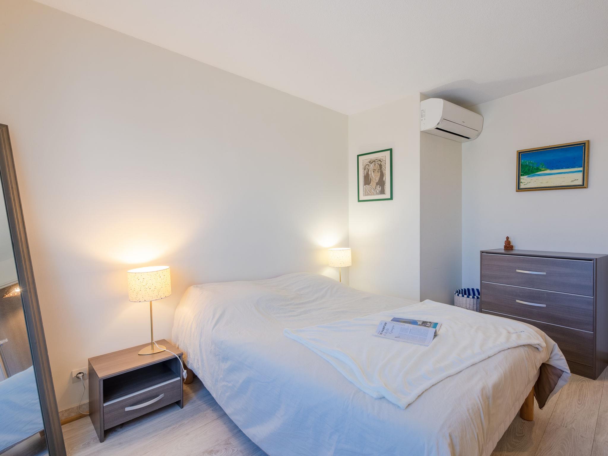 3-room apartment 63 m2 on 3rd floor. Living/dining room with 1 sofabed (120 cm, length 190 cm), TV and electric heating. Exit to the terrace. 2 rooms, each room with 1 double bed (1 x 140 cm, length 190 cm), air conditioning. Kitchen (oven, dishwasher, 4 induction hot plates, toaster, kettle, microwave, freezer, electric coffee machine). Shower, sep. WC. Air-conditioning. Terrace. Terrace furniture. Facilities: washing machine, iron, hair dryer. Internet (WiFi, free). Parking space n 36 (roofed), height 190 cm, width 208 cm. Please note: non-smokers only, parking space for small car only. TV only FR. Smoke alarm.
