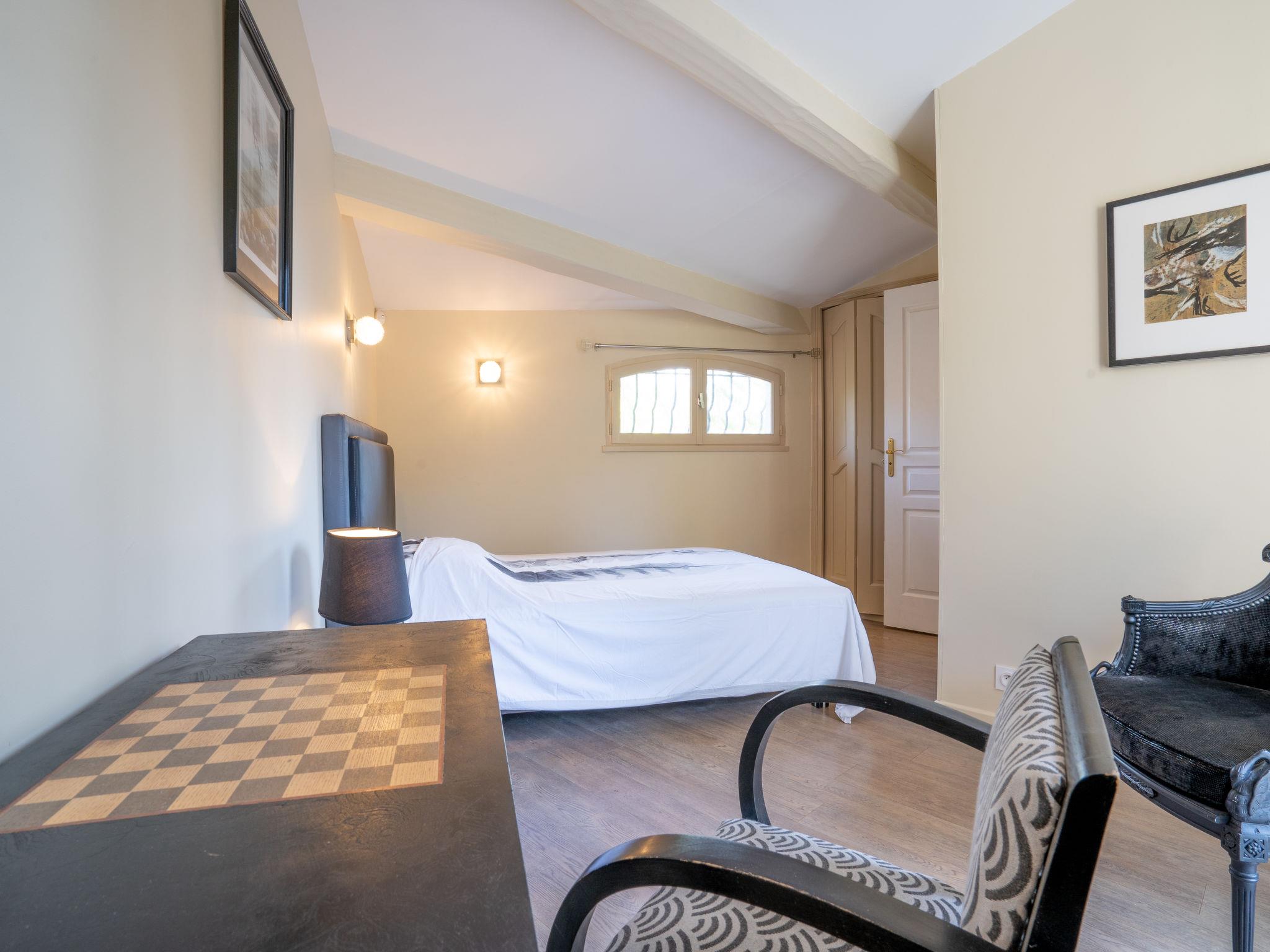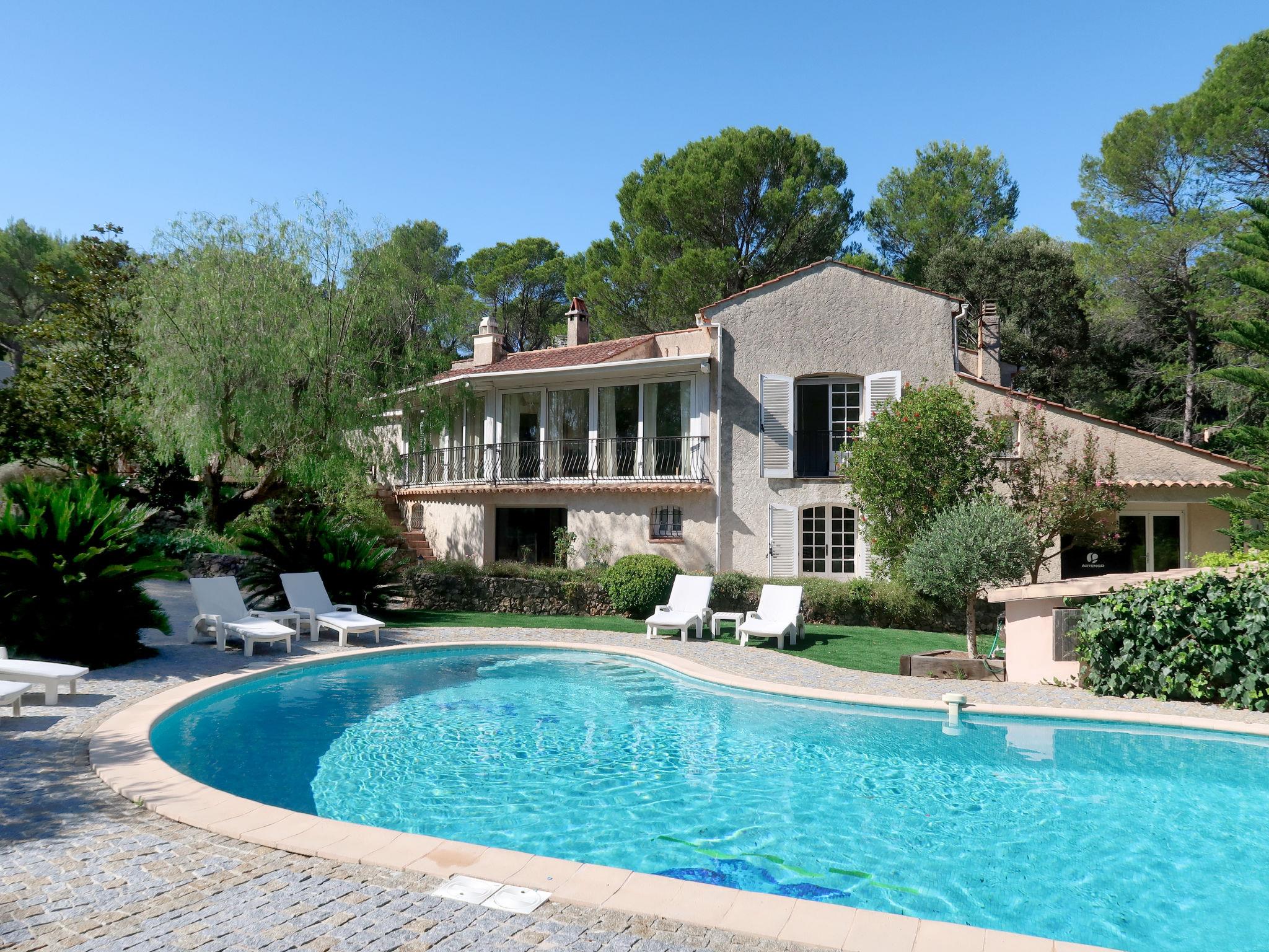 Large single-family house "Le Murier". Property composed of main house and outbuilding 4.5 km from the centre of Fréjus, 6.5 km from the centre of Saint Raphael, 38 km from the centre of Cannes, residential area (villas), 6 km from the sea, 6 km from the beach. Private: property 1'700 m2 (fenced), well-kept terraced garden, swimming pool kidney shaped (10 x 5 m, seasonal availability: 01.Apr. - 31.Oct.) with alarm system and salt-electrolysis pool-cleaning system. Outdoor shower, pool house with fridge and cooking stove, table tennis, boules. In the house: table football, burglar alarm system. Parking (for 3 cars) on the premises. Shop 4.5 km, bus stop 500 m, railway station "st raphael" 7 km. The owner does not accept any youth groups.