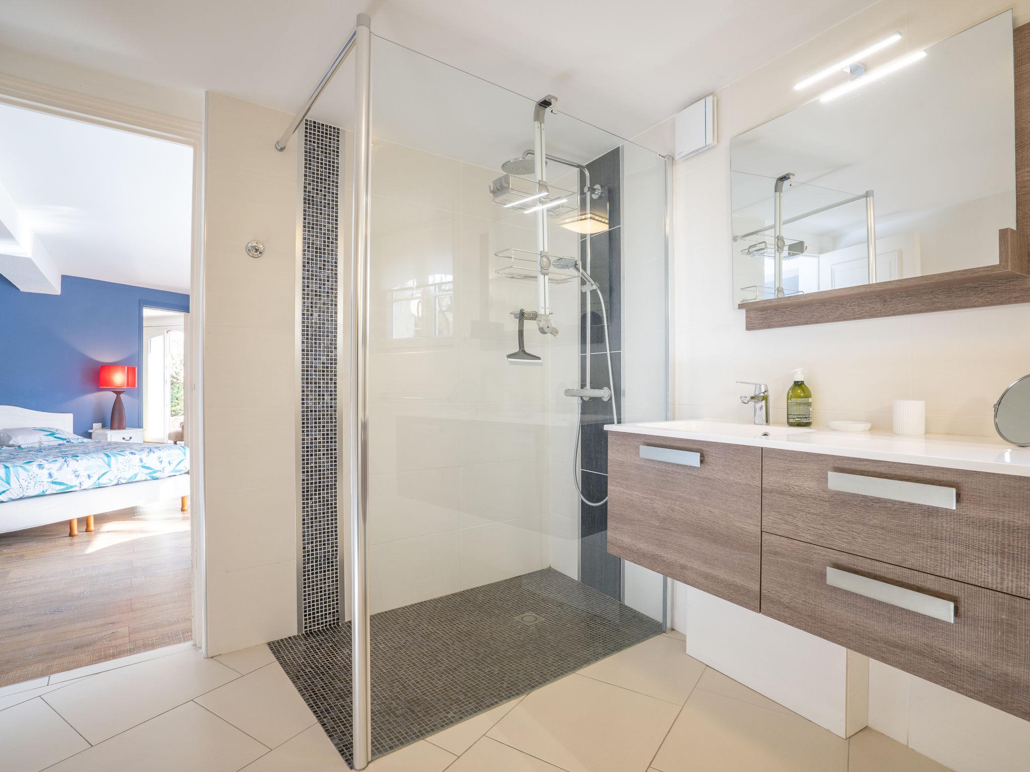 "Le Murier", 7-room house 280 m2 on 2 levels. Beautiful and tasteful furnishings: 1 room with 1 french bed (160 cm), shower/WC. Exit to the garden. 1 room with 1 french bed, bathroom and separate WC. Exit to the garden. 1 room with Dressing room with 1 french bed (180 cm), bath/shower/WC. Exit to the garden. Studio with 1 french bed, separate WC and shower. Exit to the garden. Upper floor: living room with winter garden with open-hearth fireplace, dining table and TV. Exit to the terrace. 1 room with 1 french bed and separate WC. 1 room with 1 french bed, separate WC and shower. Exit to the garden. Kitchen (oven, dishwasher, 5 gas rings, toaster, kettle, microwave, freezer, electric coffee machine) with dining nook. Exit to the terrace. Oil heating. Parquet floors, natural stone floors. Terrace 25 m2. Terrace furniture, electric barbecue, deck chairs. Facilities: washing machine, dryer, safe, iron, children's high chair, baby cot. Internet (WiFi, free). Please note: one double bedroom is outside the apartment. Non-smokers only. No internal connecting door between the separated properties. FJS1253HT