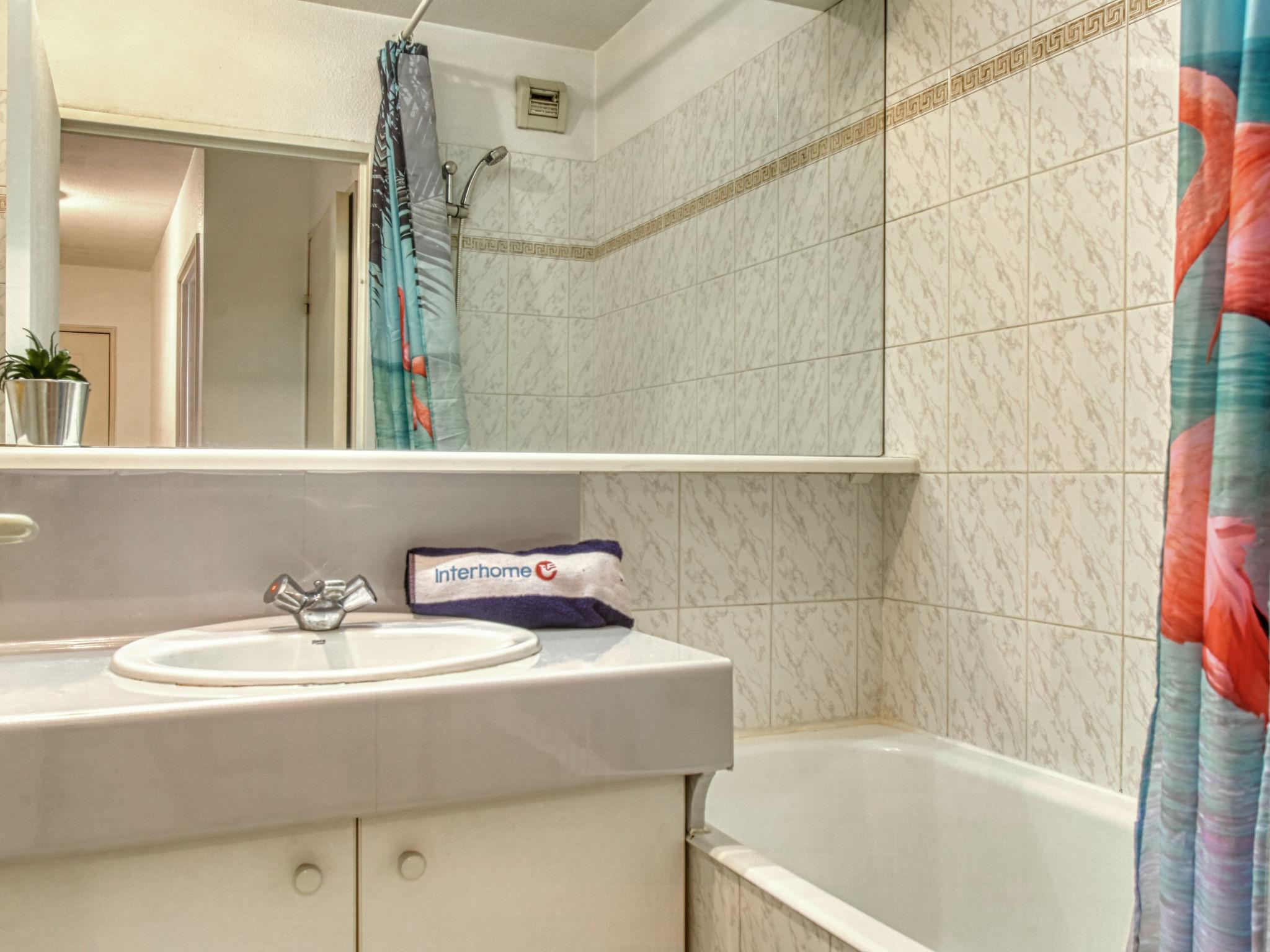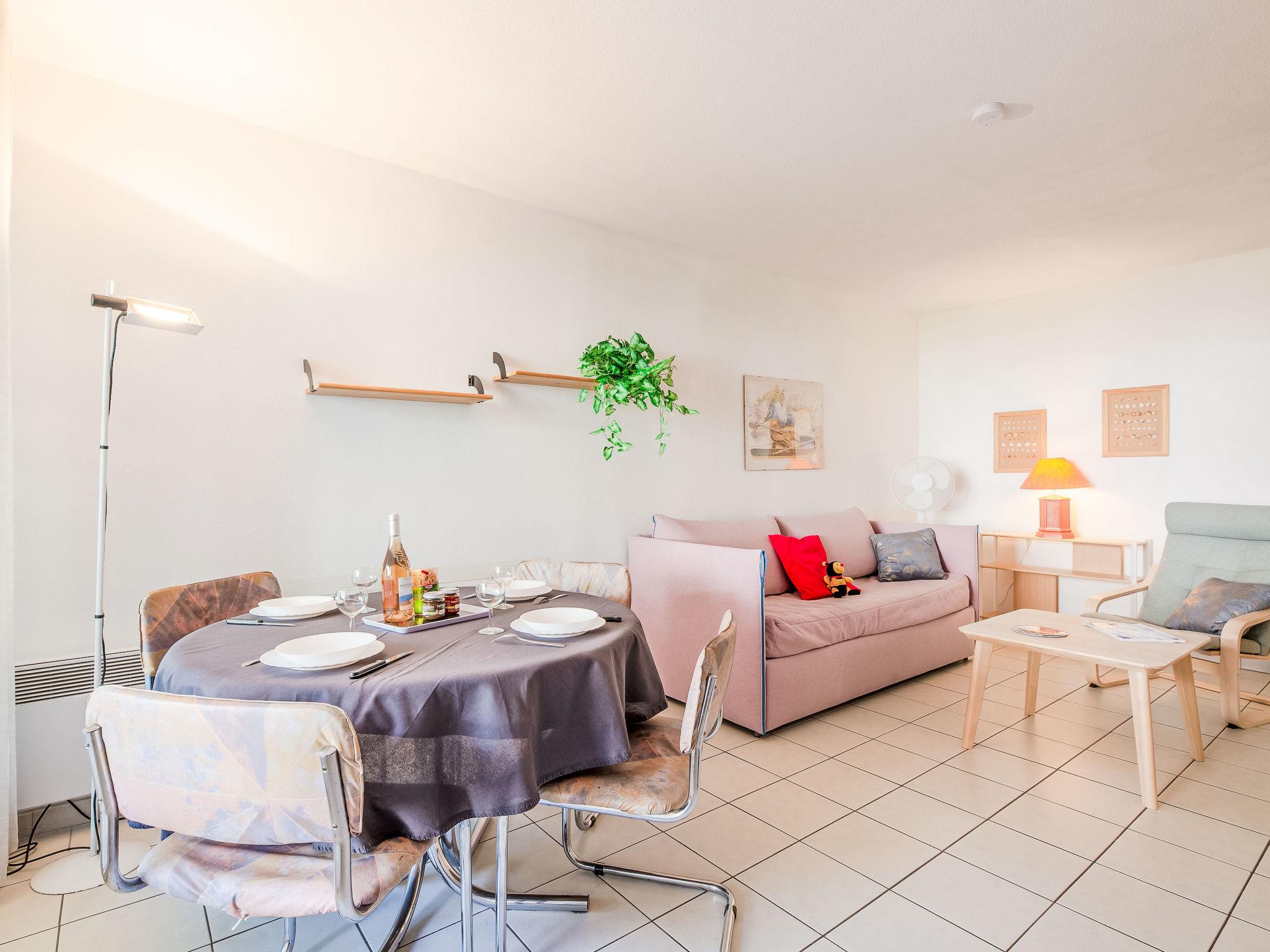2-room apartment 43 m2, on the ground floor. Living/dining room with 1 pull-out bed (2 pers. 2 x 80 cm, length 190 cm), satellite TV, electric heating and air conditioning. 1 room with 1 french bed (1 x 140 cm, length 190 cm). Kitchen (4 hot plates, mini-oven, oven, dishwasher, kettle, electric coffee machine). Bathroom, sep. WC. Electric heating. Terrace 7 m2. Facilities: Internet (WiFi, extra). Parking space n 6057 (roofed), height 190 cm, width 235 cm. Please note: smoke alarm. 0466802996408