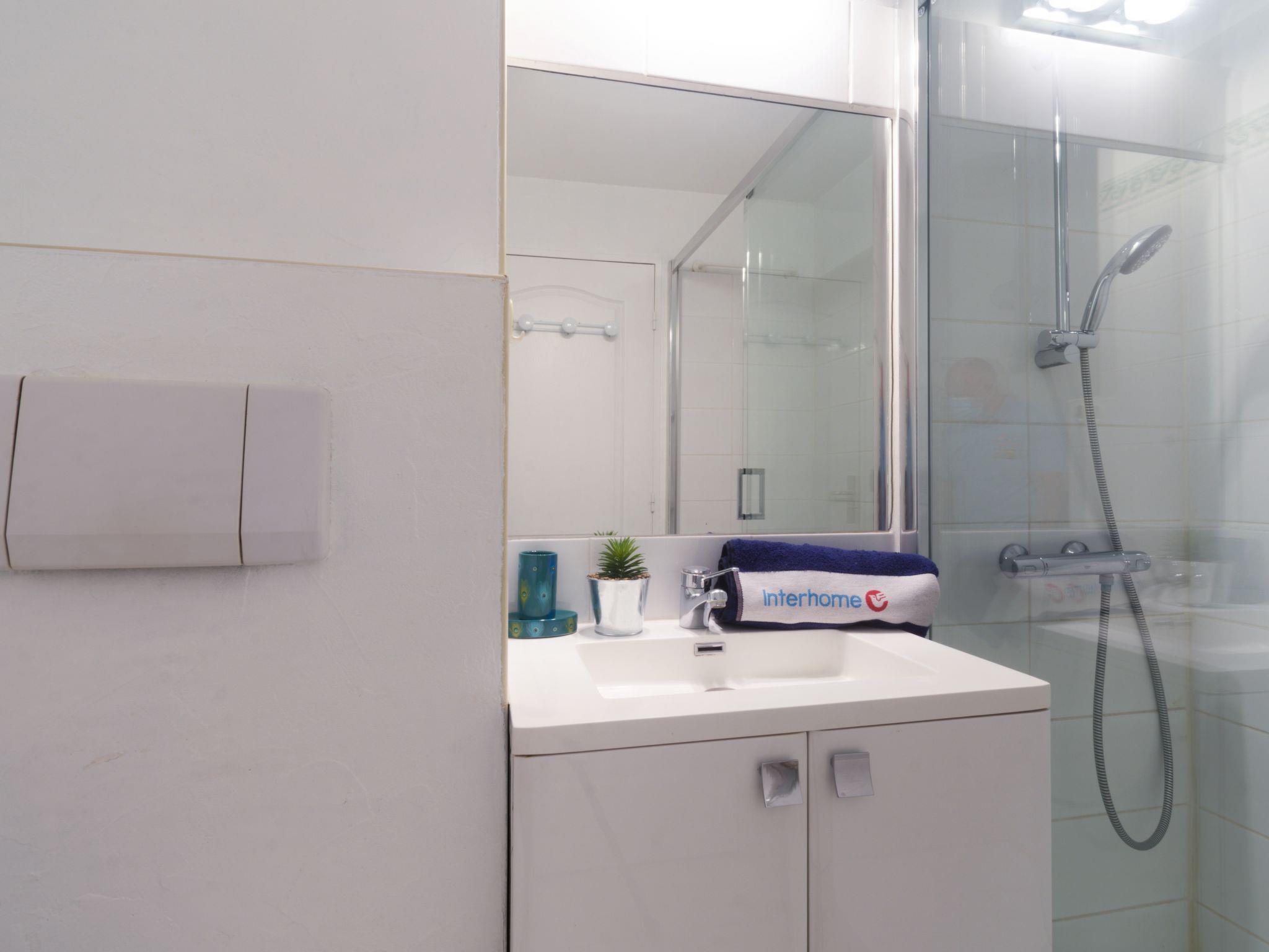 1-room studio 30 m2 on 5th floor. Object suitable for 2 adults + 2 children. Beautiful furnishings: living room with 1 double sofabed (1 x 140 cm, length 190 cm), TV (flat screen). Exit to the terrace. Sleeping alcove with 1 x 2 bunk beds (80 cm, length 190 cm). Kitchenette (4 hot plates, dishwasher, toaster, kettle, electric coffee machine, combination microwave). Shower/WC. Electric heating. Large balcony 6 m2. Balcony furniture. Distant view of the mountains. Facilities: washing machine, iron. Internet (WiFi, extra). Parking space n 43 (roofed, 1 car), height 190 cm, width 240 cm. Please note: apartment street side. Non-smokers only. Maximum 1 pet/ dog allowed. TV only FR. Smoke alarm. Instead of an enclosed bedroom, some sleeping areas are located in an open-plan area (gallery, alcove, etc.).