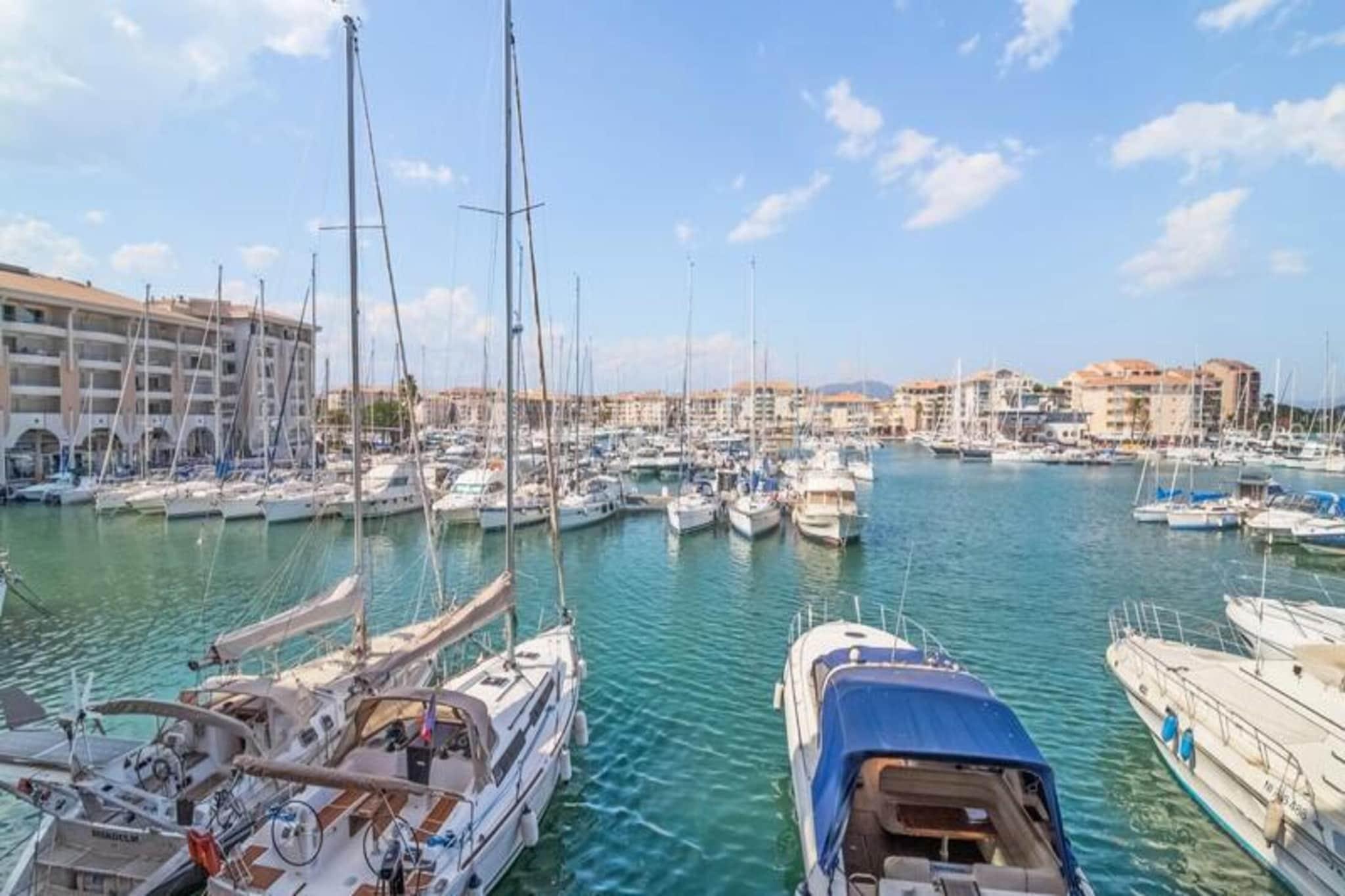 This charming apartment, located in the heart of Fréjus, offers a comfortable stay with a variety of amenities for up to 4 guests. The living room is furnished with two sofa beds, perfect for lounging or sleeping, and the bedroom includes a double bed and a small television for relaxation. The apartment also features a bathroom with a bathtub and a separate toilet, ensuring convenience for all guests. Pets are welcome, and a reserved parking space adds to the convenience of your stay. Situated just 50 meters from the beach and in the center of the pedestrian area, this property offers easy access to the vibrant local scene. You’ll be within walking distance of the François Léotard nature base, which is great for outdoor activities. The area is filled with cafes, shops, and local markets, where you can explore the best of Fréjus. Enjoy a leisurely stroll along the marina and take in the beautiful surroundings. The apartment includes an open kitchen area connected to the living room, allowing you to prepare meals easily. The furnished balcony offers a relaxing space to enjoy your meals or unwind while taking in the port view. Other amenities include two TVs, ample storage space, and a vacuum cleaner for your convenience. The outdoor swimming pool, available from June to September, adds to the appeal of this well-equipped apartment.
