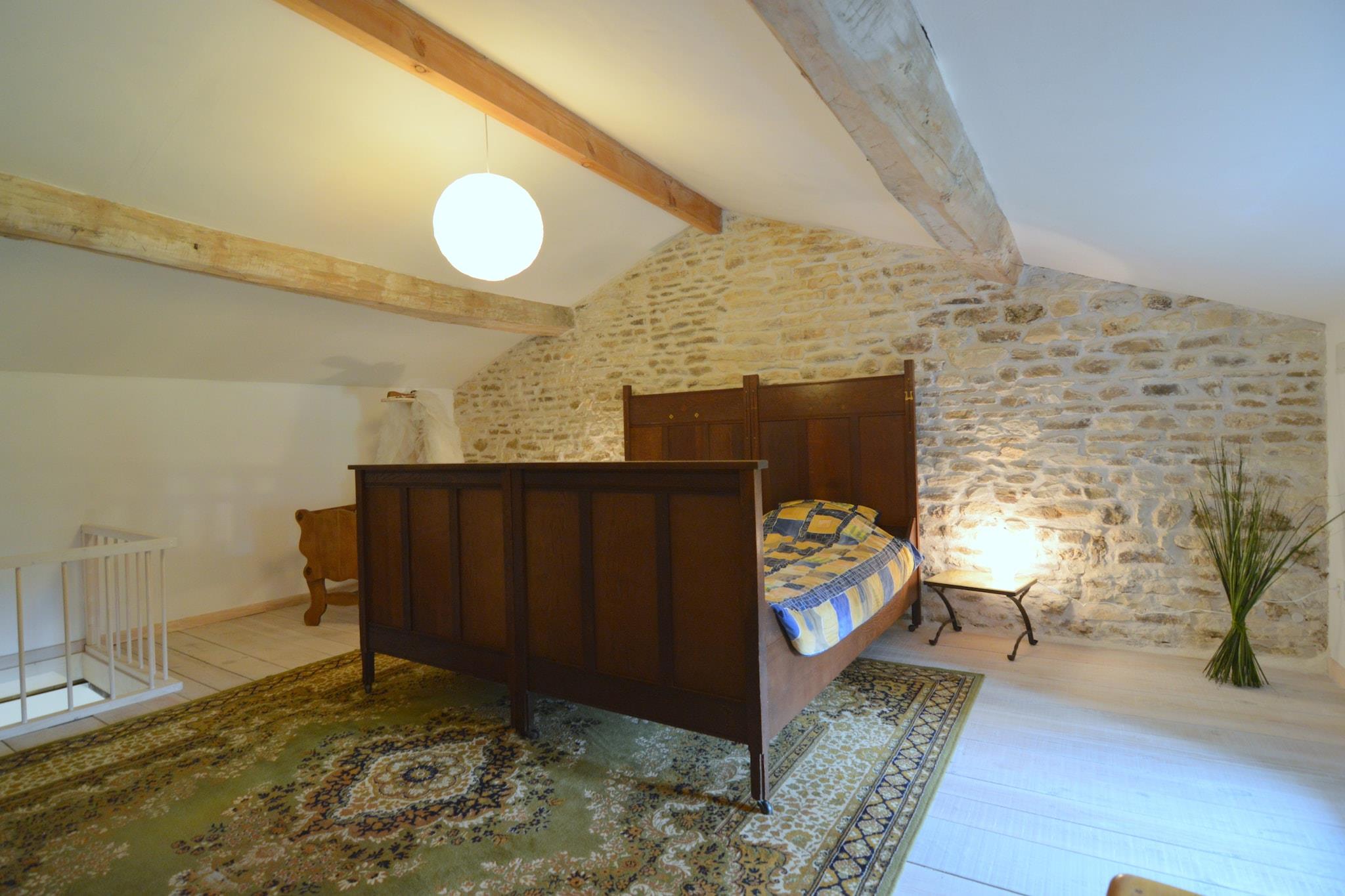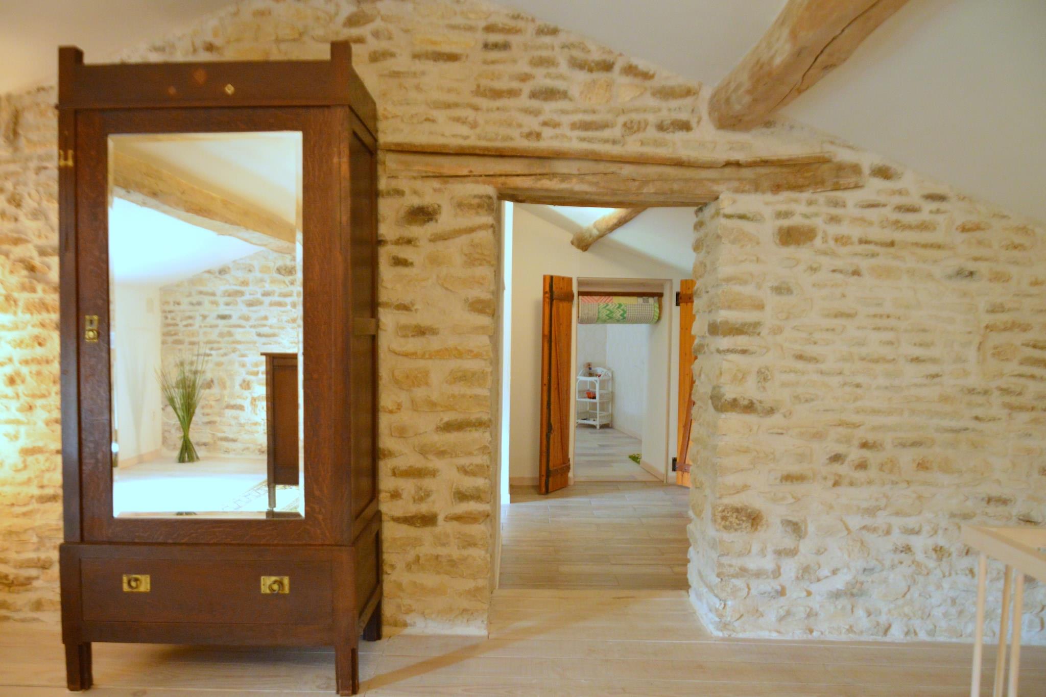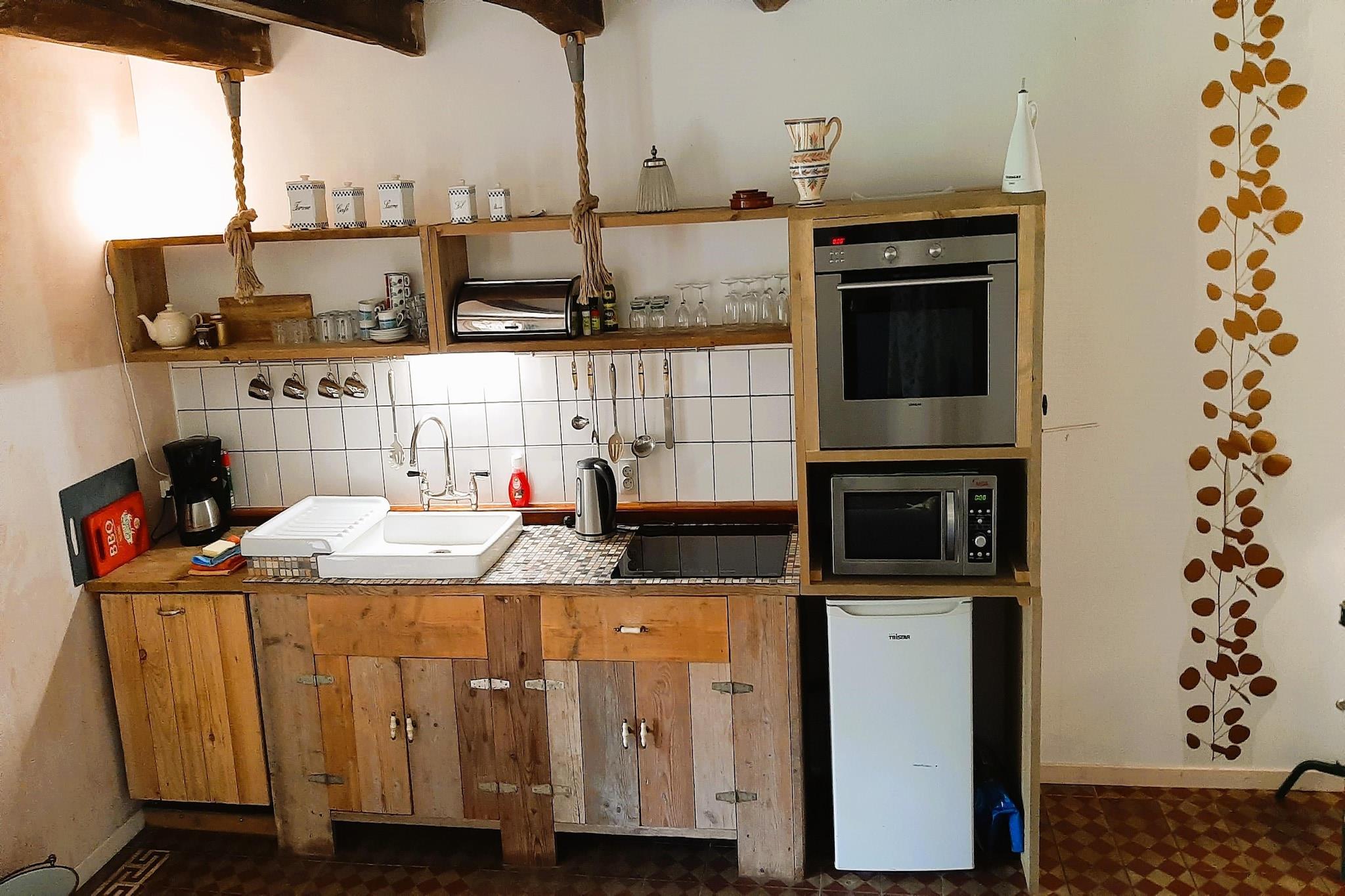 Slow mornings, open skies, and the quiet charm of the French countryside define your stay in this peaceful holiday home in Frontenay-sur-Dive. Surrounded by greenery and far from the rush of city life, it offers a setting where you can truly switch off and enjoy a more grounded, nature-led experience. In the house, authentic details such as wooden support beams, natural stone walls and the centuries-old fireplace have been preserved. The home is designed for comfort and ease, featuring a welcoming living area, a fully equipped kitchen, and thoughtfully arranged interiors that make group stays feel relaxed rather than structured. The sleeping arrangement can be found upstairs, spread across 2 bedrooms with a flexible bed setting in addition to a shared modern bathroom for ease. Additional features such as free Wi-Fi, parking, and other family-friendly amenities ensure a convenient stay. Large outdoor spaces extend the experience beyond the walls, with a garden and terrace that invite long meals, conversations, and time spent outdoors. A highlight of the property is the outdoor swimming pool, complemented by a spacious garden and barbecue facilities, making it ideal for warm days and evenings spent outside. Set in a nature-rich region, the property is close to a forest (4 km), a river (5 km), and a lake with a beach (10 km), while an organic garden just 150 m away offers fresh produce. The area is ideal for cycling, horse riding, and exploring vineyards, historic villages, and attractions like Futuroscope, Puy du Fou, Château d’Oiron, Les Trois Moutiers, and the Loire castles, making it a great base to experience authentic France.