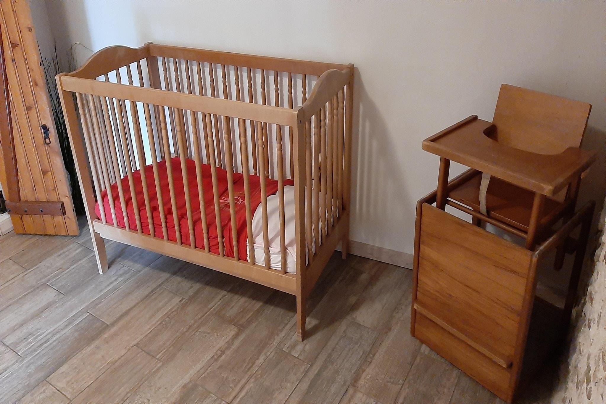 Ground floor: (open kitchen(cooker(3 ring stoves, induction), oven, microwave, dishwasher, fridge), Living/diningroom(TV(flatscreen), stove(wood), DVD player)) On the 1st floor: (bedroom(double bed or 2 single beds(90 x 200 cm)), bedroom(small double bed(140 x 190 cm)), bathroom(shower, washbasin, toilet), Landing) coffee machine, washing machine, terrace(private), garden(shared with other guests, fenced, > 1000 m2), garden furniture, BBQ, parking, swimming pool(shared with other guests, heated, opened from 1/2 May upto and including Sep), play equipment, children's bed