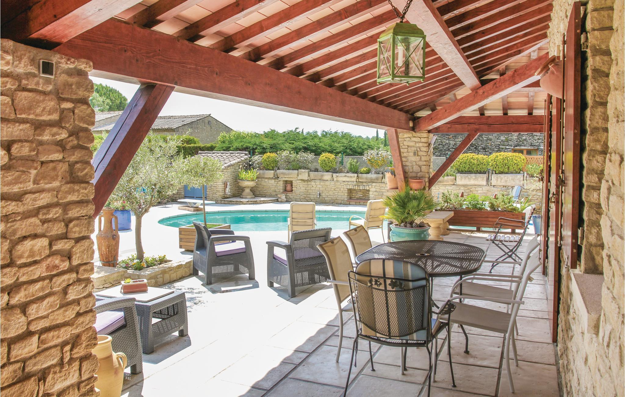 Ideales Ferienobjekt für einen sonnigen Aufenthalt in der Provence. Am Fuße des charmanten Bergdorfs Gordes gelegen begrüßt es Sie im Vaucluse unweit des Luberon. Dieses große Anwesen ist dreigeteilt. Eine separierte Haushälfte wird von den Eigentümern bewohnt und ein weiterer Bereich wird ebenso an Urlaubsgäste vermietet. Der Pool steht Ihnen zur alleinigen Nutzung zur Verfügung. Mit einem geschlossenen, von Olivenbäumen gesäumten Garten und einer sonnigen Terrasse ist die Unterkunft die perfekte Ruheoase für Erholung pur. Eine angenehm schattige Terrasse lädt zum Verweilen und Essen ein. Die Innenbereiche sind komfortabel und hell und mit hochwertigen Möbeln ausgestattet. Gordes zählt zu den offiziell schönsten Dörfer ganz Frankreichs und ist vor allem bekannt für die nahe gelegenen Ockerfelsen, die ihren Besuchern einen unvergesslichen Spaziergang versprechen. Gordes lockt ebenfalls mit der Abtei Notre-Dame de Sénanque und dem Dorf der Galliersteinhütten (Village des Bories). Von der Tour des Baumes aus hat man ein außergewöhnliches Panorama. Fahren Sie nach Fontaine-de-Vaucluse, um die wunderschöne Quelle der Sorgue zu erleben, und setzen Sie anschließend Ihren Ausflug fort nach L'Isle-sur-la-Sorgue, das wegen seiner Kanäle auch das Venedig der Provence genannt wird. Dort erwarten Sie ein schwimmender Markt sowie zahlreiche Antiquitätengeschäfte und Trödelläden. Wer Ruhe und Erholung für seinen Urlaub sucht, liegt mit diesem Ferienobjekt mit Pool genau richtig.