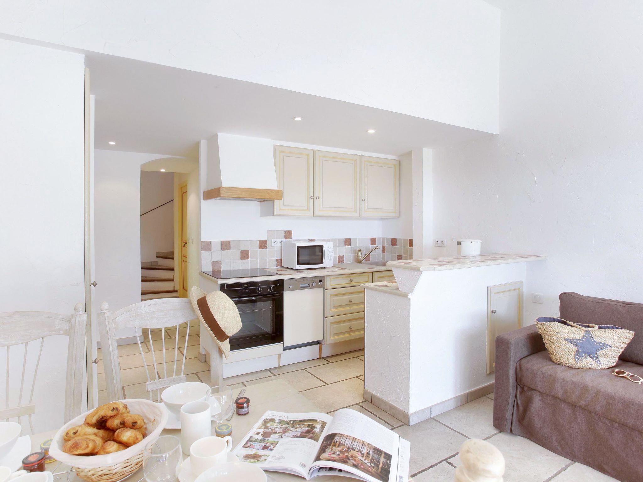"Odalys Référence La Bastide des Chênes", 2-room terraced house 33 m2. Bright, practical and beautiful furnishings: living/sleeping room with 1 sofabed, 1 pull-out bed, dining table and satellite TV. Exit to the terrace. 1 room, without wardrobe with 1 french bed. Kitchenette (oven, dishwasher, 4 ceramic glass hob hotplates, microwave, freezer, electric coffee machine). Bath/WC. Electric heating, air-conditioning. Terrace. Terrace furniture. Facilities: children's high chair, baby cot. Please note: non-smoking house. Smoke alarm, fire extinguisher.