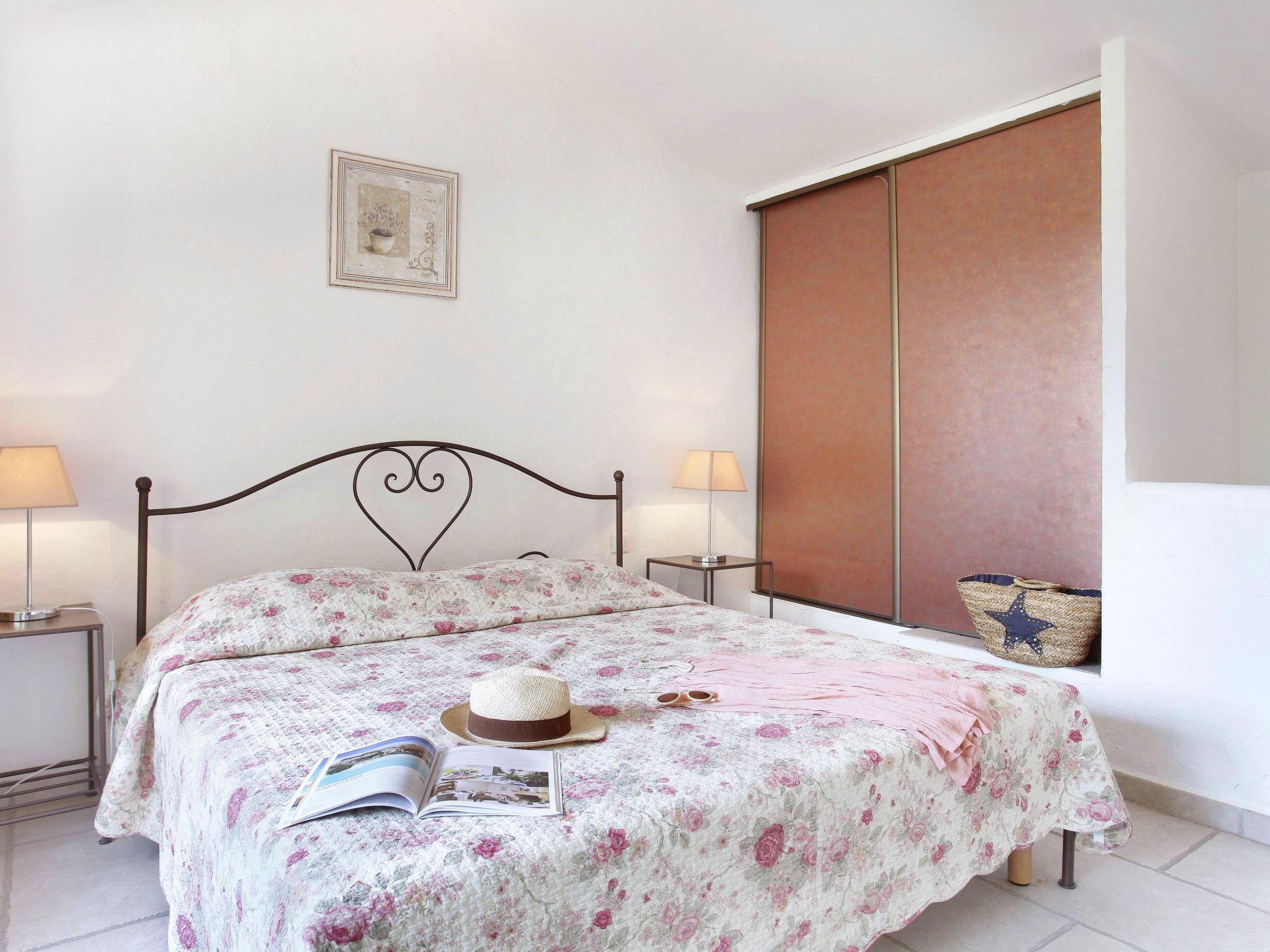 "Odalys Référence La Bastide des Chênes", 2-room terraced house 44 m2 on 2 levels. Bright, practical and beautiful furnishings: living/sleeping room with 1 sofabed, 1 pull-out bed, dining table and satellite TV. Exit to the terrace. Kitchenette (oven, dishwasher, 4 ceramic glass hob hotplates, microwave, freezer, electric coffee machine). Bath/WC. Electric heating, air-conditioning. Upper floor: 1 open room, without wardrobe with 1 double bed. Terrace. Terrace furniture. Facilities: children's high chair, baby cot. Please note: non-smoking house. Smoke alarm, fire extinguisher.
