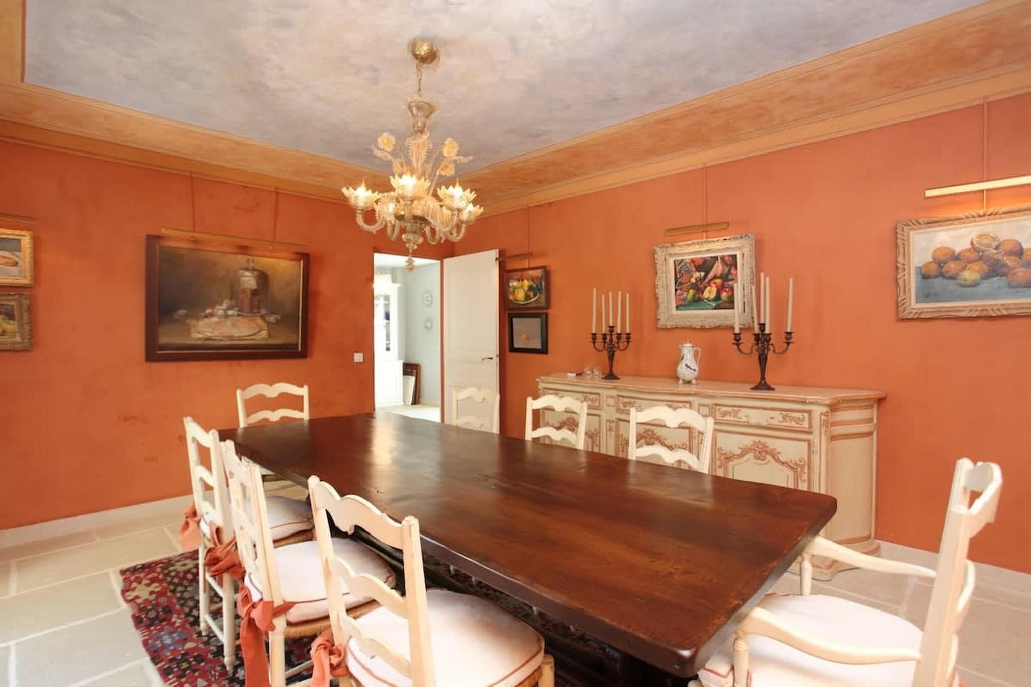 Located in one of the most beautiful spots in Gordes, this villa is a superb bastide offering breathtaking, panoramic views over the Luberon valley and the village castle. This exceptional property is perfectly equipped for a large family or group, featuring six bedrooms and five bathrooms to comfortably accommodate 8 to 12 people. The spacious interior is designed for comfort and functionality. The main entrance opens to a living room with a study area, a dedicated dining room, and a fully equipped kitchen. The kitchen provides high-end appliances, including an oven, microwave, range cooker, refrigerators, freezer, dishwasher, washing machine, and dryer. The bedrooms offer flexibility: the Master bedroom features a queen-size bed (160cm), air conditioning, and a luxury bathroom with a double bathtub and hydrojet shower. The other five bedrooms are configured with various queen and single beds, supported by multiple shower rooms and a total of five bathrooms. The true majesty of this bastide lies outside, where three separate terraces overlook the many picturesque villages of the Luberon, providing ideal spots for relaxing or entertaining. The large enclosed garden features a private 12x6 meter swimming pool with a safety cover. Linens and bath towels are provided, and the final cleaning is included. Guests benefit from complimentary Wi-Fi, a stereo system, and professional pool and garden maintenance. The concierge service, available upon arrival, can even arrange a guided tour of the village during the summer season. For a special treat, the terrace of Chef Pierre Gagnaire's Pèir restaurant is nearby, offering unique dishes with stunning views.