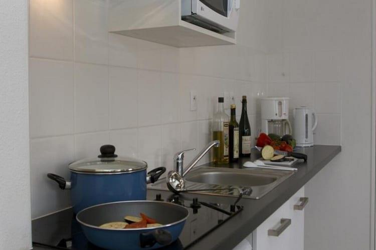 Kitchenette(hob(2 ring stoves, ceramic), electric kettle, coffee machine, microwave, fridge), Living/bed room(double sofa bed, TV), bathroom(shower, toilet), tumble dryer(shared with other guests, paid), washing machine(shared with other guests, paid), heating, swimming pool(shared with other guests, heatable, opened from 1/2 Apr upto and including Sep), high chair, baby crib(free)