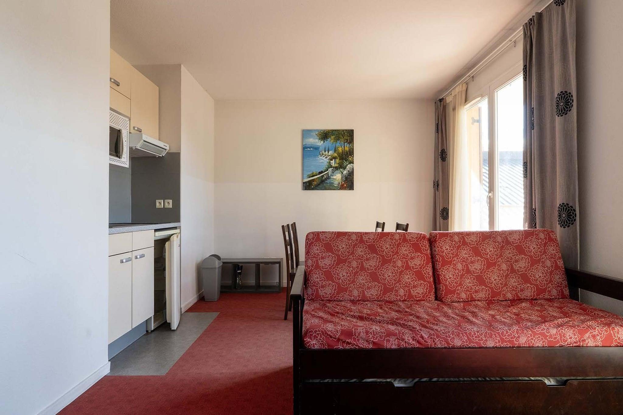 This bright and charming 40 m² apartment offers a refined retreat for up to four guests, ideally situated in a peaceful neighborhood of Grasse. Located just 500 metres from the city center and a short walk from local dining favorites like "Le Roure," the property provides easy access to both quiet relaxation and the vibrant life of the perfume capital. Guests can enjoy quiet afternoons on the private balcony or take a refreshing dip in the communal swimming pool. The interior is designed to maximize natural light and comfort, featuring a cozy living area with a flat-screen TV and two single sofa beds. A separate bedroom with a double bed offers a restful space, while the bathroom is well-appointed with a bathtub and washbasin. For added convenience, the building includes elevator access, high-speed internet, and open-air parking in an adjoining block. The independent kitchen is fully equipped for those who enjoy preparing their own meals, featuring a refrigerator, oven, microwave, and essential appliances such as a coffee machine, toaster, and kettle. Whether you are planning a trip to the sandy beaches just 20 km away or exploring the nearby shopping districts, this apartment serves as a sophisticated and serene base for your stay on the French Riviera.