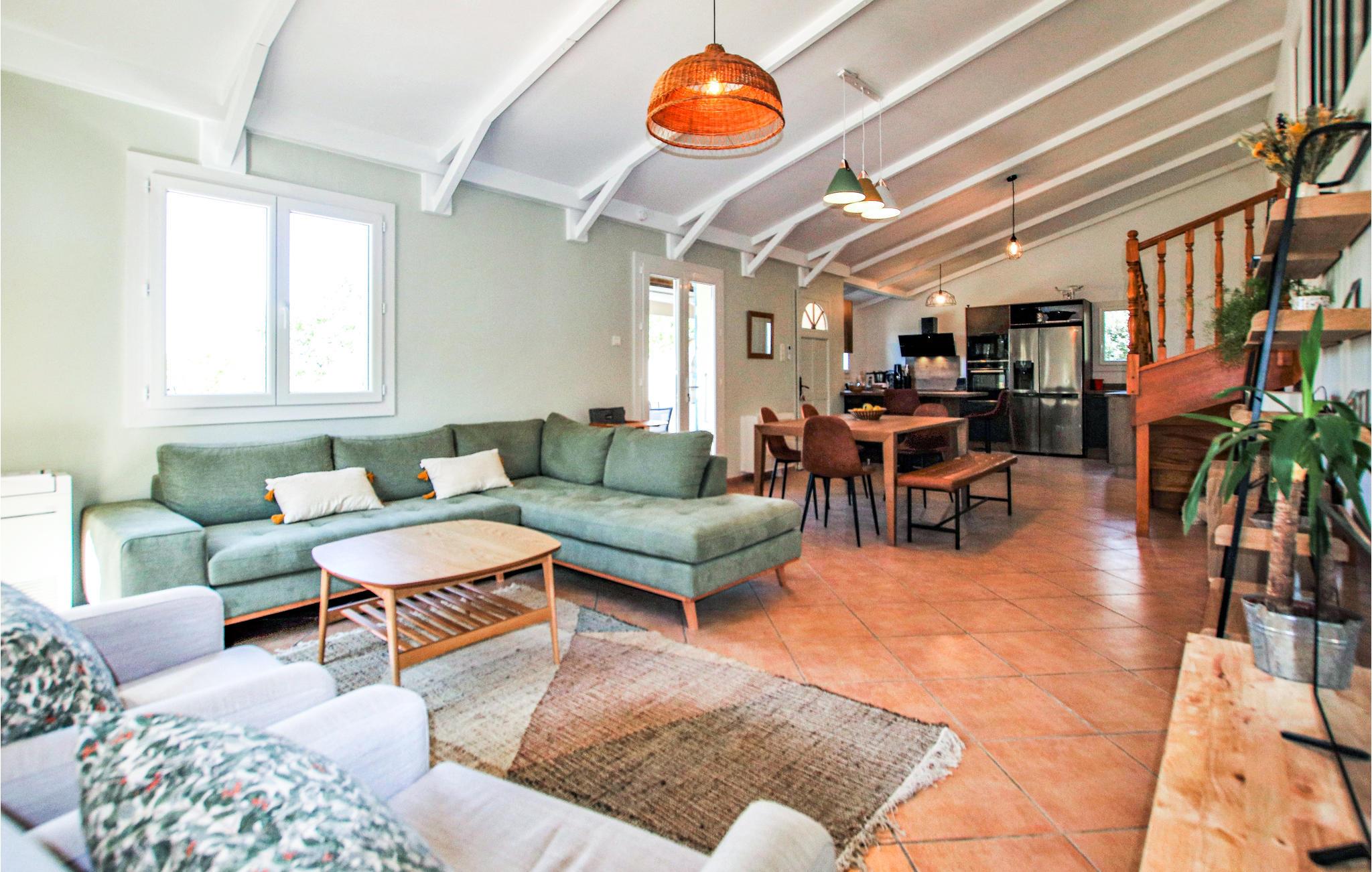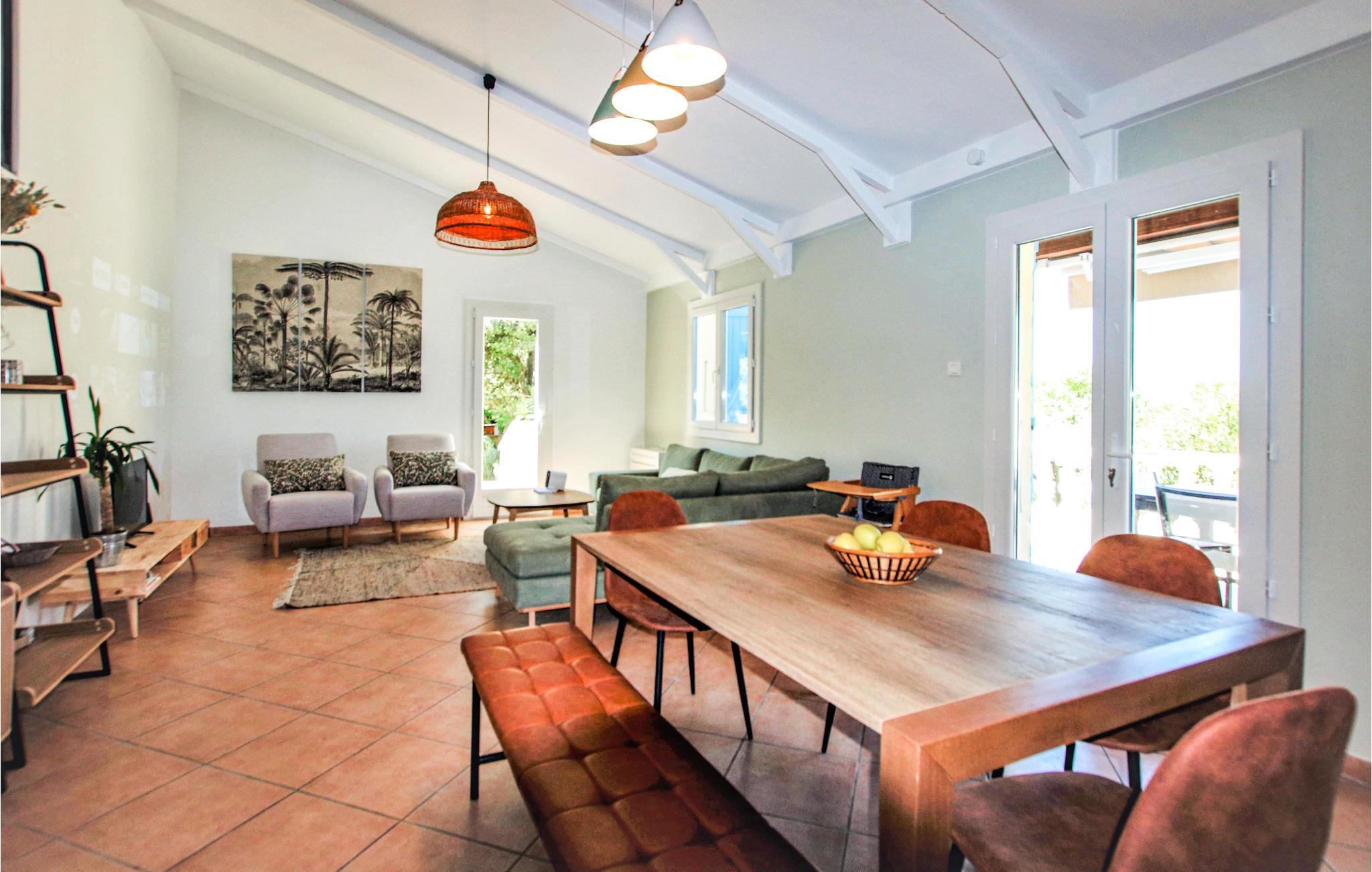 Dieses schöne und rustikal eingerichtete Ferienhaus hat alles, was Sie für einen erfüllten Urlaub in Südfrankreich brauchen. Im großen Wohnzimmmer mit offener Küche können Sie sich schön entspannen und die provenzalische Atmosphäre genießen.