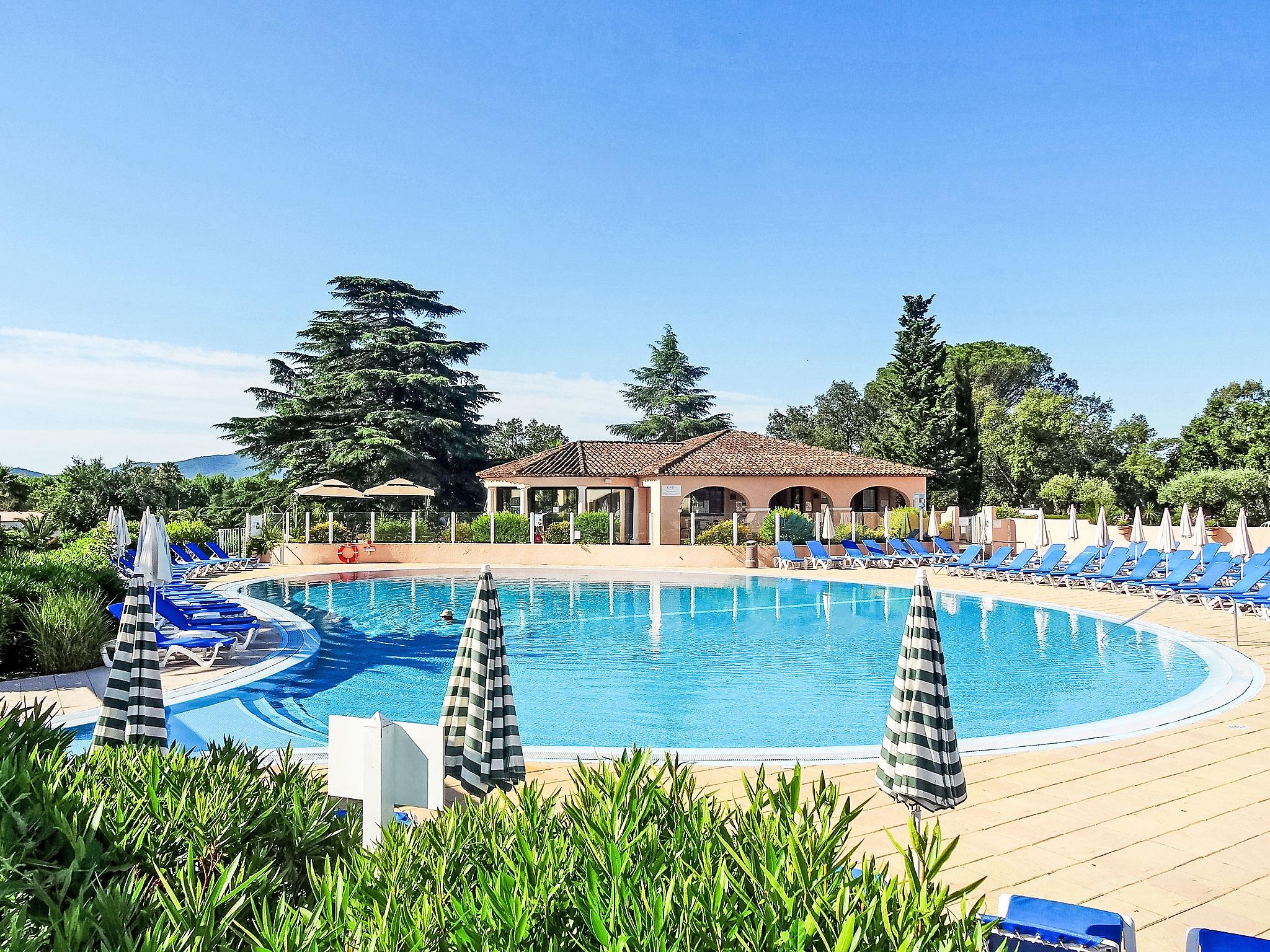 Grimaud: Residence "Les Parcs de Grimaud". 5 km from the centre of Grimaud, in a sunny position, 500 m from the sea, road to cross. For shared use: park 16 ha (fenced), swimming pool (30 x 15 m, depth 70 - 200 cm, seasonal availability: 01.Apr. - 01.Oct.). Children's pool, table tennis, boccia, children's playground. Shop 3 km, grocery 200 m, supermarket 3 km, restaurant 300 m, bakery 800 m, bus stop "Camping de la Plage" 950 m, sandy beach "Les Prairies de la Mer" 500 m. Sports harbour 2.5 km, golf course (18 hole) 3.4 km, sailing school 5 km. Nearby attractions: Port Grimaud 2.5 km, Parc d'attractions Azur Park 3 km, Sainte Maxime 7 km, Saint Tropez 11 km, Cannes 80 km, Nice 110 km. Well-known lakes can easily be reached: Lac de Sainte Croix 92 km. Hiking paths: Massif de l'Esterel 50 km. Please note: car recommended.