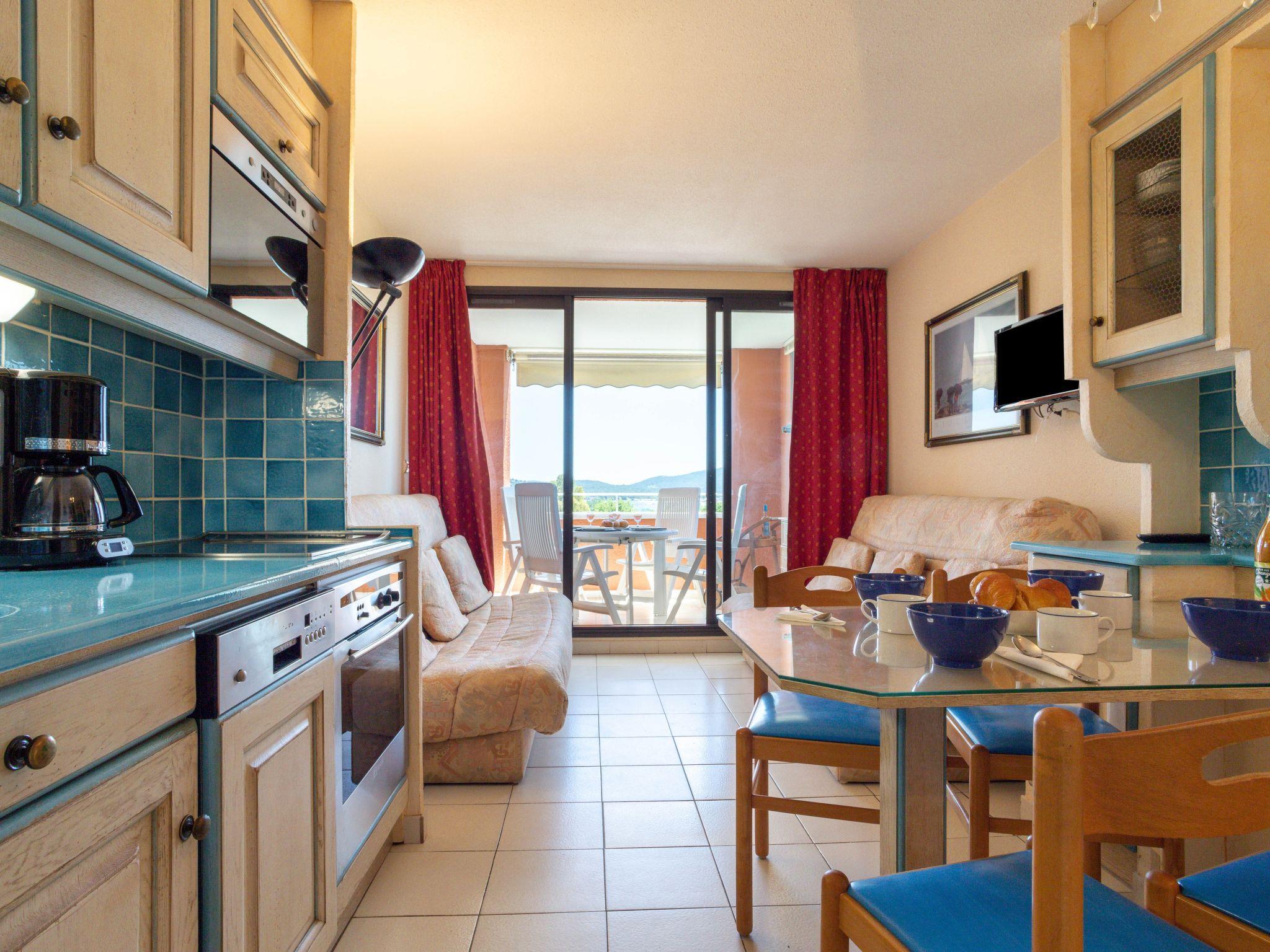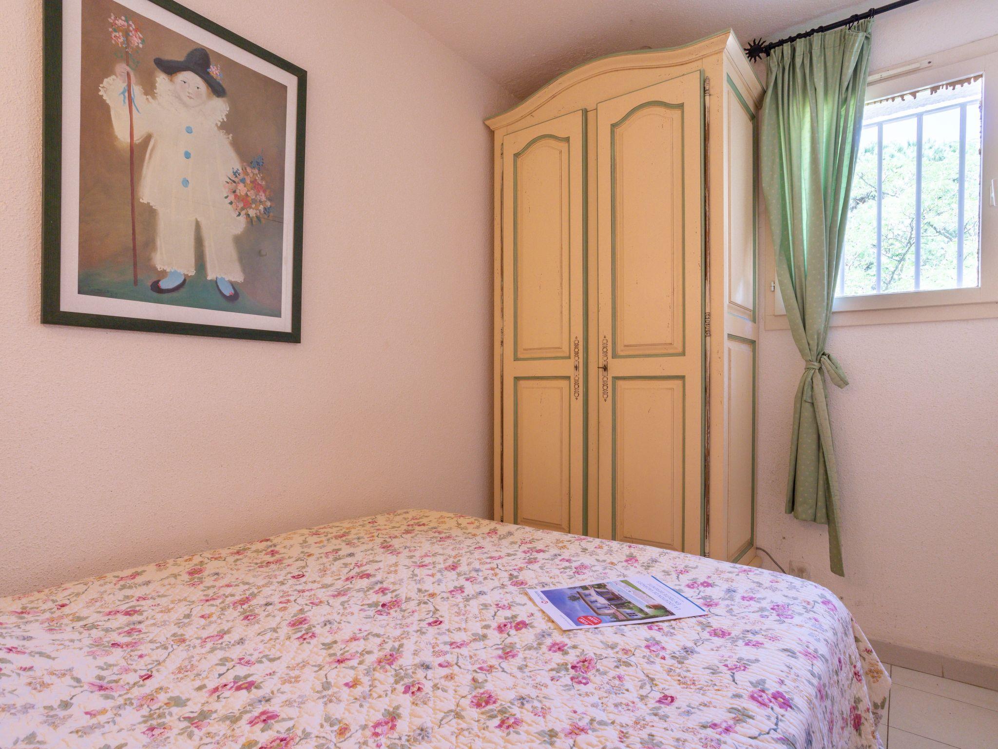 "Les Parcs de Grimaud 7", 2-room apartment 28 m2 on 1st floor. Object suitable for 2 adults + 2 children. Cosy furnishings: living/dining room with 1 double sofabed (140 cm, length 190 cm), TV (flat screen). Exit to the loggia. 1 small room with 1 french bed (140 cm, length 190 cm). Kitchenette (oven, dishwasher, 3 ceramic glass hob hotplates, toaster, kettle, microwave, electric coffee machine). Bath/WC. Electric heating. Terrace 6 m2, roofed, south facing position. Terrace furniture. View of the sea. Facilities: washing machine. Internet (WiFi, extra). Parking. Please note: smoke alarm. Offer by a private individual according to Art. 155, IV of CGI. 83068000799N2
