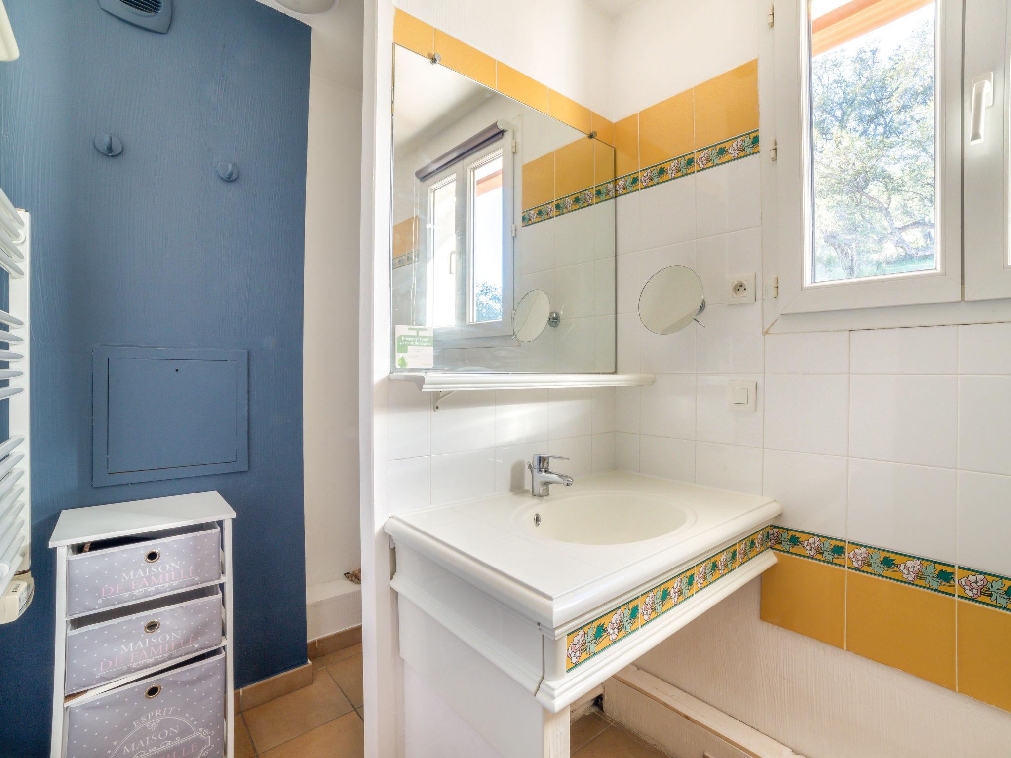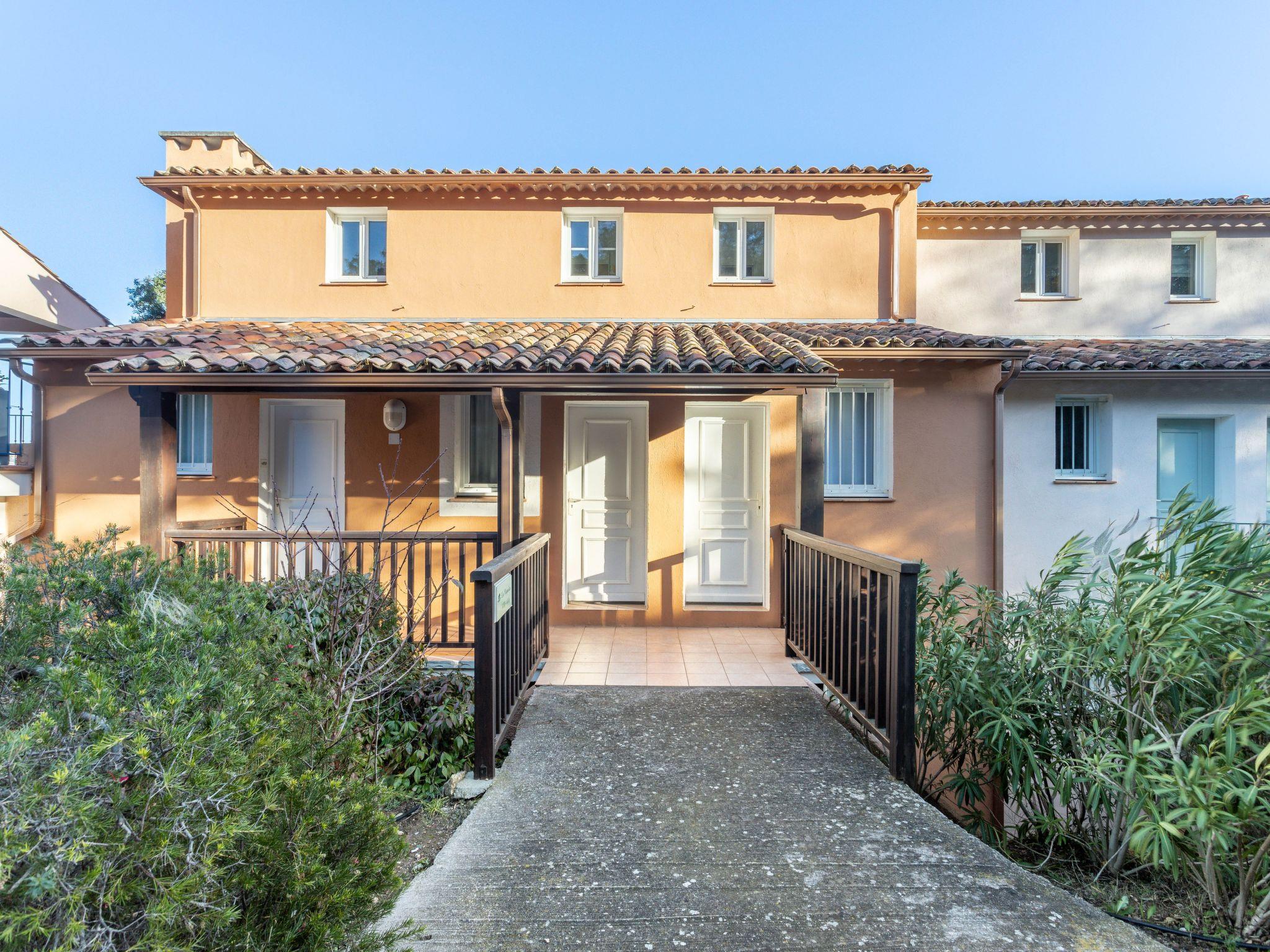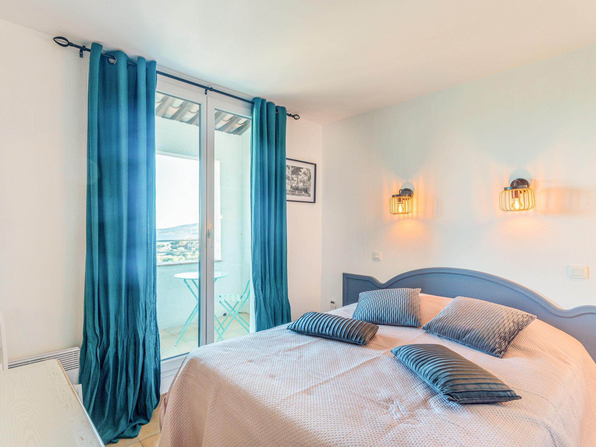 "Les Restanques 8", 3-room apartment 46 m2 on 2 levels. Beautiful furnishings: living/dining room with 1 double sofabed (140 cm, length 190 cm), TV (flat screen). Exit to the balcony. 1 small room with 1 double bed (140 cm, length 190 cm). Kitchenette (dishwasher, 4 ceramic glass hob hotplates, toaster, kettle, microwave, electric coffee machine). Shower/WC. Upper floor: 1 room with 1 french bed (140 cm, length 190 cm). Exit to the balcony. Shower/WC. Electric heating, air-conditioning. Balcony 7 m2, balcony 5 m2. Balcony furniture. Beautiful view of the sea and the countryside. Facilities: washing machine, iron. Internet (WiFi, extra). Parking (roofed). Please note: maximum 1 pet/ dog allowed. Smoke alarm. Offer by a commercial proprietor according to Art. 155, IV, CGI 83068001333S3