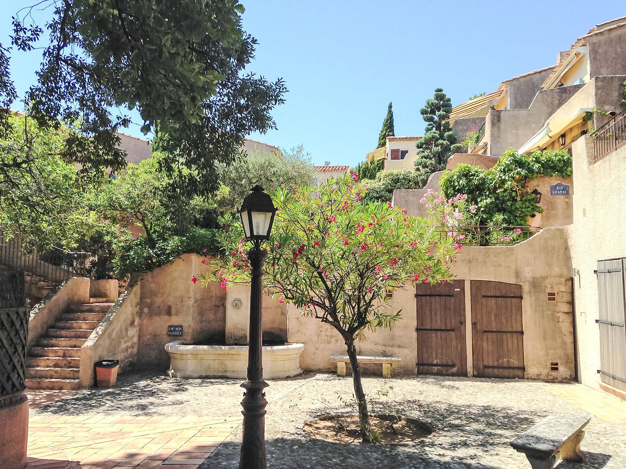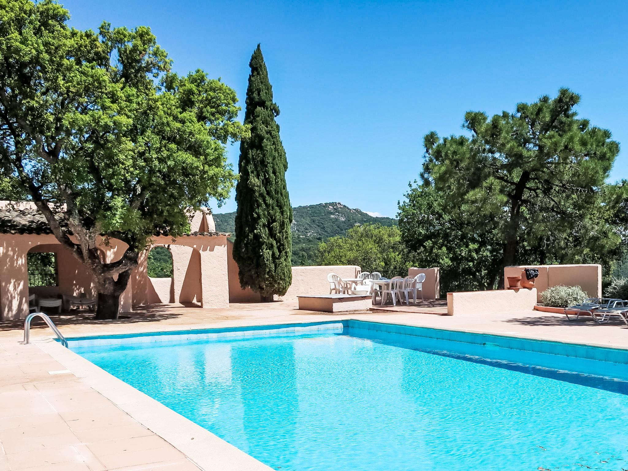 Beautiful residence "Village de Silhouette", surrounded by trees. Outside the resort, 5 km from the centre of Grimaud, in a quiet position on top of a hill, 6 km from the sea. For shared use: swimming pool fenced (17 x 8 m, depth 120 - 250 cm, seasonal availability: 15.May. - 30.Sep.). Parking at 40 m. Shop 5 km, grocery 5 km, supermarket 6 km, restaurant 5 km, bus stop "Port Grimaud" 4.6 km, sandy beach "Port Grimaud" 6 km. Golf course (18 hole) 8 km, sailing school 8 km. Nearby attractions: Port Grimaud 6 km, Sainte Maxime 12 km, Saint-Tropez 13 km, Plages de Pampelonne 20 km, Nice 110 km, Monaco 130 km. Well-known lakes can easily be reached: Lac de Sainte Croix 95 km. Hiking paths: Massif de l'Esterel 50 km. Please note: car recommended. The keys‘ handover takes place by the agency -------- in Gassin, 7 km. Additional accommodations can be booked. All houses/apartments are individually designed/furnished. Neighbourhood highly sensitive to noise. Quietness and good behaviour expected.