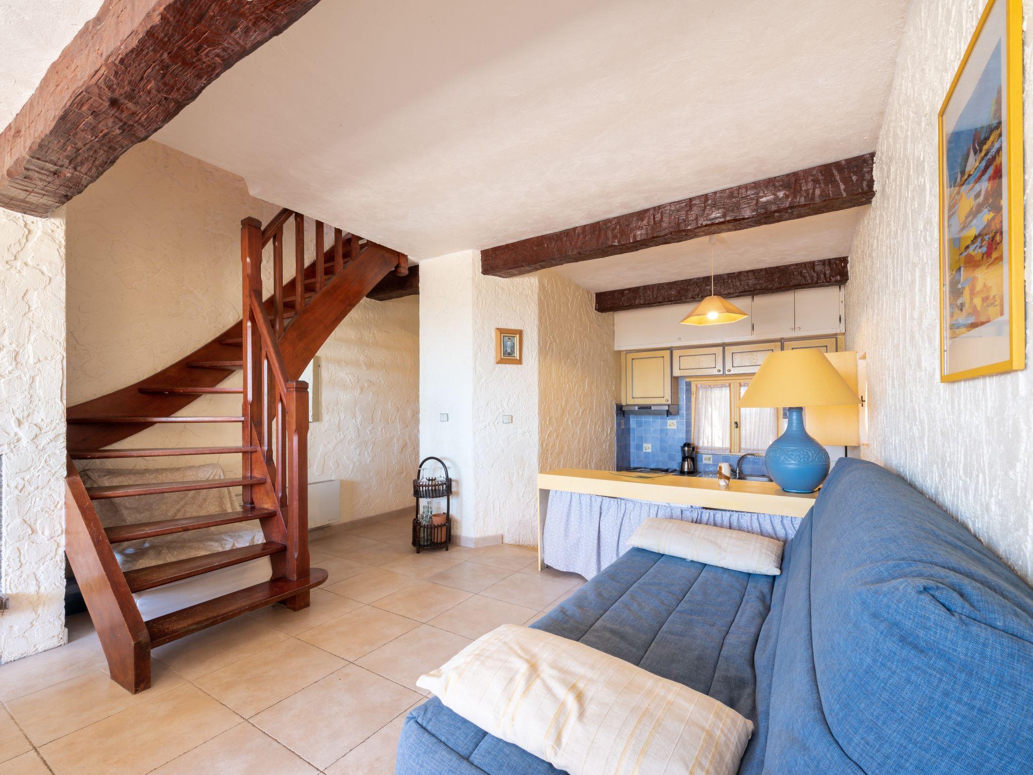 "Village de Silhouette 5", 2-room apartment 57 m2 on 2 levels. Beautiful furnishings: living/dining room with 1 double sofabed (140 cm, length 190 cm), TV (flat screen). Exit to the terrace. Open kitchen (oven, dishwasher, 4 ceramic glass hob hotplates, toaster, kettle, microwave, freezer, electric coffee machine). Bath/WC. Electric heating. Upper floor: 1 room with 1 french bed (140 cm, length 190 cm), bath/WC and air conditioning. Exit to the balcony. Terrace 13 m2. Terrace furniture. Beautiful view of the sea. Facilities: washing machine. Internet (WiFi, extra). Parking. Please note: smoke alarm. 83068000424U9