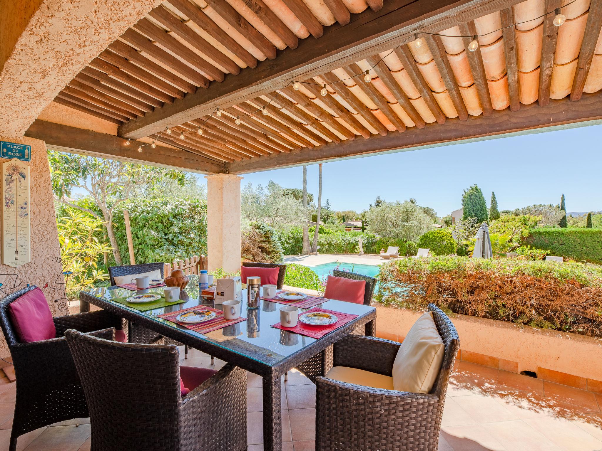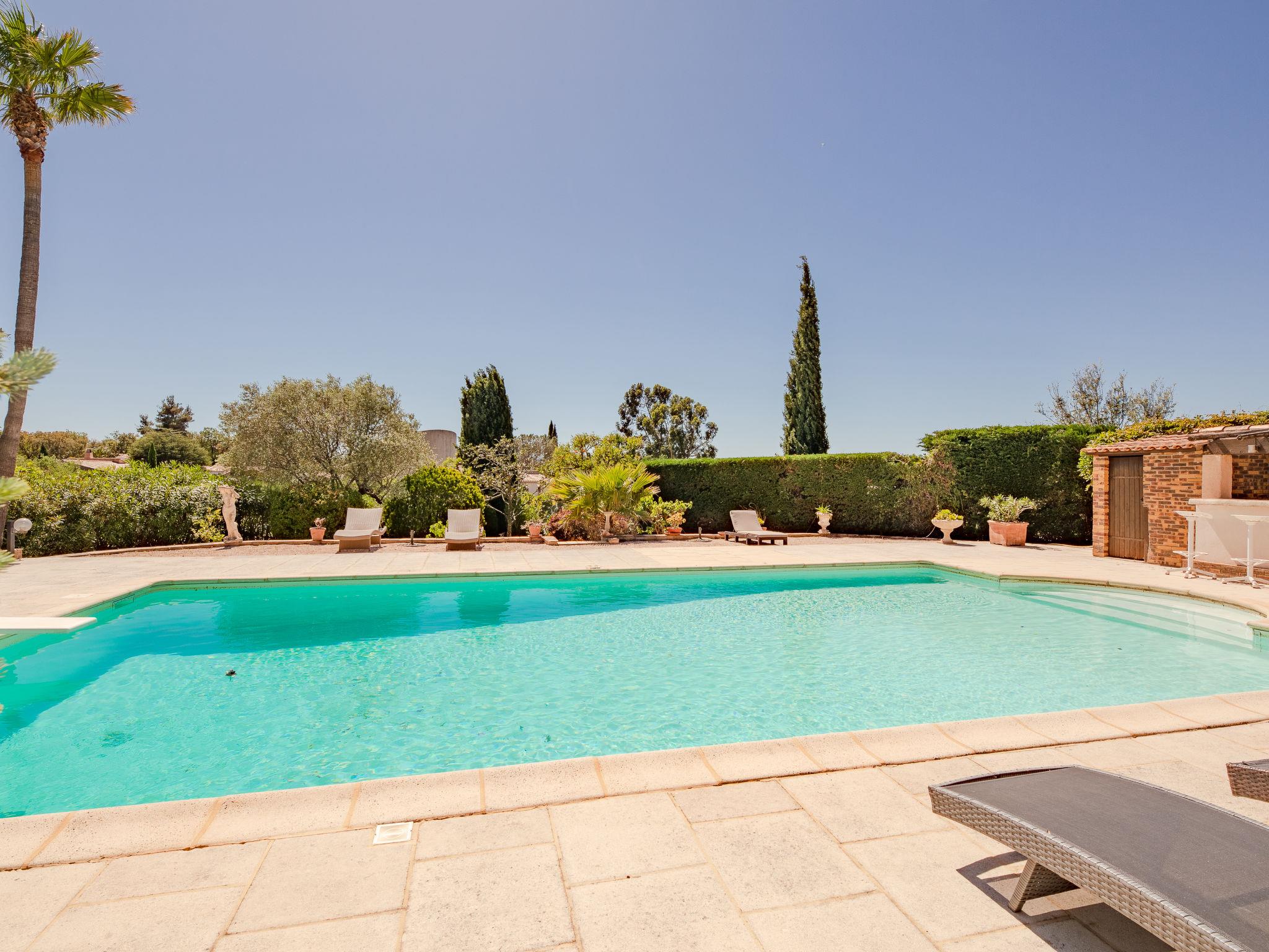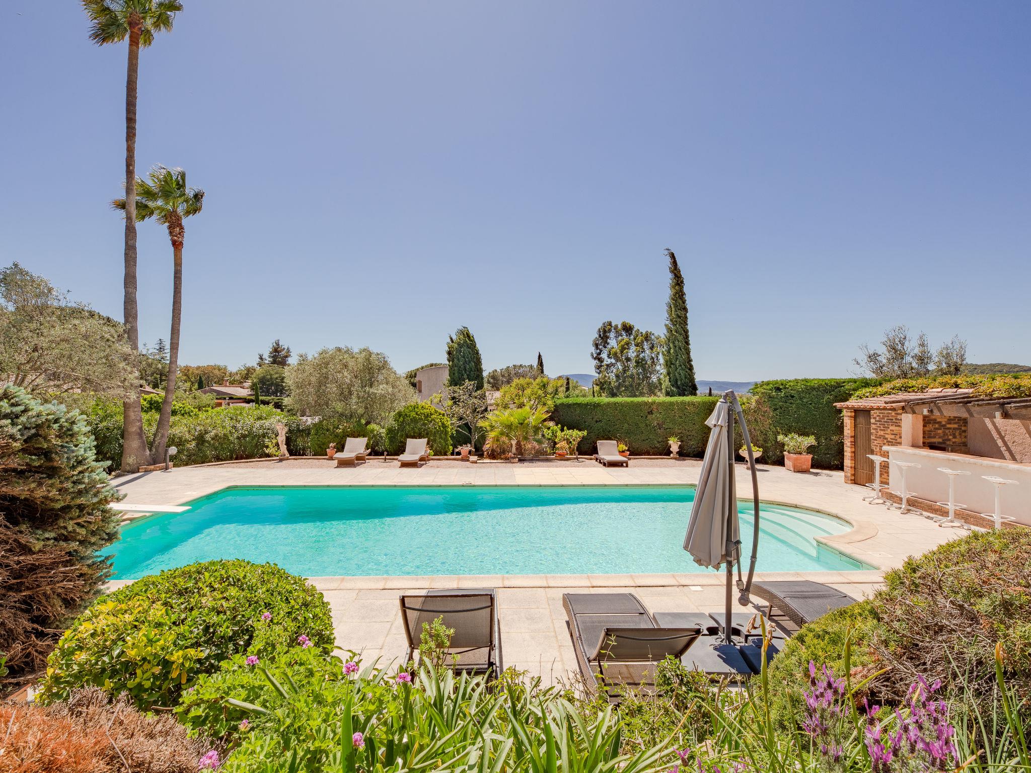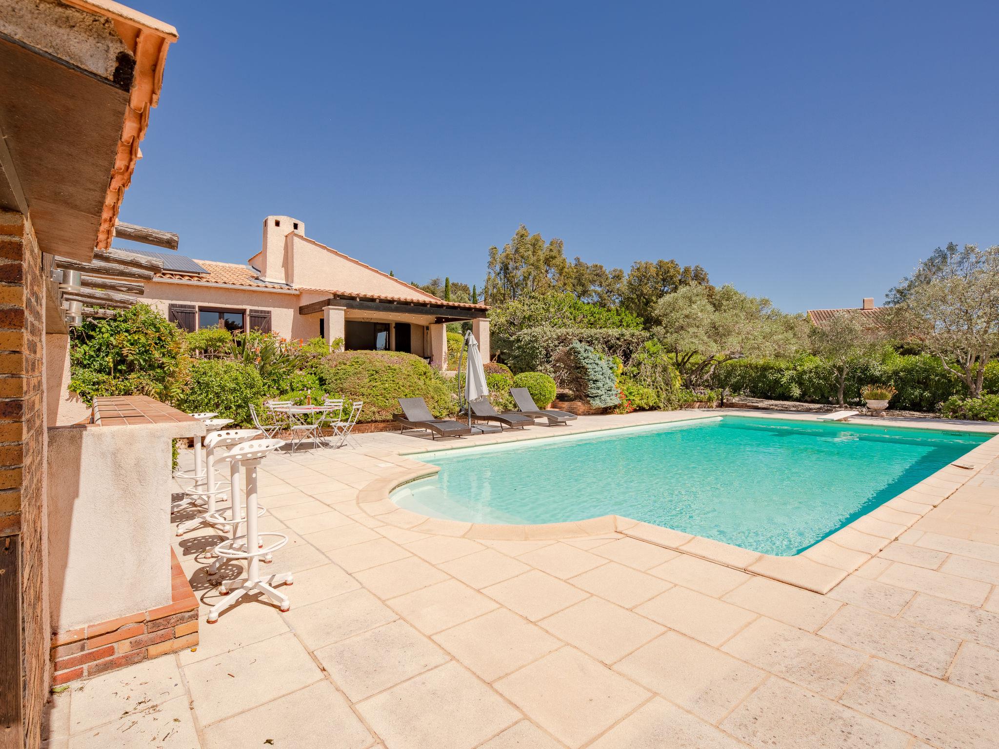 Beautiful single-family house "Le Mas d'Olive". 7.5 km from the centre of Grimaud, 11 km from the centre of Saint Tropez, 9 km from the centre of Sainte Maxime, in the residential district, 2.5 km from the sea, in the countryside. Private: beautiful terraced garden, 1'800 m2 (fenced) with wildlife garden and trees, swimming pool fenced (12 x 6 m, depth 100 - 220 cm, seasonal availability: 01.Jan. - 31.Dec.) with alarm system. Outdoor shower, pool house, terrace, parking (for 3 cars) on the premises. Shop 1.5 km, bus stop 2.7 km, sandy beach 2.5 km.