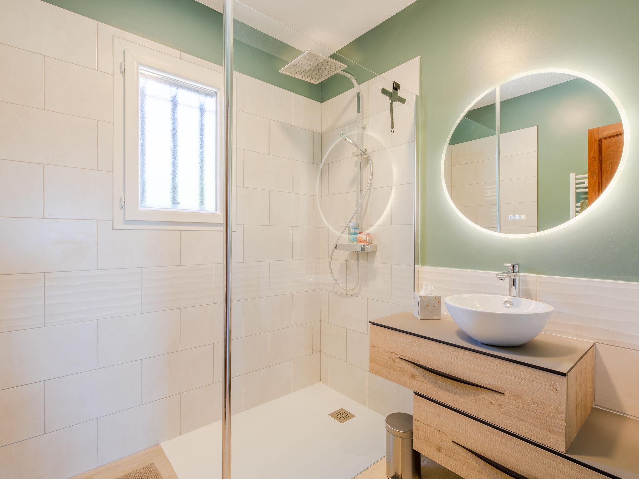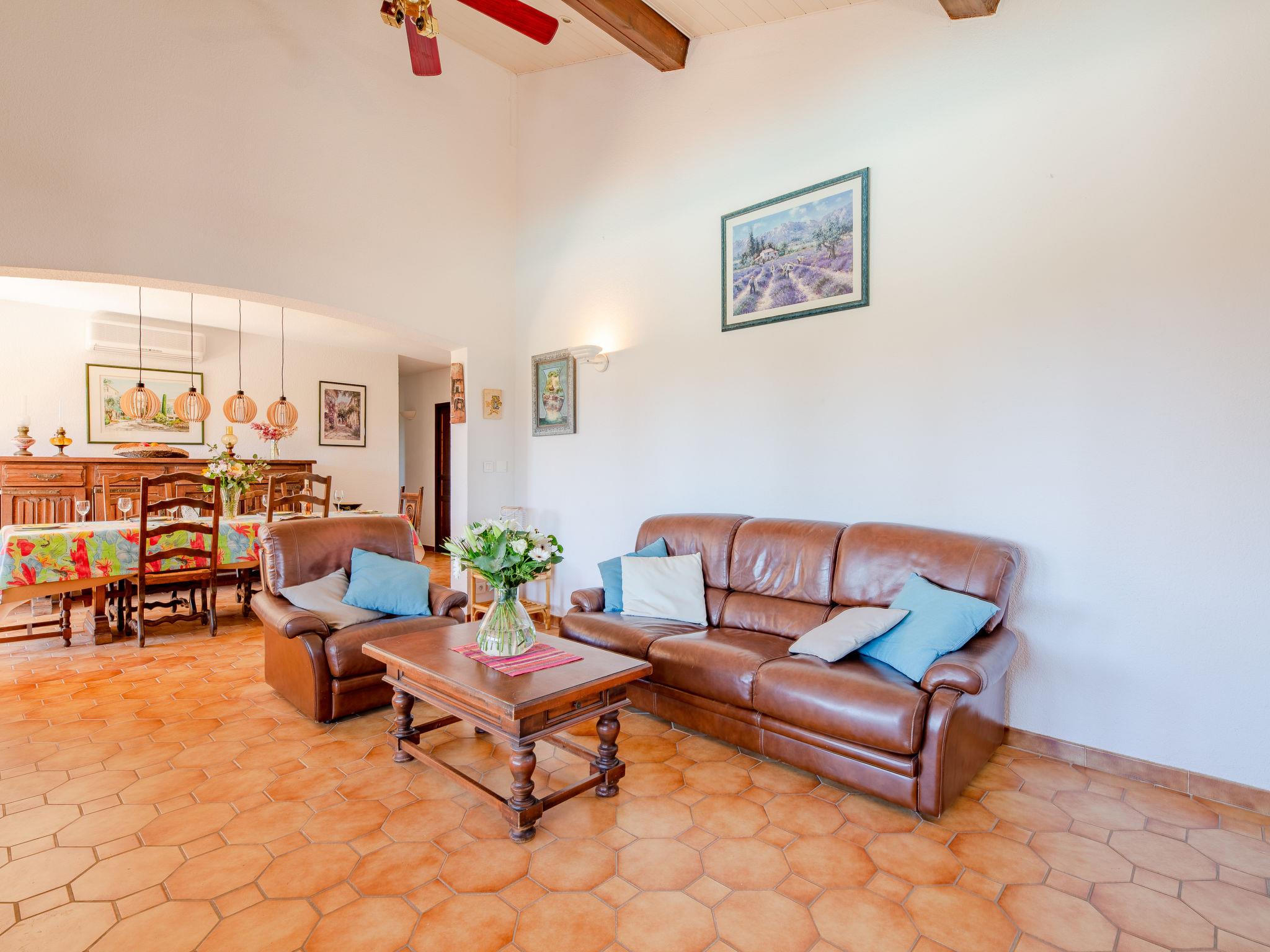 "Le Mas d'Olive", 4-room house 130 m2. Comfortable and rustic furnishings: living/dining room with open-hearth fireplace (only for decoration), dining table, satellite TV, hi-fi system, DVD and air conditioning. Exit to the terrace. 1 room with 1 french bed, separate WC and air conditioning. Exit to the garden. 1 room with 1 french bed and air conditioning. Exit to the terrace. 1 room with 2 beds (80 cm), bath/WC, double hand-basin and air conditioning. Exit to the terrace. Kitchen (oven, dishwasher, 4 induction hot plates, toaster, kettle, microwave, freezer, electric coffee machine). Bathroom, shower, sep. WC. Electric heating. Terrace 20 m2, roofed, terrace 20 m2. Terrace furniture, barbecue, deck chairs (6), box-room. Facilities: washing machine, mosquito net. Internet (WiFi, free). Please note: non-smoking house. 83068000726VO
