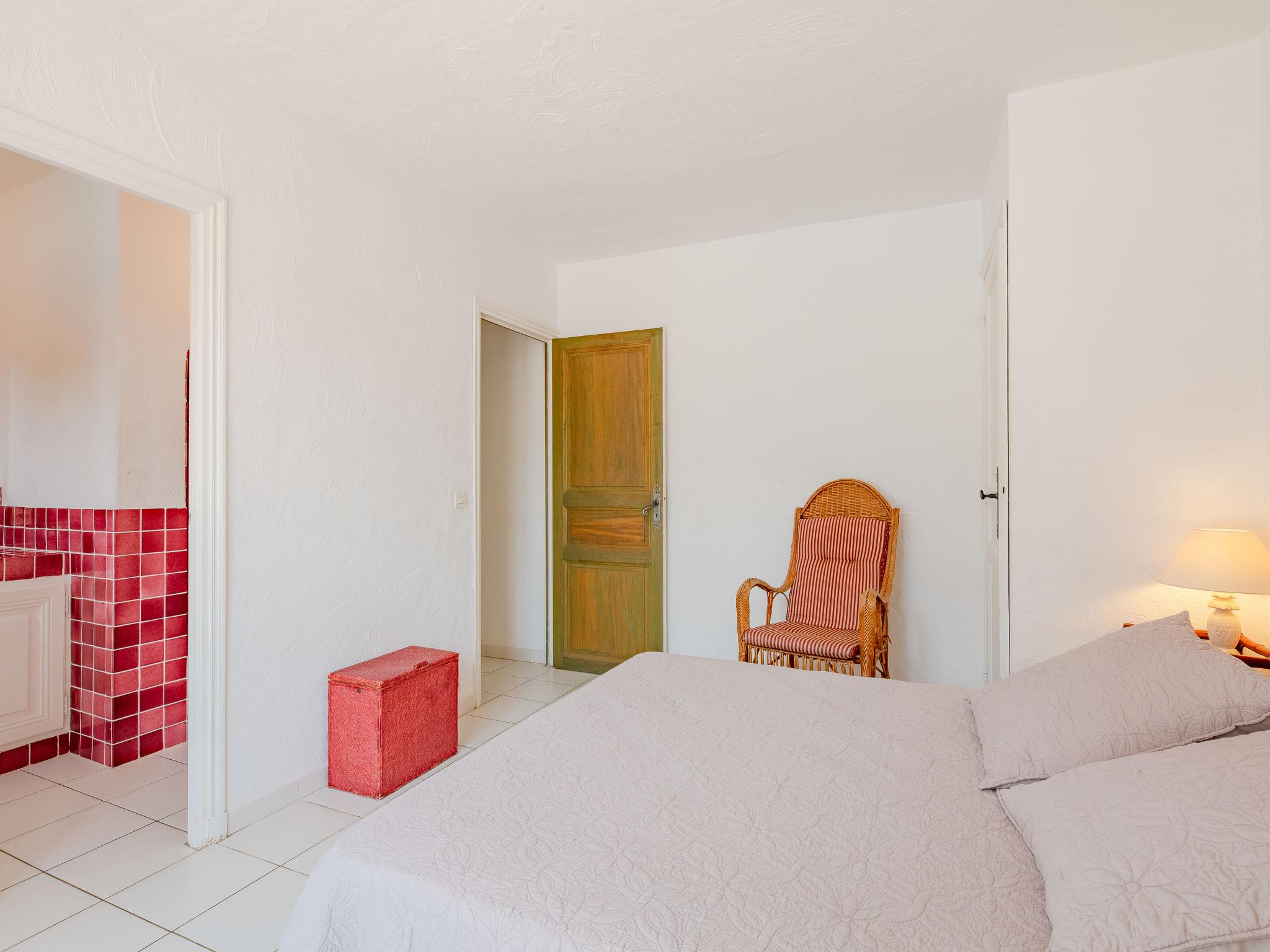 Beautiful house "Mas des Chênes", surrounded by vineyards. 5 km from the centre of Grimaud, 15 km from the centre of Saint Tropez, 7 km from the centre of Cogolin, in a secluded position on a slope, 10 km from the sea. Private: property 3'000 m2 with trees, swimming pool fenced (11 x 5 m, seasonal availability: 01.Jan. - 31.Dec.). Table tennis, boules, pool maintenance by the owner/gardener. Parking on the premises. Shop 5 km, bus stop 4 km, sandy beach 10 km.