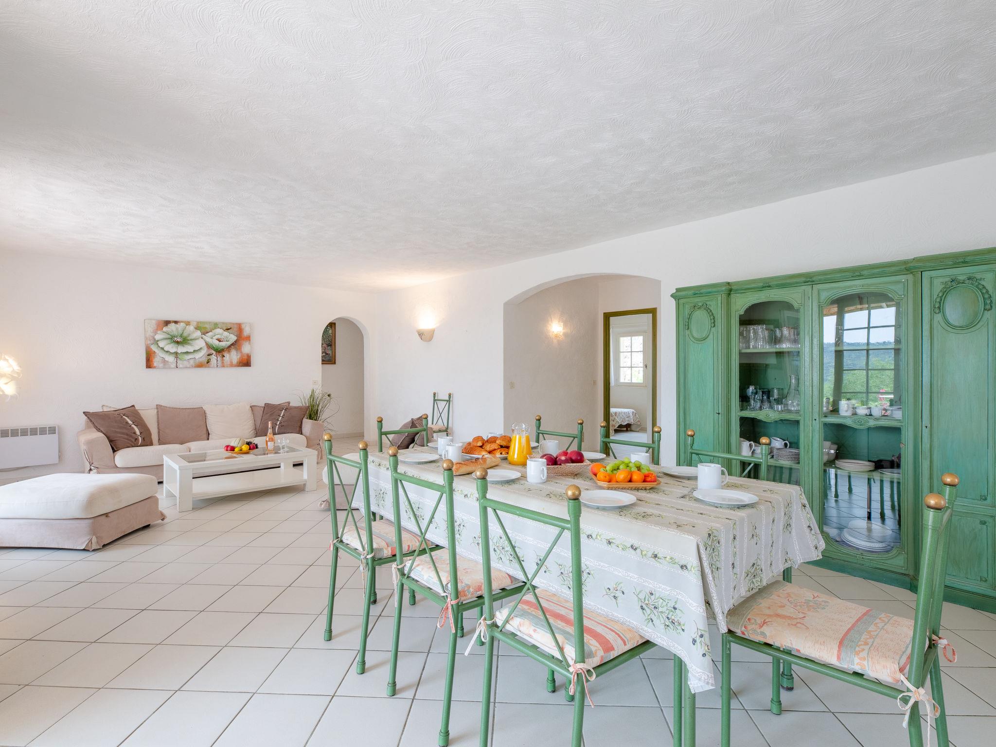 "Mas des Chênes", 6-room house 170 m2. Bright, beautiful furnishings: living/dining room with dining table and satellite TV. Exit to the terrace. 1 room with 2 beds and shower/WC. 2 rooms, each room with 1 french bed and shower/WC. Exit to the terrace. 1 room with 1 french bed and shower/WC. 1 room with 2 beds. Exit to the terrace. Open kitchen (1 hot plate, oven, dishwasher, 3 gas rings, toaster, microwave, freezer, electric coffee machine). Shower/WC. Electric heating. Terrace, patio. Terrace furniture, barbecue (portable), deck chairs. Panoramic view. Facilities: washing machine, children's high chair, baby cot. Internet (WiFi, free). Maximum 2 pets/ dogs allowed. When there are less than the maximum number of guests staying at the property, not all of the bedrooms will be available for use. 83068000486CN
