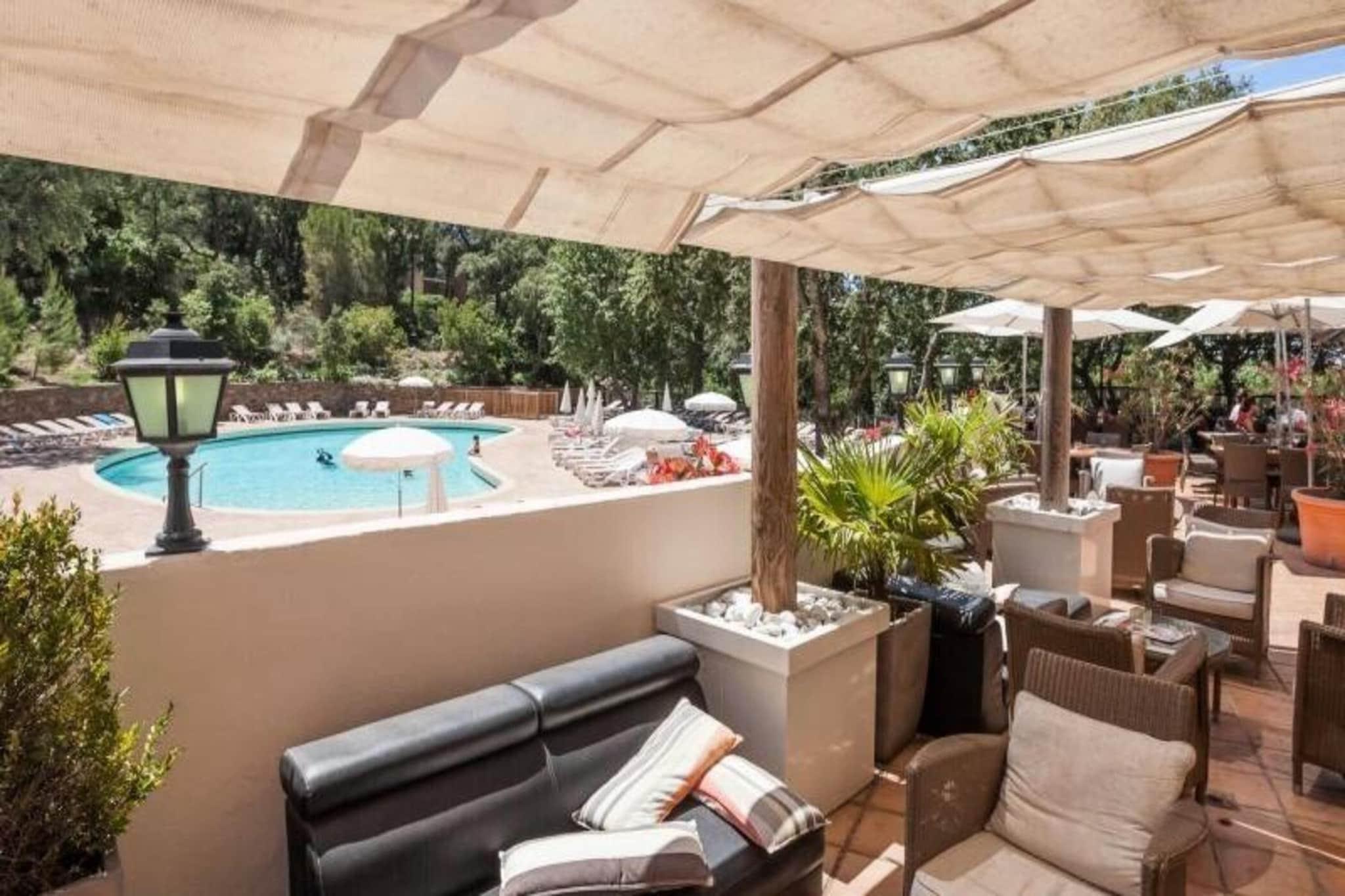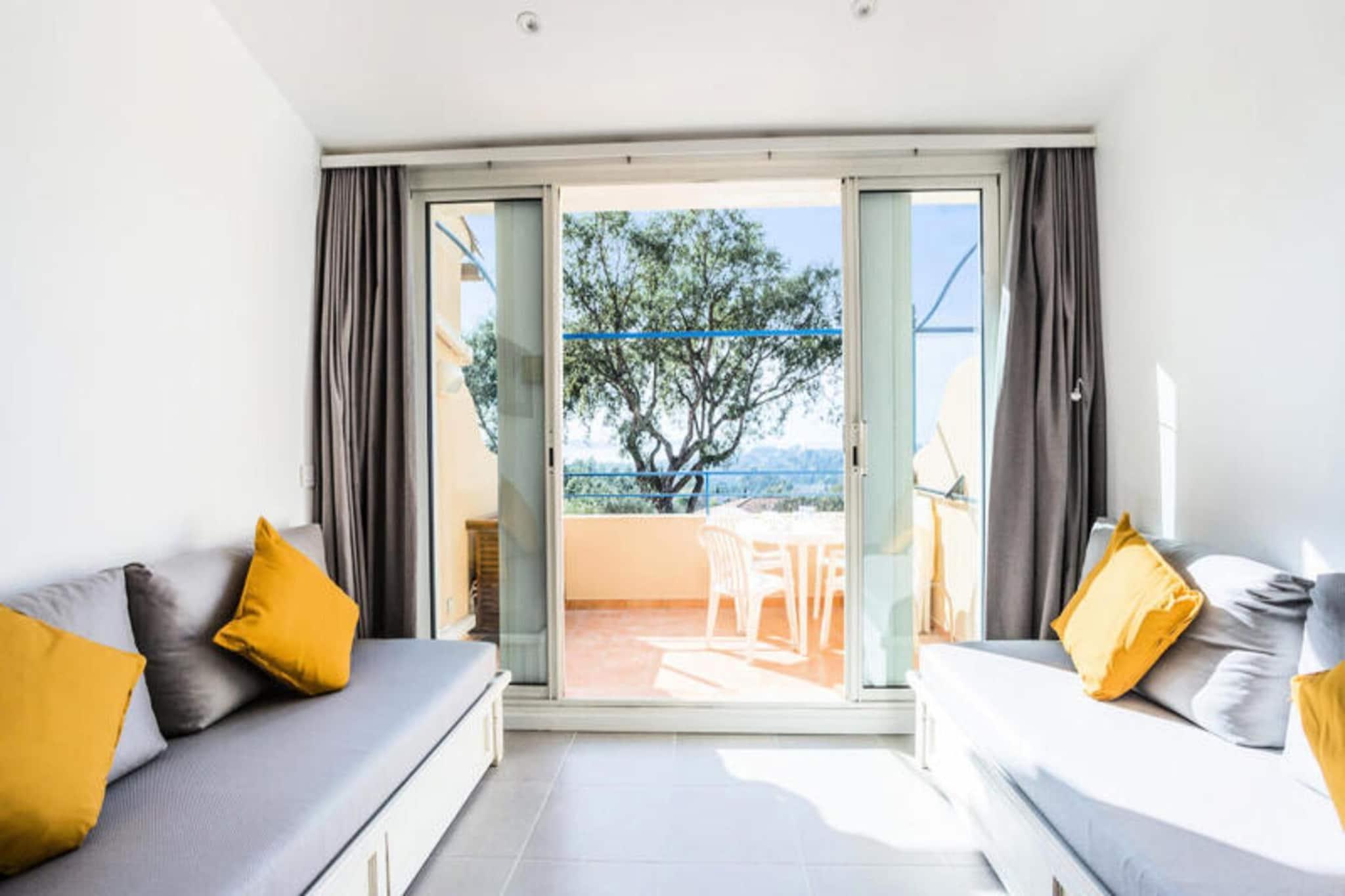 Nestled in a 25-hectare landscaped park overlooking the Mediterranean, this modern apartment offers an exceptional escape with panoramic views of the Gulf of Saint-Tropez. Accommodating up to five guests, it features a cozy bedroom, a living area, and a fully equipped kitchen. Guests can enjoy the 1,600 m² aquatic area with a wave pool and slides, open during the warmer months. Pets are welcome for an additional fee, and free parking is available on a first-come, first-served basis, ensuring a comfortable and convenient stay. Located in a vibrant area, the property is surrounded by local attractions, charming cafes, and bustling markets. Explore the Gulf of Saint-Tropez’s pristine beaches or take part in nearby activities like hiking and water sports. Children and teenagers will love the entertainment and clubs, while adults can relax by the pools or enjoy the park’s serene surroundings. This well-maintained apartment includes a bathroom with modern amenities, a separate toilet, and a private balcony for unwinding with scenic views. Additional services like Wi-Fi, baby kits, bed linens, towels, and end-of-stay cleaning are available for a fee. Perfectly designed for family getaways or a tranquil retreat, this property ensures a memorable stay by the Mediterranean coast.