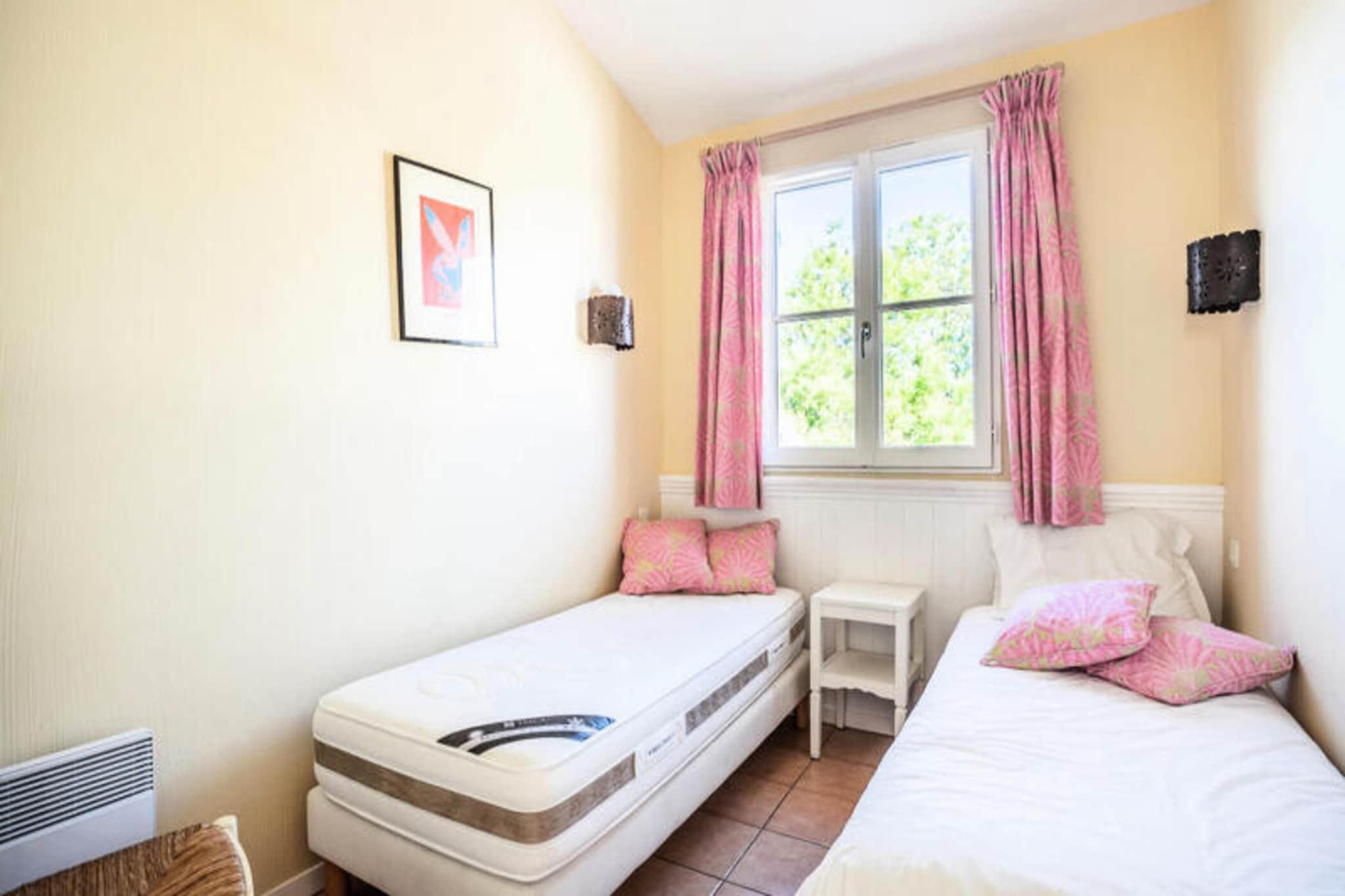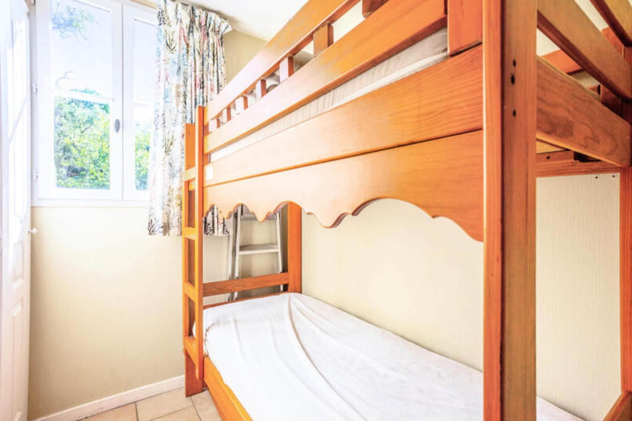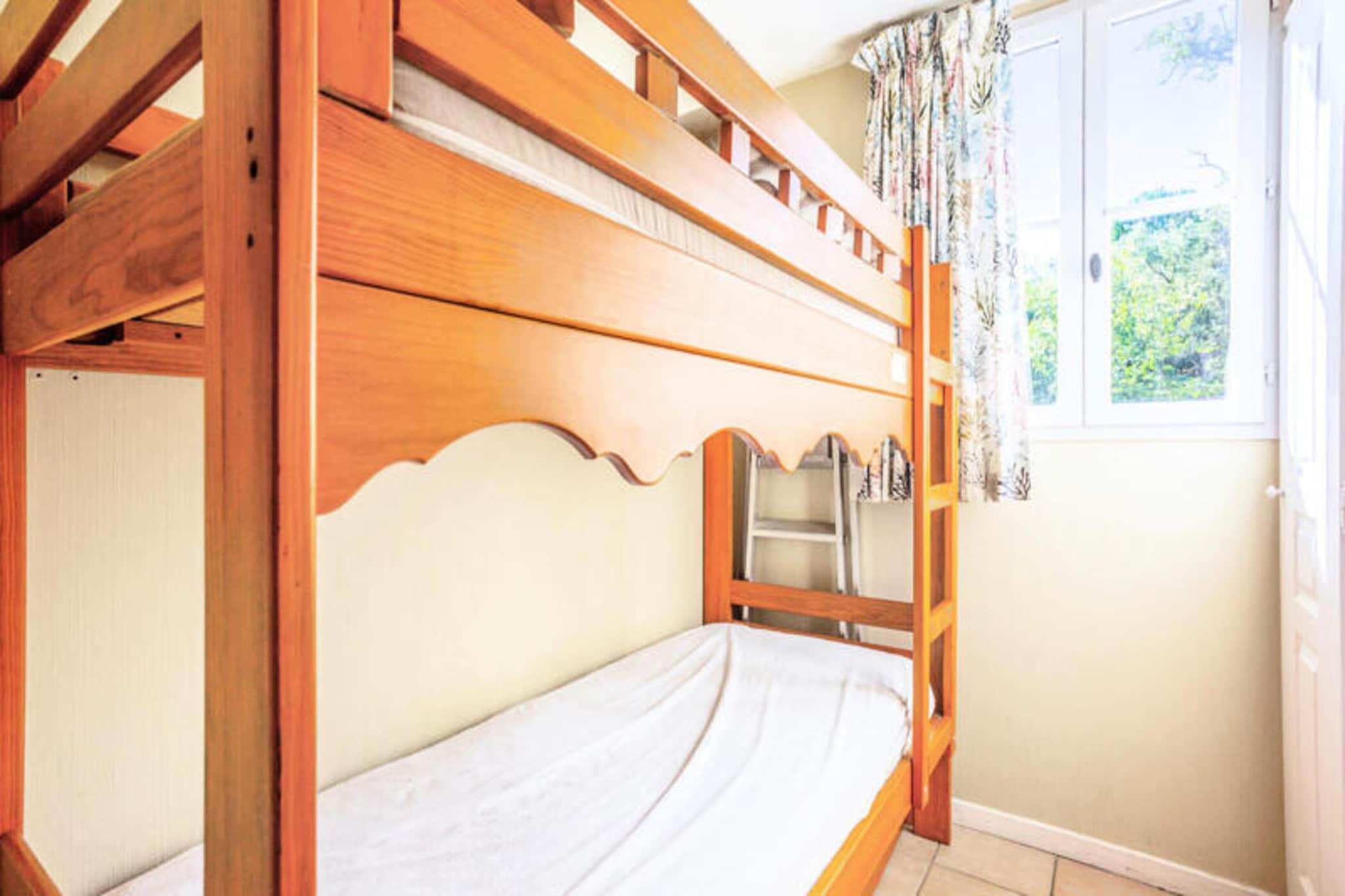 This charming 4-room holiday home offers a comfortable stay for up to 8 people, with 3 bedrooms, 2 bathrooms, and a spacious living room. The property features a private terrace and a tree-lined garden, perfect for relaxing outdoors. Pets are allowed with an additional fee, and parking is available subject to availability. Bed linen, towels, and end-of-stay cleaning are available for an additional charge. The residence is located in a vibrant area with easy access to local shops, charming villages, and hiking trails, making it ideal for outdoor enthusiasts. Guests can enjoy the Mediterranean bay and explore its natural beauty. The property also offers various recreational facilities, including a football field, basketball, tennis, and ping pong. The wave pool (open from May to September) and heated swimming pool (open from April to September) provide hours of entertainment for all ages. The house is equipped with a fully functional kitchen and 2 bathrooms for convenience. Guests can enjoy the comforts of a well-maintained, modern space with a Maeva Home Selection label. Additional services like Wi-Fi and baby kit rental are available at extra cost, ensuring a relaxing and enjoyable stay for families and friends alike.