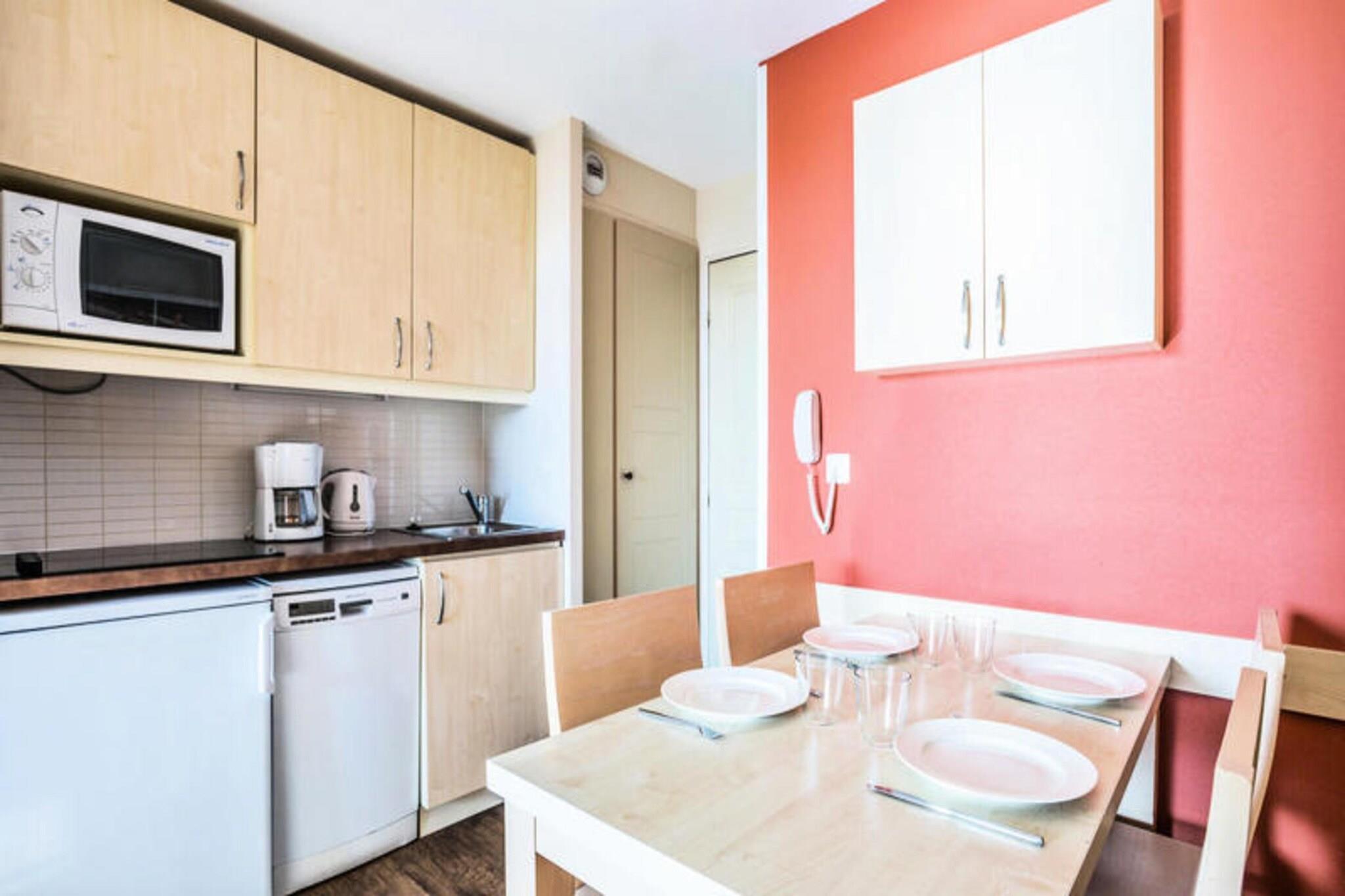 This charming studio apartment is ideal for a relaxing stay in the heart of Provence. Nestled in a beautiful 16-hectare estate, the apartment boasts access to an outdoor swimming pool (open April-October), volleyball courts, playgrounds, and more. The studio itself features one main living area with a sleeping cabin, a kitchenette, a bathroom, a toilet, and free outdoor parking (subject to availability). The apartment is conveniently located less than 500 meters from the beach, allowing you to easily enjoy the sunshine and the Mediterranean Sea. While specifics about nearby attractions, cafes, and markets are not available, the location in Provence itself guarantees a charming atmosphere with plenty to explore. For your convenience, the studio comes equipped with a kitchen area, perfect for preparing meals during your stay. Bed linens are included, while towels and daily linen changes are available for an additional charge. There's also a mandatory cleaning service to be paid upon check-in. Please note that Wi-Fi access and allowing pets are both subject to additional charges and must be confirmed directly with the residence.