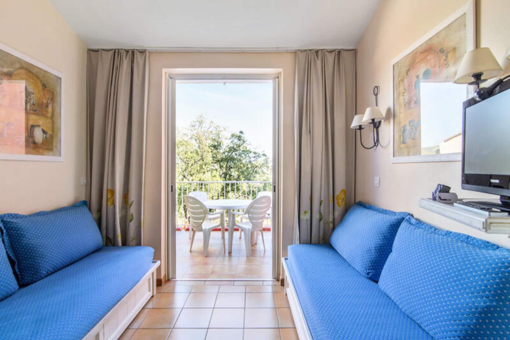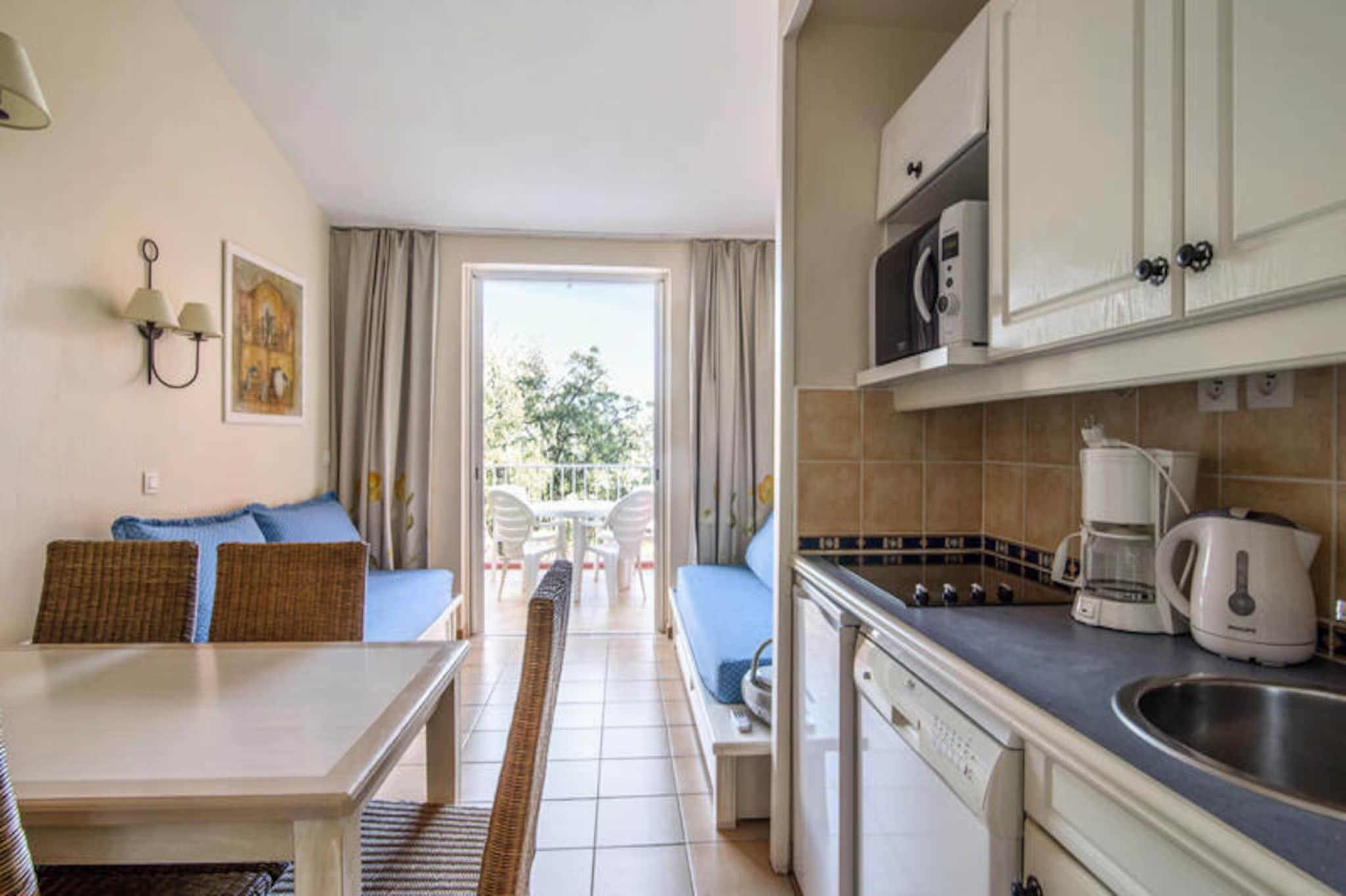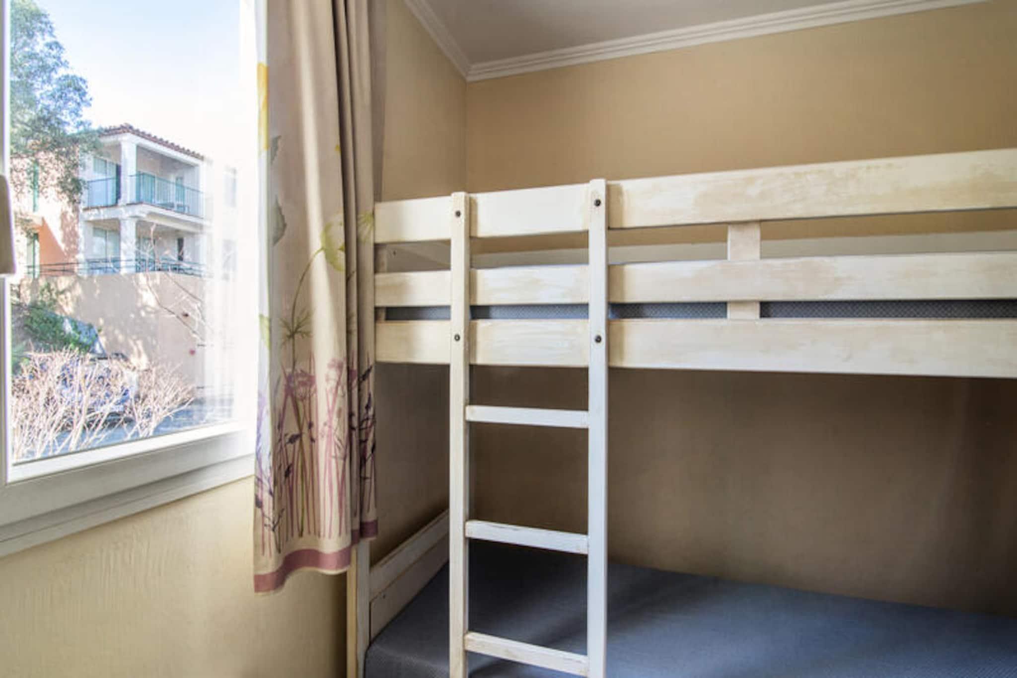 Perched within a serene 25-hectare landscaped park overlooking the Mediterranean, this charming holiday rental offers an inviting escape for families or groups. Accommodating up to five guests, it features a cozy living area with two sofa beds and a trundle bed, along with a cabin area with bunk beds, ideal for children. A terrace provides the perfect spot to relax, and free parking is available, subject to availability. Pets are welcome for an additional fee, ensuring that your furry companions can join your getaway. The property is ideally situated to explore the nearby attractions, including the charming village of Grimaud and the iconic streets of Saint-Tropez. A sandy beach is just 3 km away, while scenic walks, dining experiences, and cultural events await in nearby Croix Valmer, Ramatuelle, and Lavandou. For entertainment, guests can visit Luna Park or explore Grimaud Port. Local restaurants and a supermarket are conveniently located within the residence, open seasonally for your needs. This well-equipped rental includes an open kitchen with all essentials, a bathroom with a combined bath and shower, and convenient access to the residence’s 1,600 m² aquatic area, featuring heated pools and water slides. Additional amenities like a baby kit, Wi-Fi, bed linens, and towels are available for a fee, ensuring a comfortable and enjoyable stay.