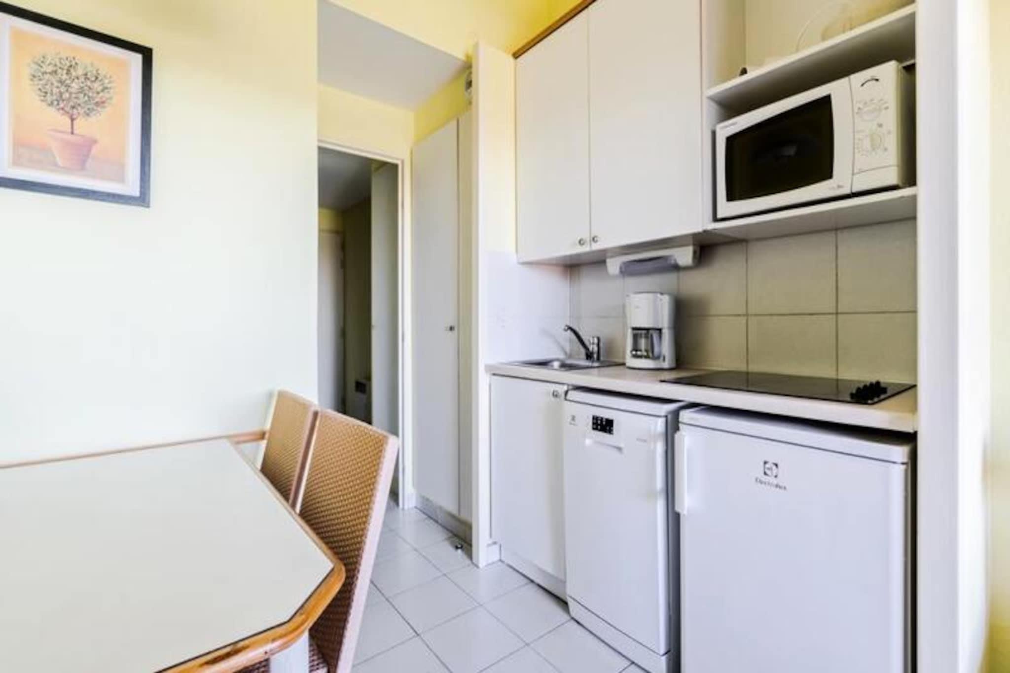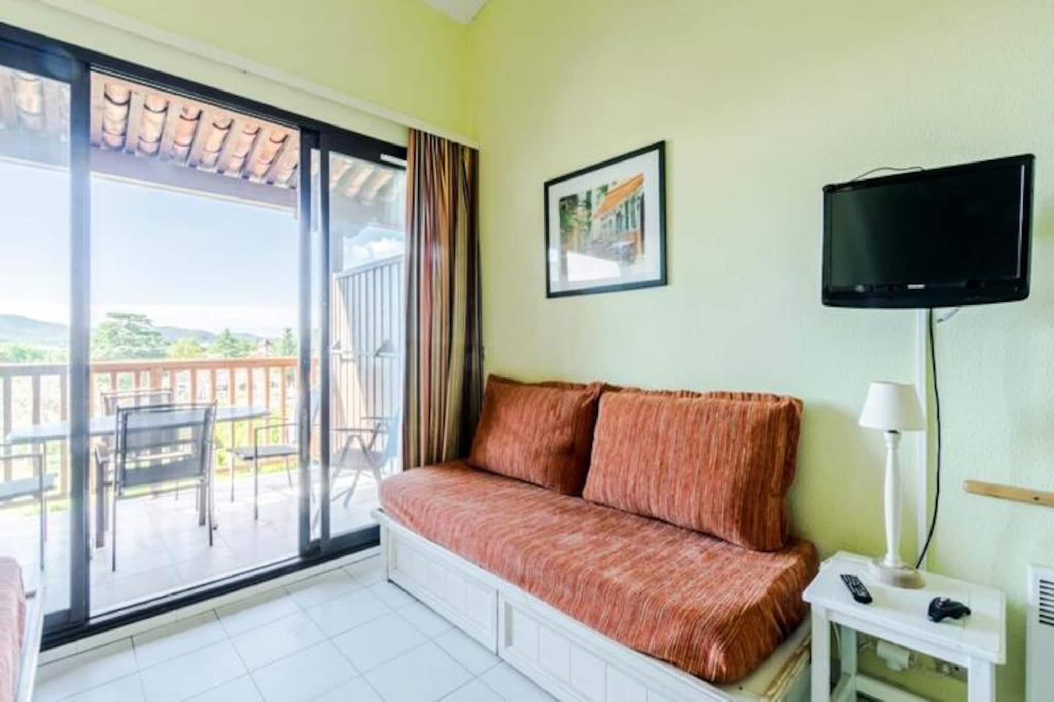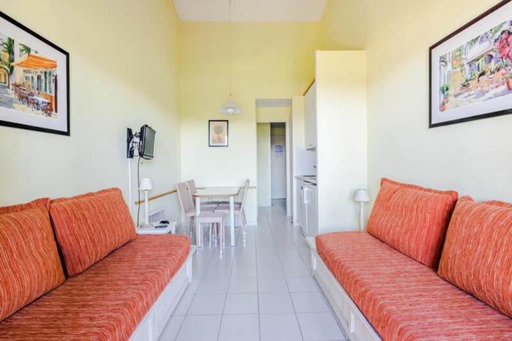 Nestled near the stunning Massif des Maures, this charming apartment is located within a lush 16-hectare estate, offering a tranquil retreat just 300 meters from the beach. Perfect for families or small groups, it accommodates up to five guests with two sofa beds in the living room and a cozy cabin area featuring bunk beds. Guests will enjoy a furnished terrace with serene forest views, as well as free access to an outdoor swimming pool, open seasonally. Pets are welcome for an additional fee, making it a pet-friendly option for your getaway. The property is ideally situated less than 10 kilometers from the vibrant town of Saint-Tropez, known for its glamorous nightlife, boutique shopping, and scenic harbor. Guests can explore local attractions such as Provençal markets, charming cafes, and the nearby beach, perfect for soaking up the Mediterranean sun. Whether you’re looking to relax or indulge in outdoor activities, the location offers something for everyone. Inside, the apartment features a semi-open kitchen fully equipped with essential appliances, including a refrigerator and microwave, allowing for convenient meal preparation. The bathroom offers a combined bath and shower, and linens are provided with optional towel service available. With complimentary parking, WiFi access for a small charge, and a safe for valuables, this residence ensures a comfortable and hassle-free holiday experience.